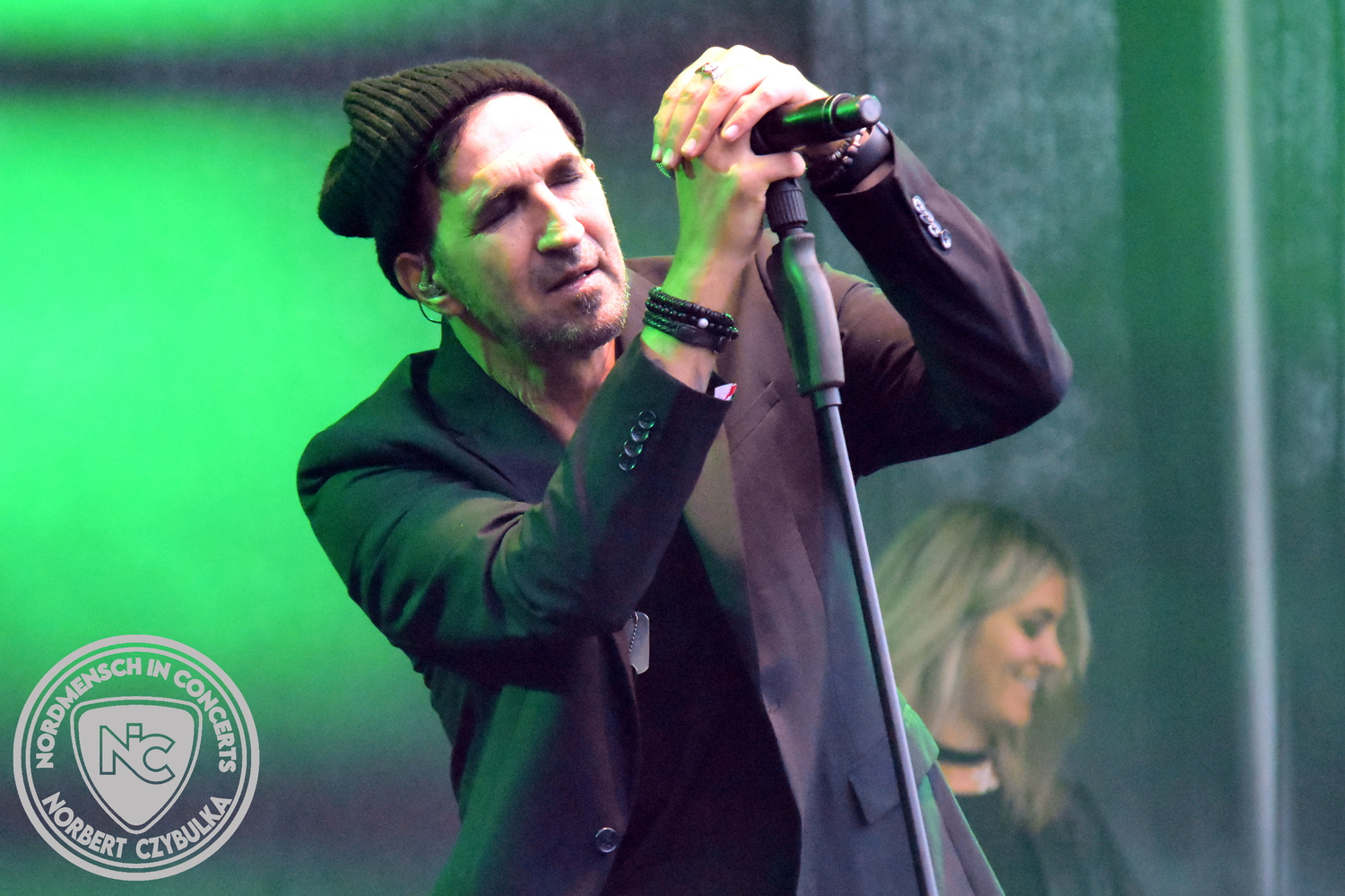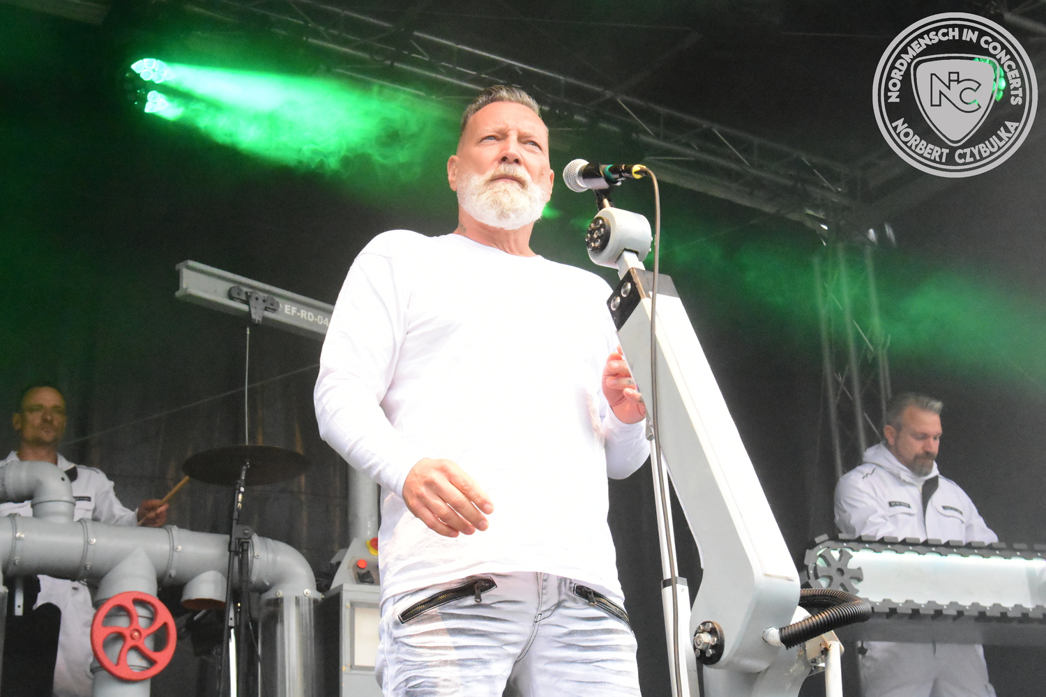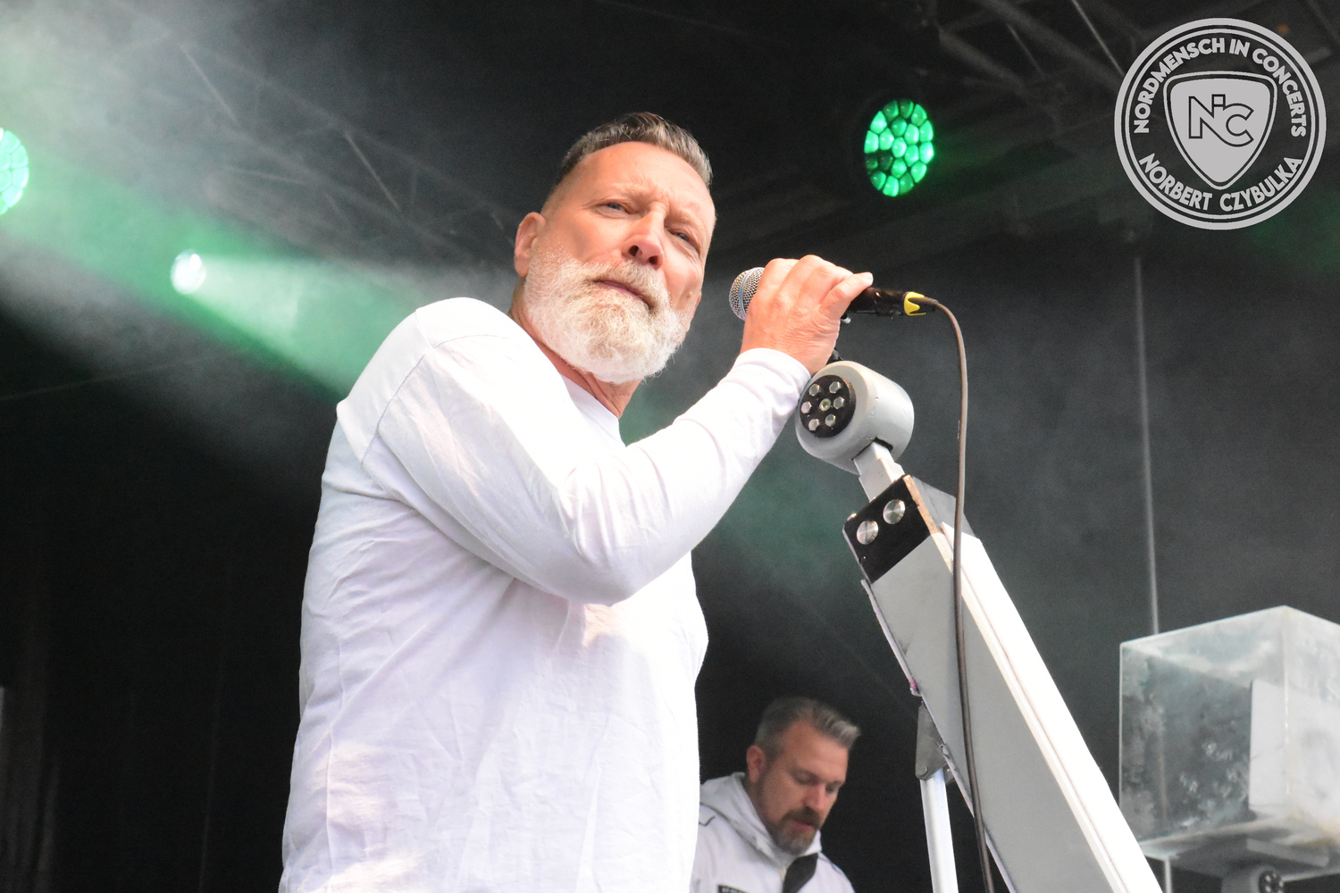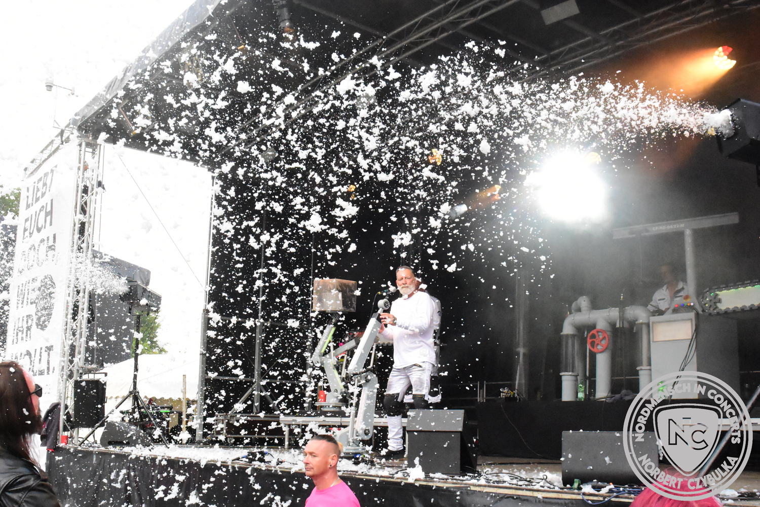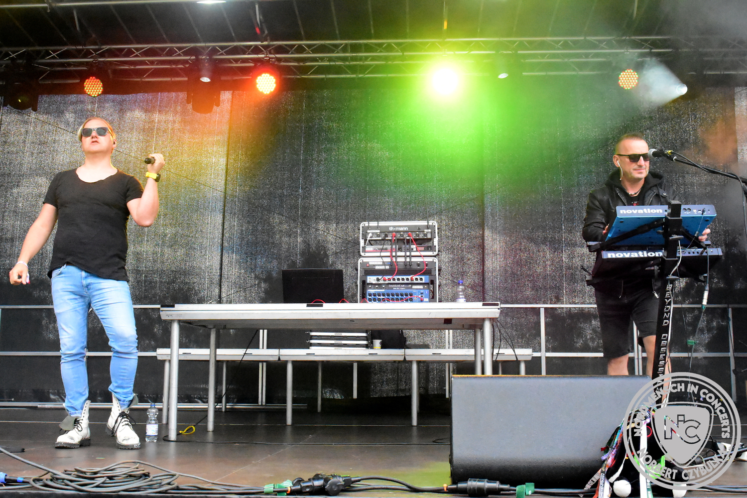 Beyond Obsession ist ein deutsches Duo, das die Welt der Synth-Pop-Szene mit beeinflusst hat. Heute sollen sie den Festivaltag um 13 Uhr eröffnen. Sänger Nils Upahl trifft beim ersten Song die Töne nicht, über den Rest des Konzertes kann ich nichts sagen, da ich zum Frühschoppen verabredet bin. Sorry, aber Elektro- und Synth ist nicht meines.