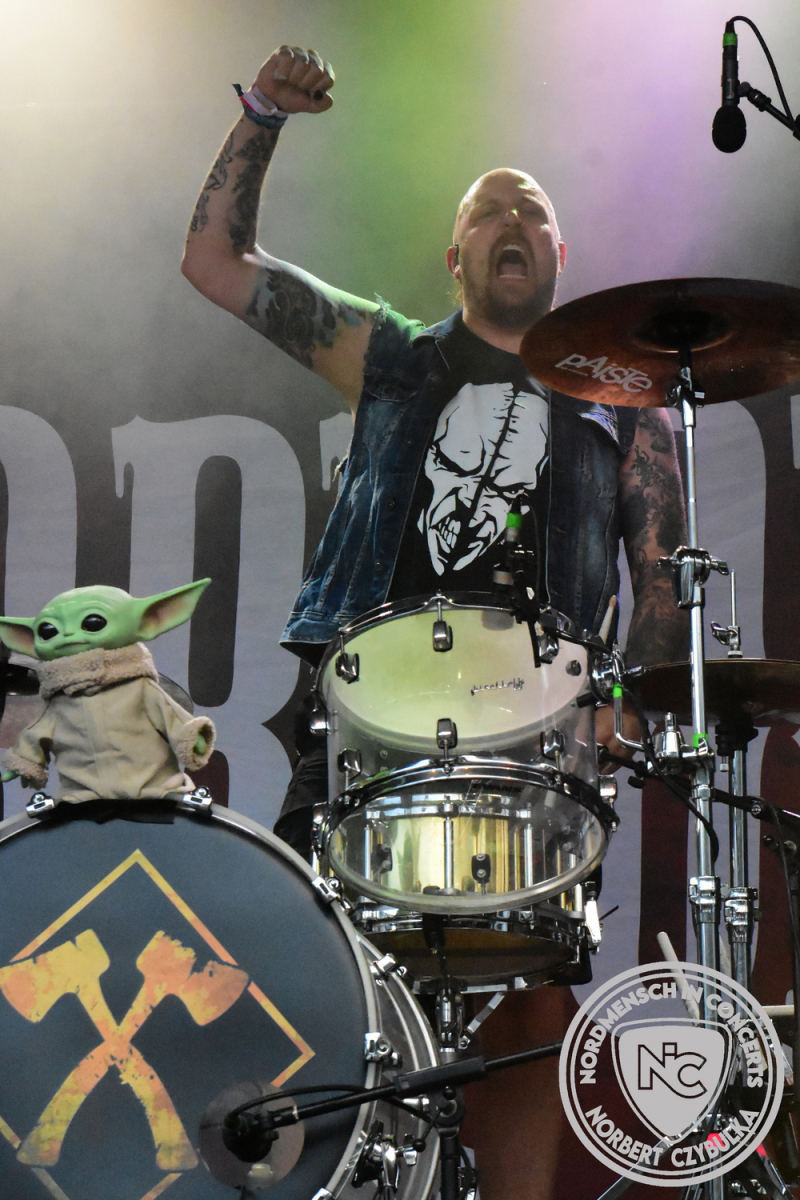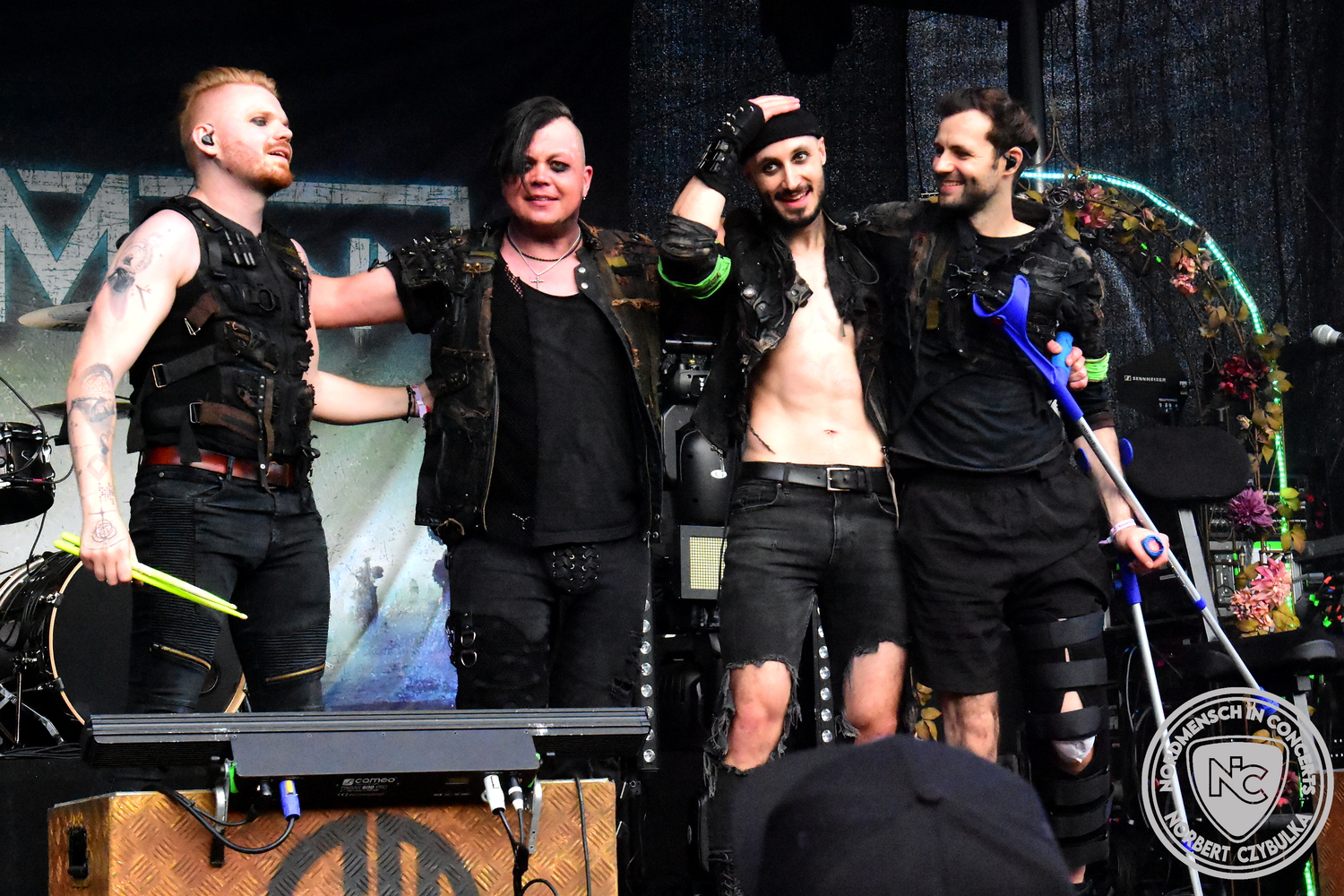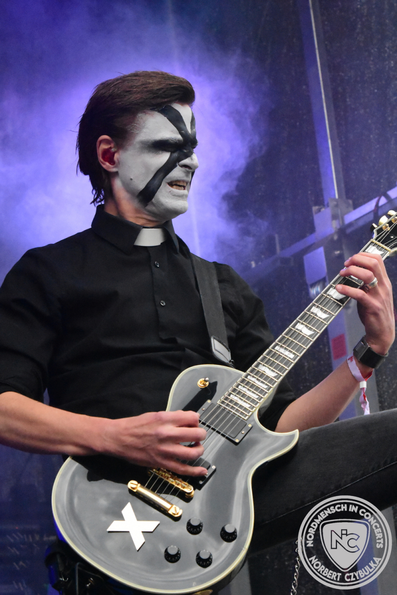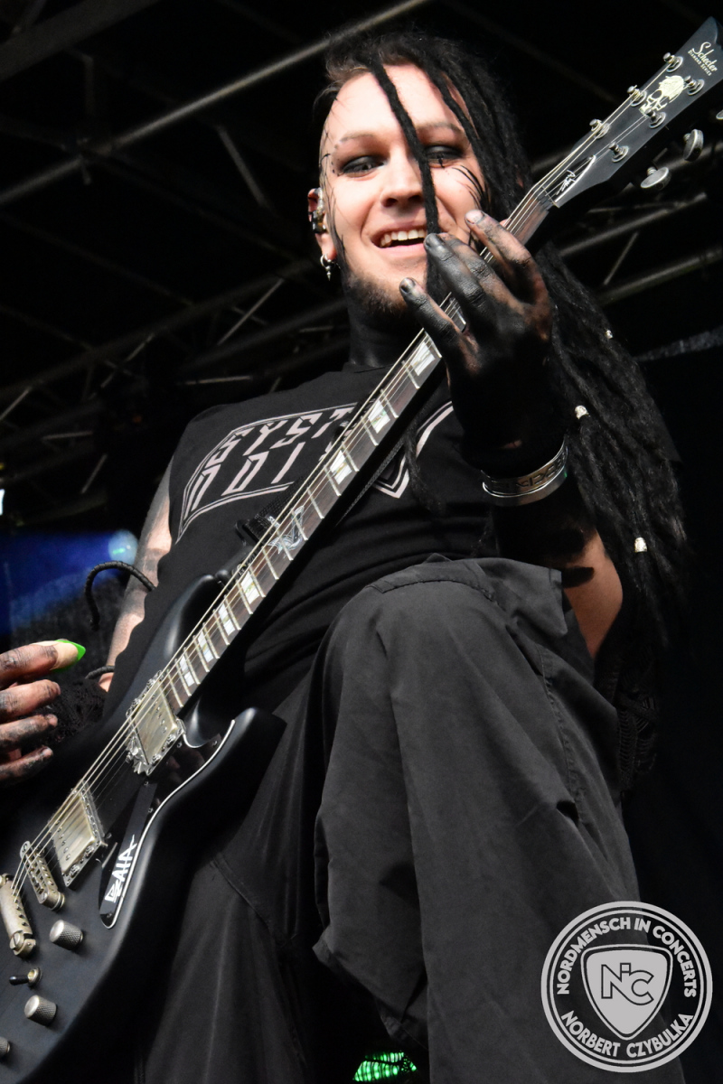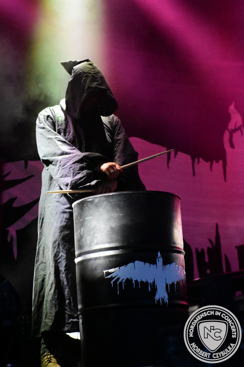Mit Megaherz steht ein Co-Headliner um 19:15 Uhr auf der Bühne, auf den viele Fans gewartet haben. Spielten die Münchner Anfangs einen Stil, der in die Kategorie Neue Deutsche Härte gehörte, passen sie nun noch in die Stilrichtung des Dark- oder Gothic-Rock.