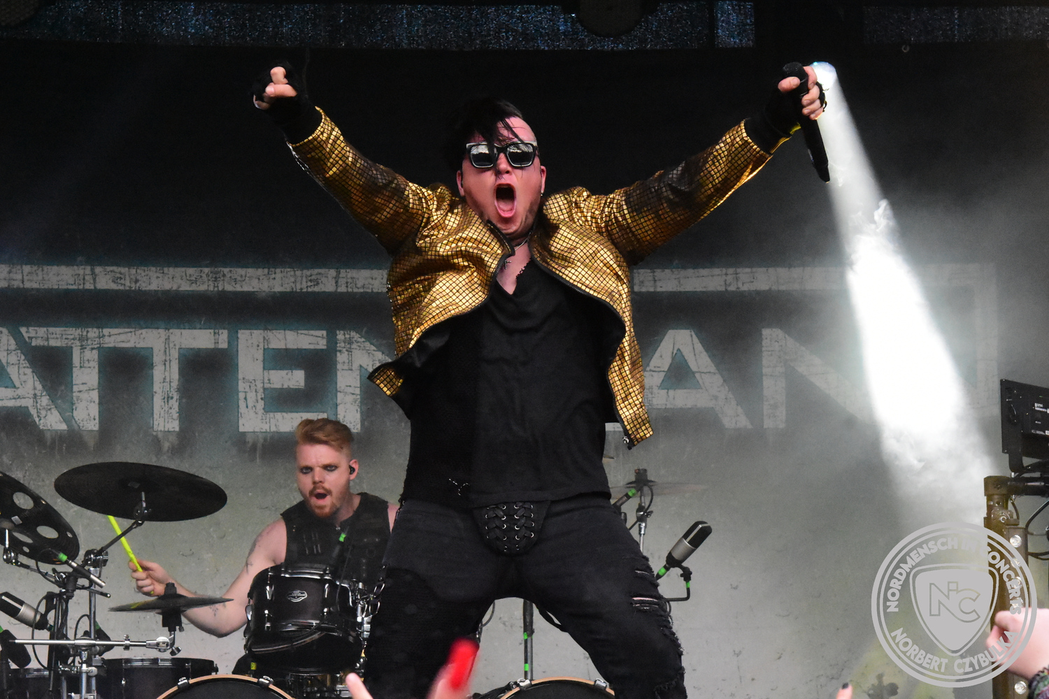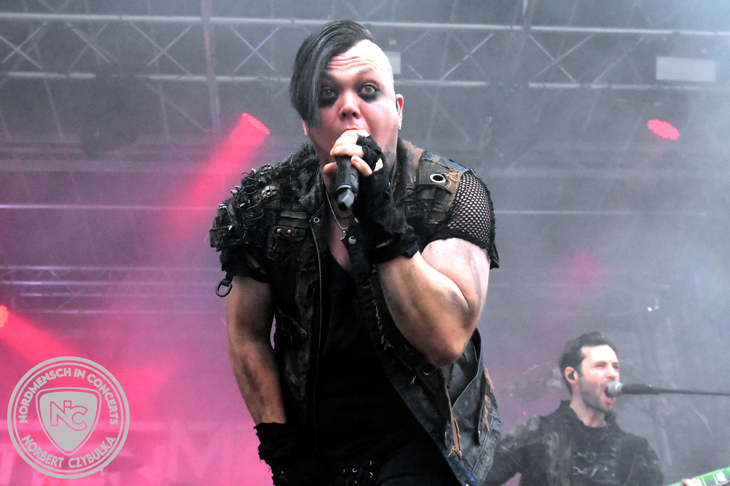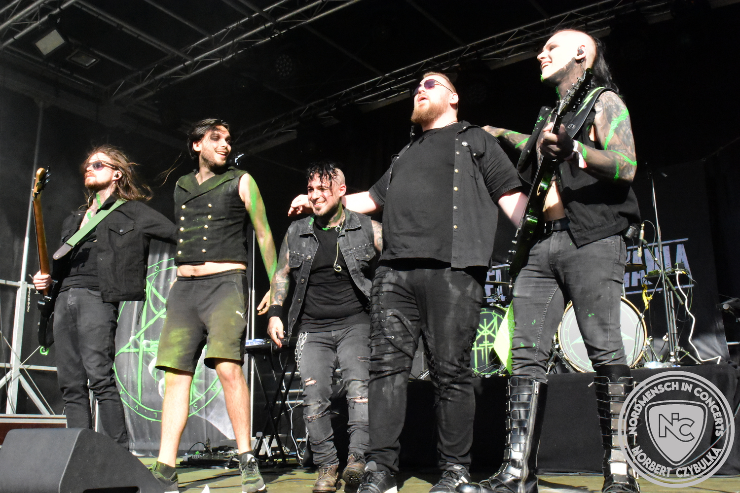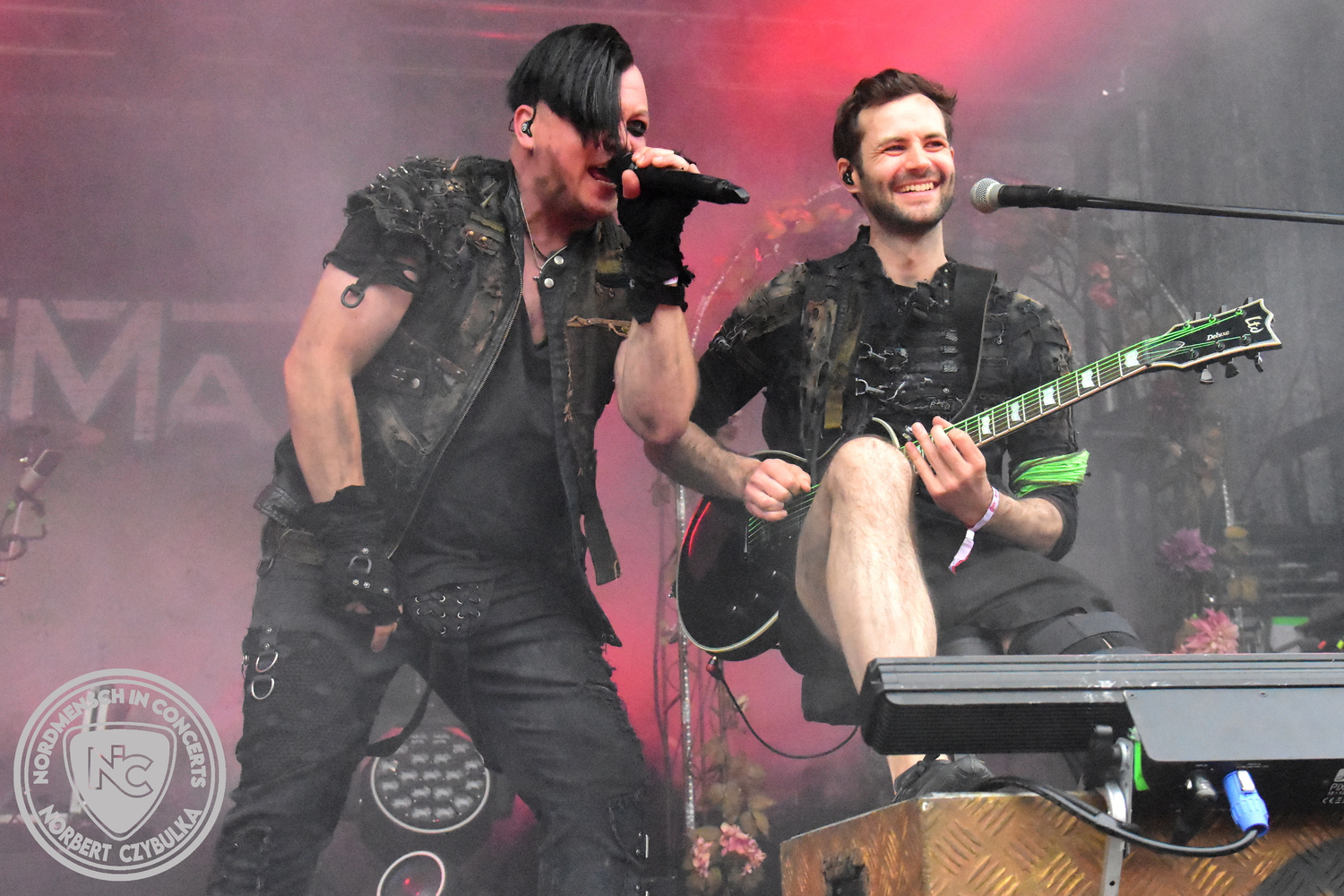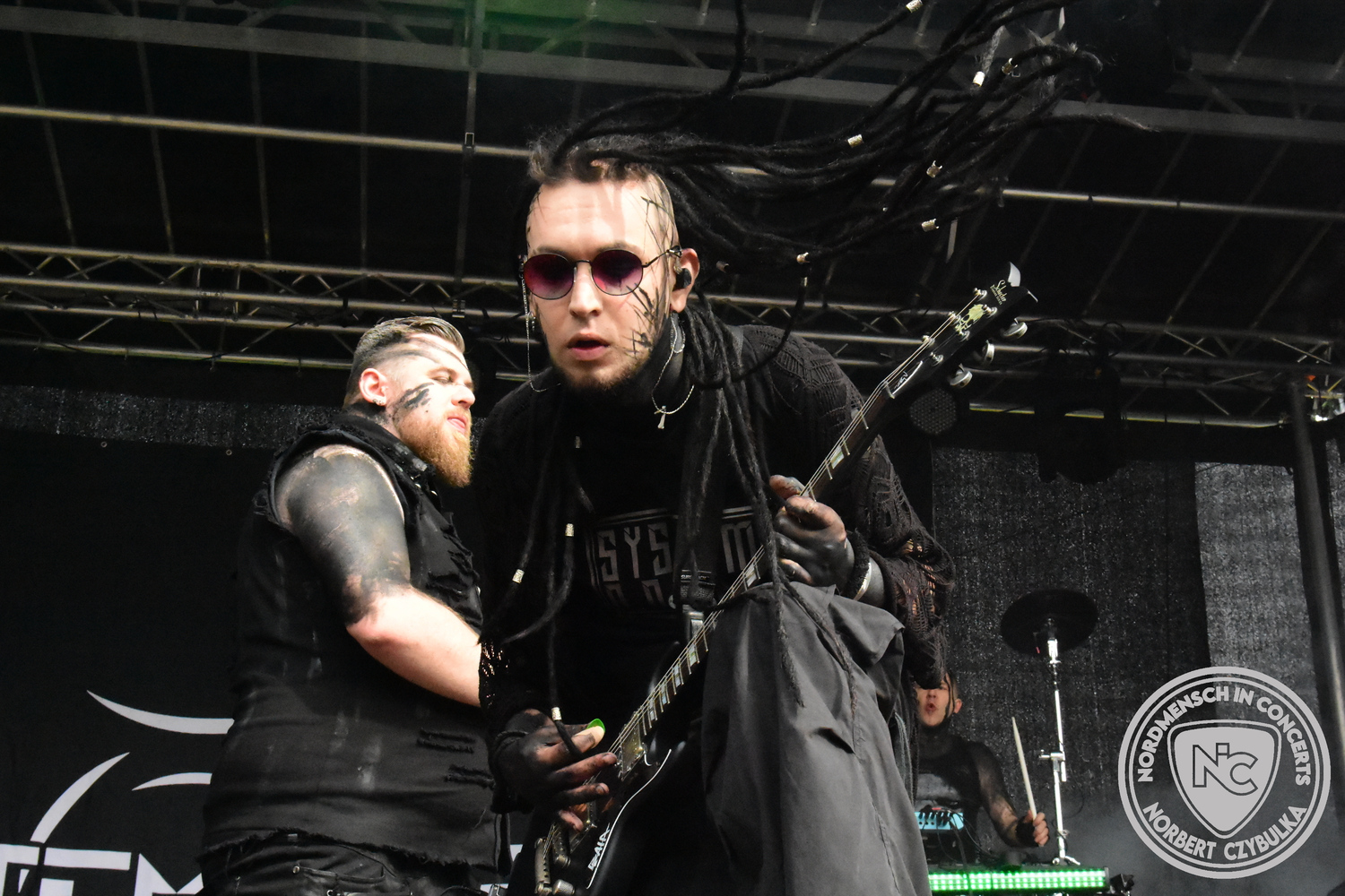Mit Megaherz steht ein Co-Headliner um 19:15 Uhr auf der Bühne, auf den viele Fans gewartet haben. Spielten die Münchner Anfangs einen Stil, der in die Kategorie Neue Deutsche Härte gehörte, passen sie nun noch in die Stilrichtung des Dark- oder Gothic-Rock.