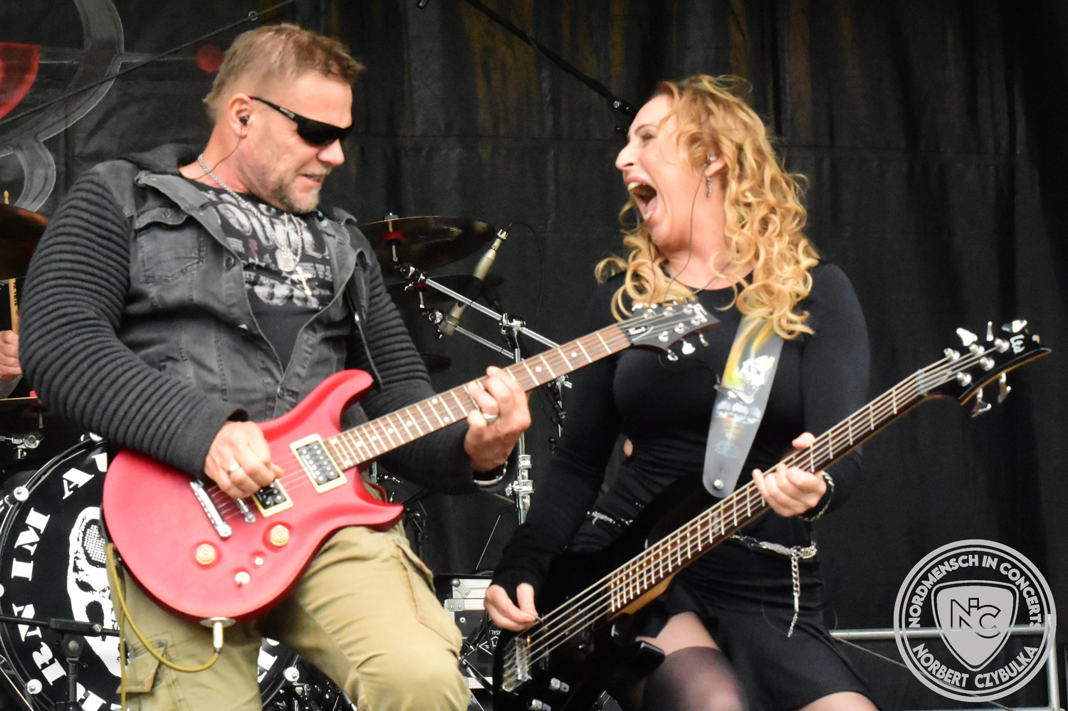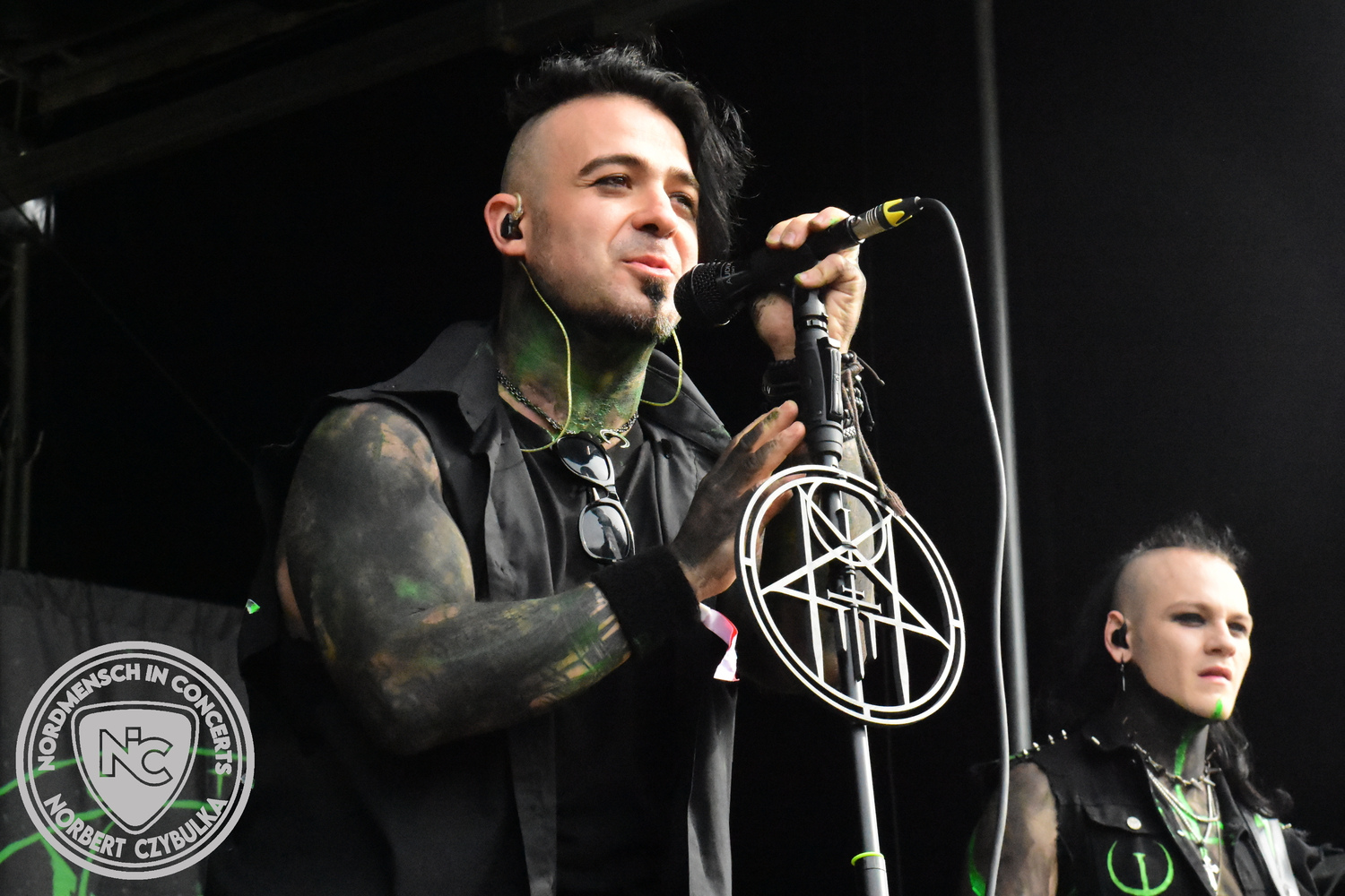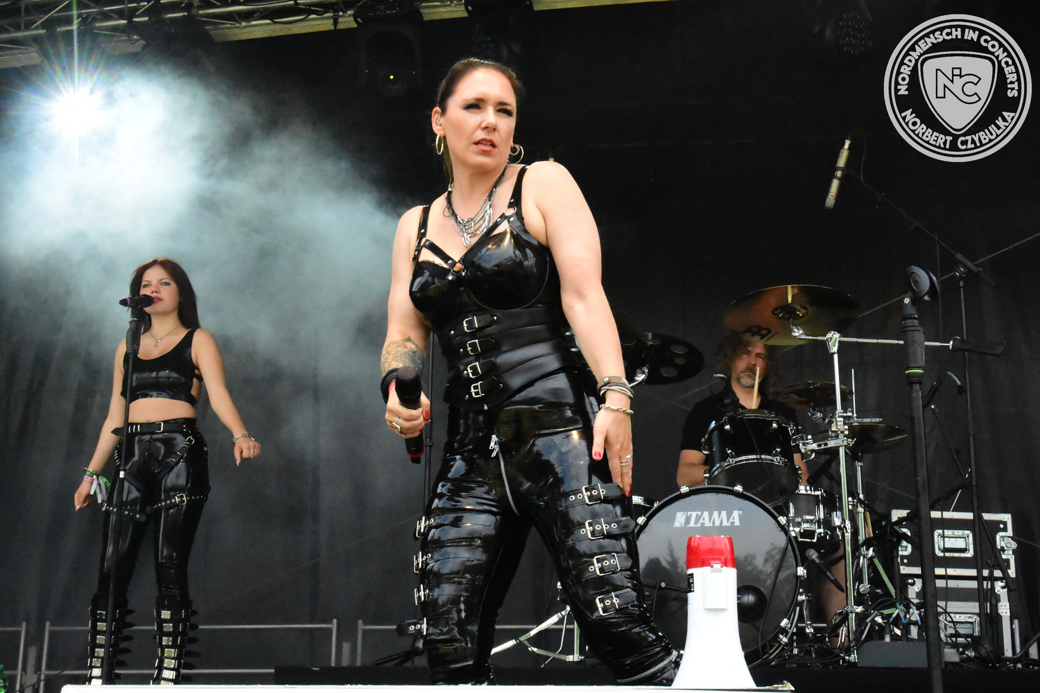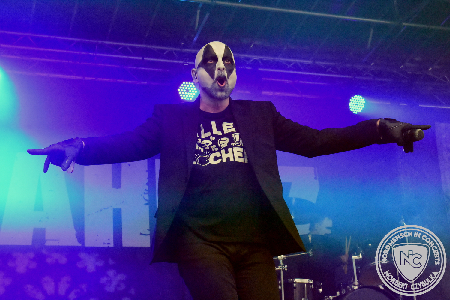 Mit Megaherz steht ein Co-Headliner um 19:15 Uhr auf der Bühne, auf den viele Fans gewartet haben. Spielten die Münchner Anfangs einen Stil, der in die Kategorie Neue Deutsche Härte gehörte, passen sie nun noch in die Stilrichtung des Dark- oder Gothic-Rock.