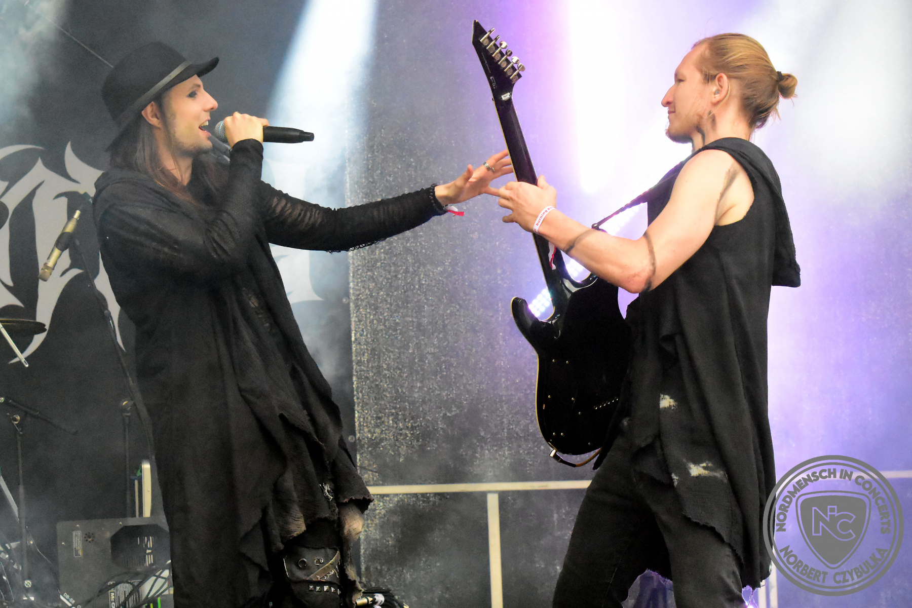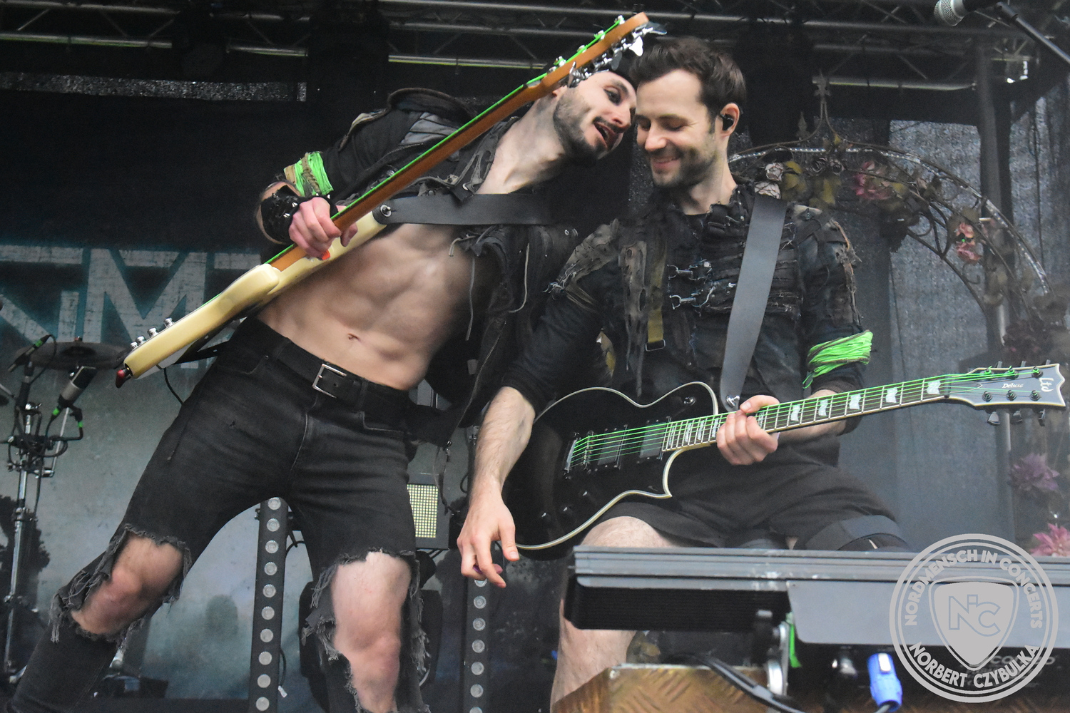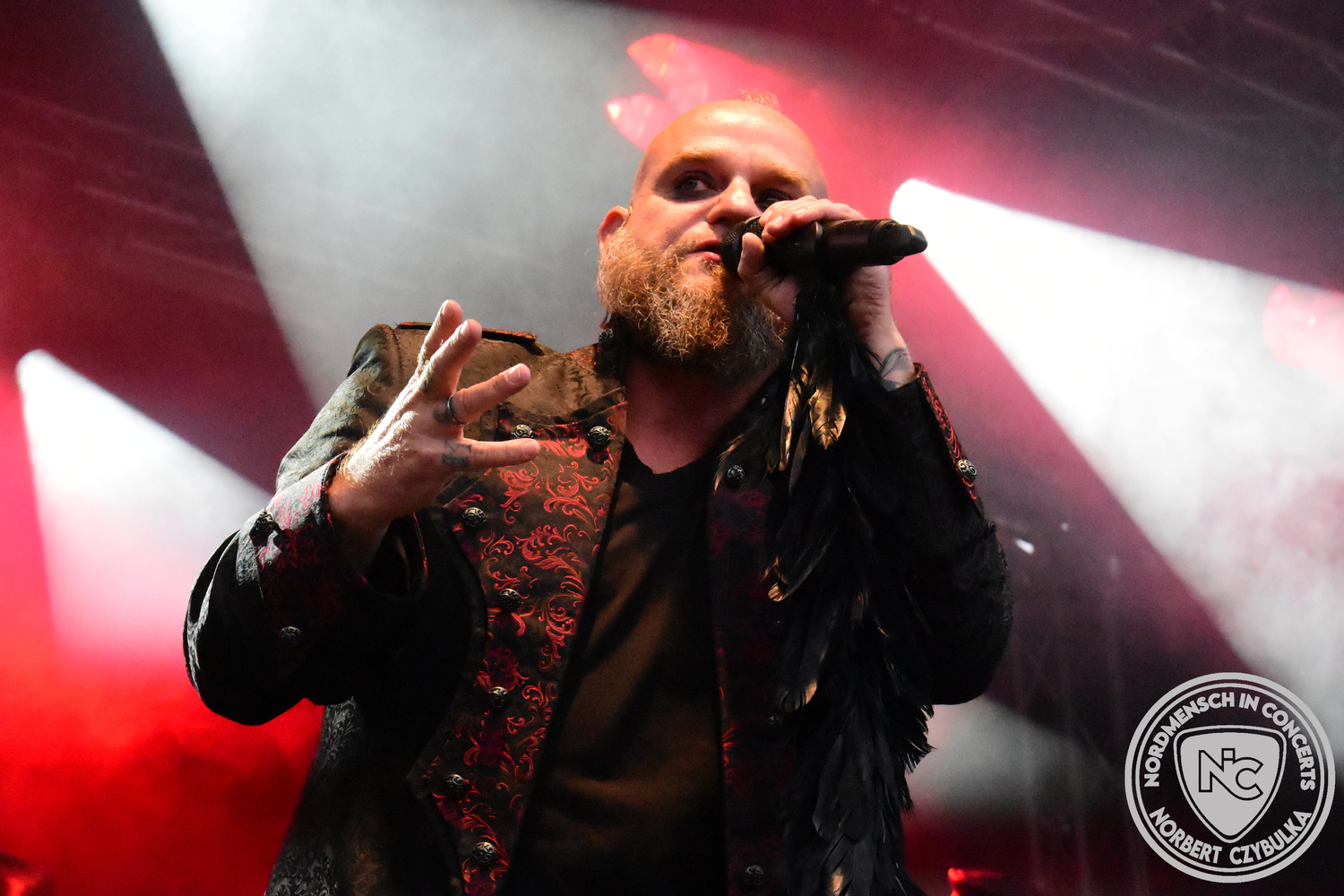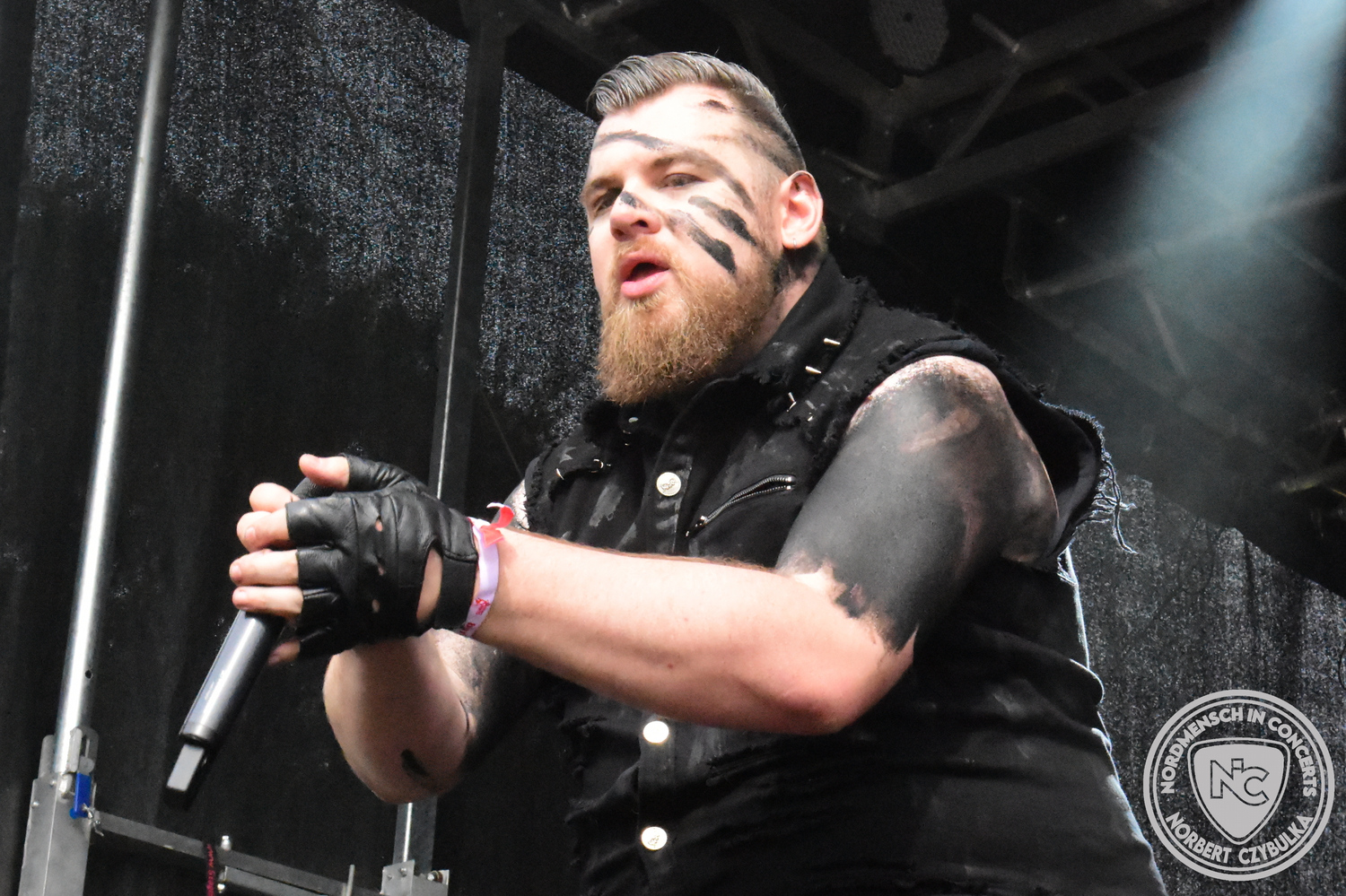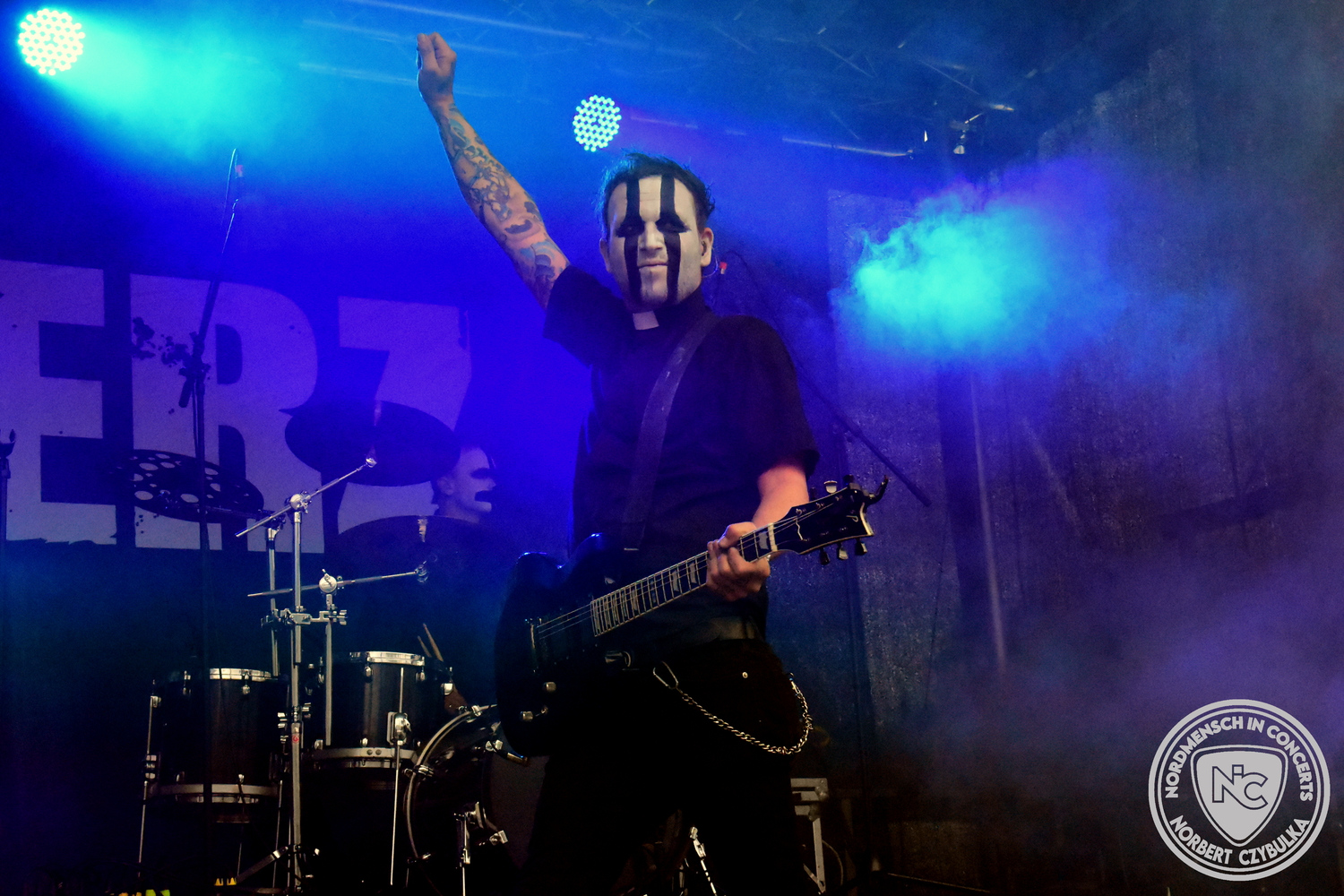 Mit Megaherz steht ein Co-Headliner um 19:15 Uhr auf der Bühne, auf den viele Fans gewartet haben. Spielten die Münchner Anfangs einen Stil, der in die Kategorie Neue Deutsche Härte gehörte, passen sie nun noch in die Stilrichtung des Dark- oder Gothic-Rock.