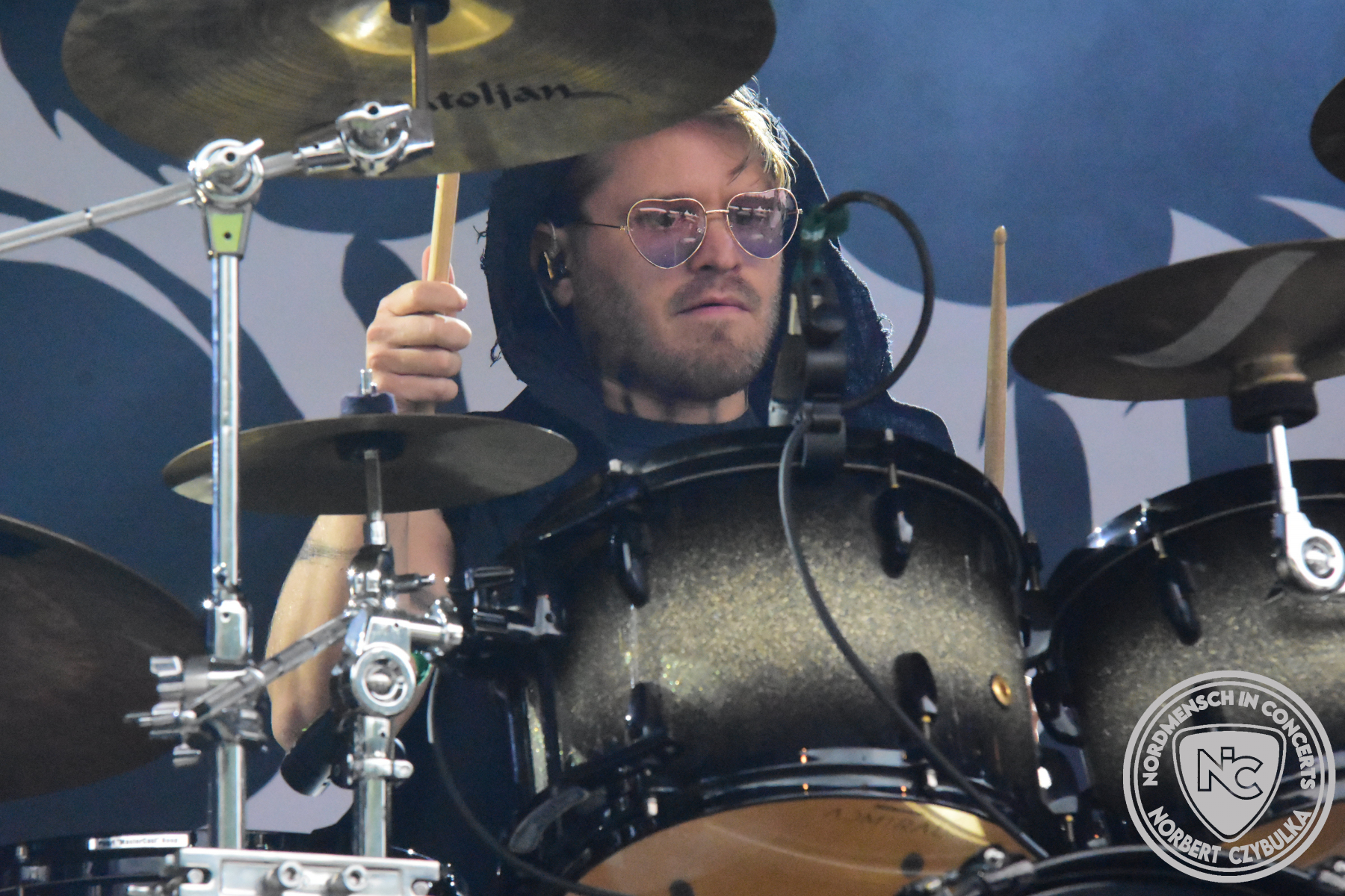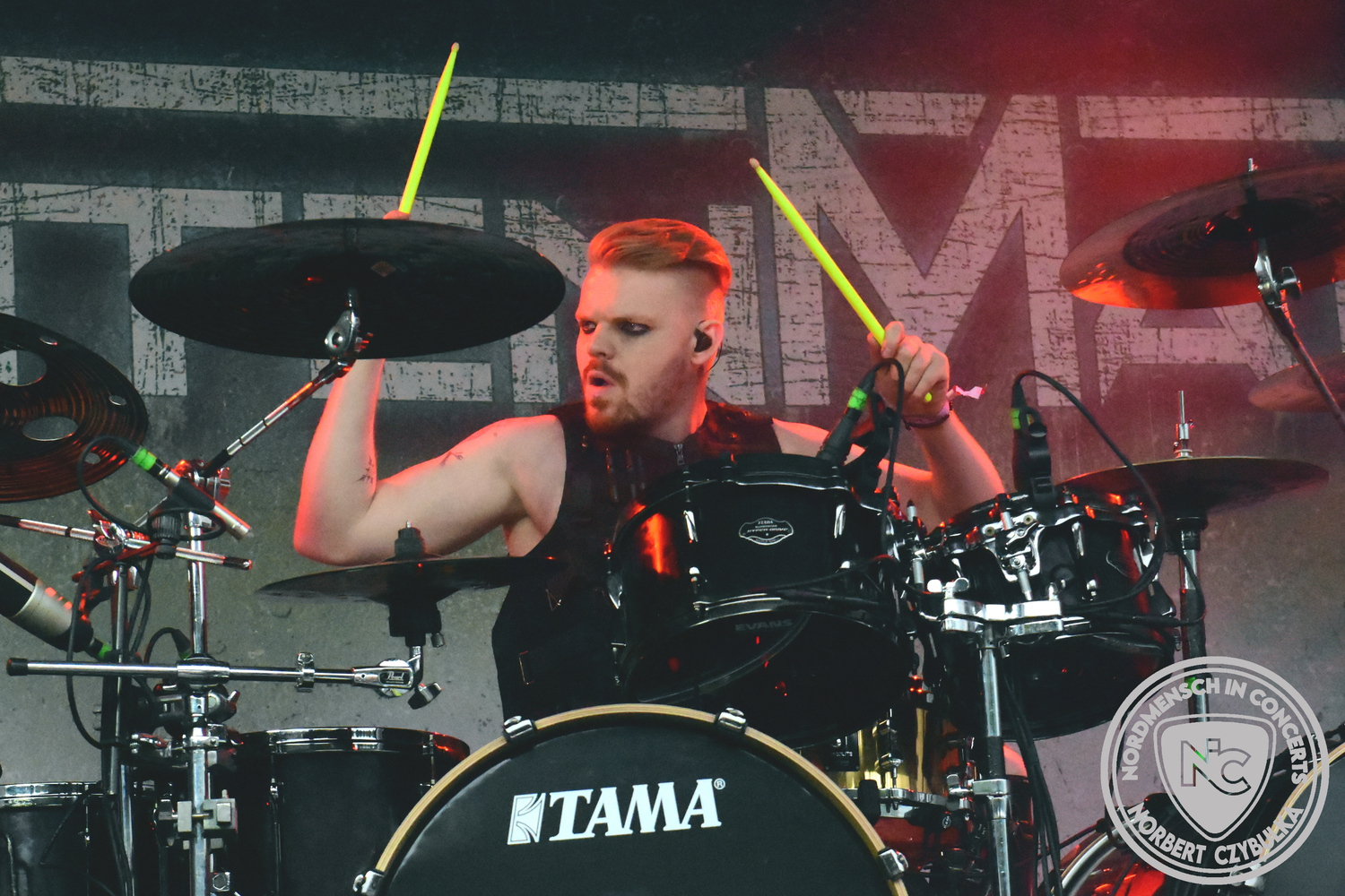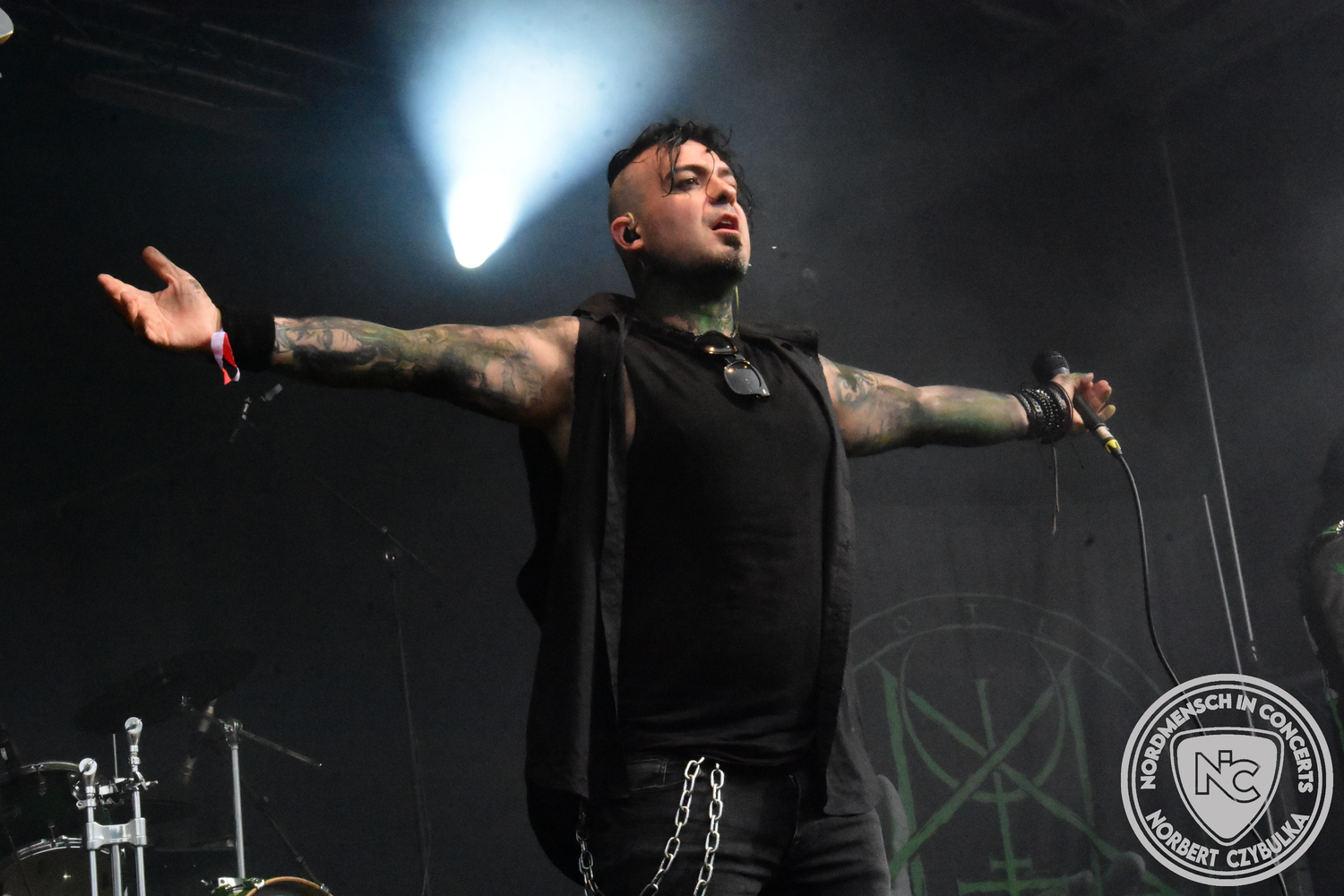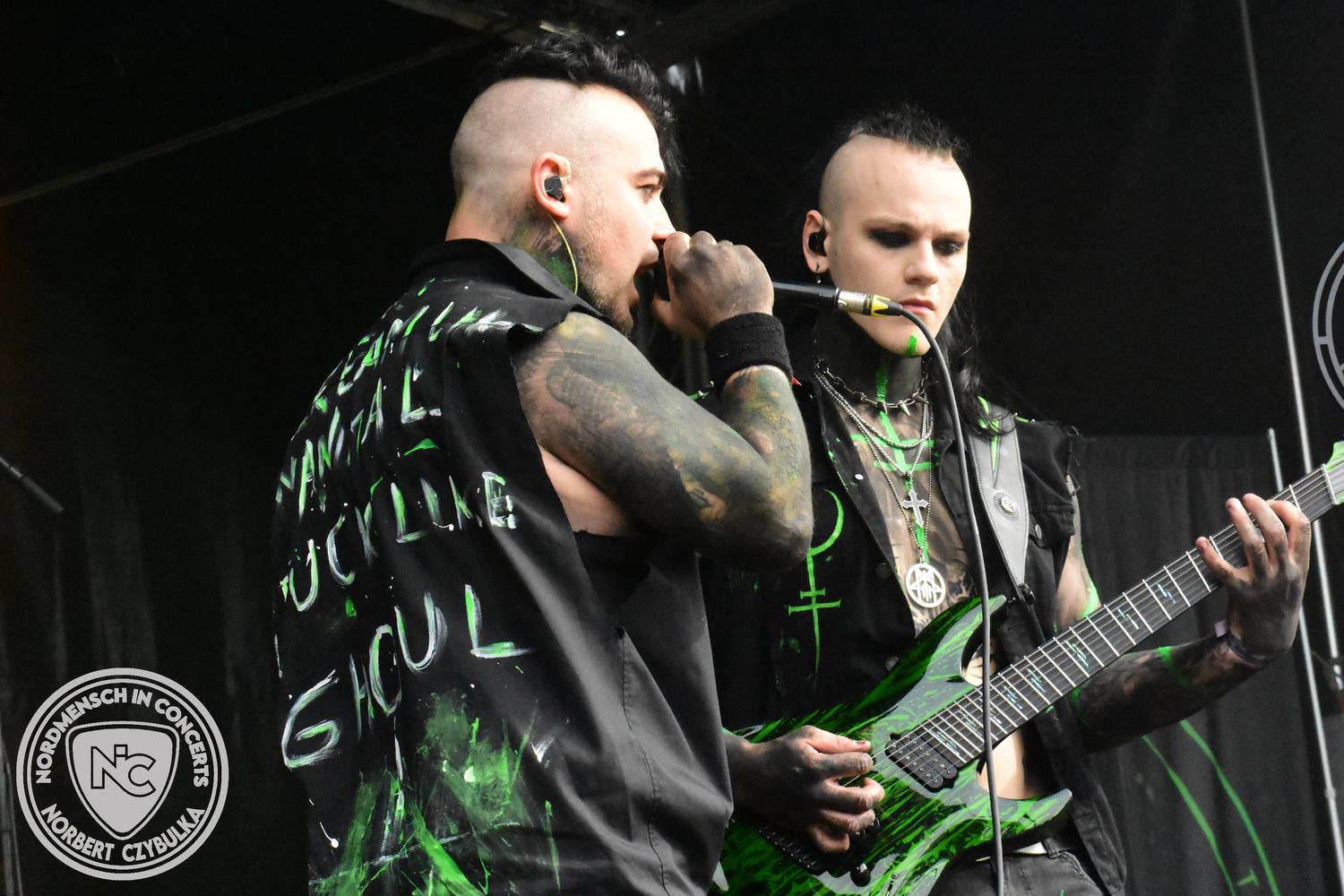 Mit Megaherz steht ein Co-Headliner um 19:15 Uhr auf der Bühne, auf den viele Fans gewartet haben. Spielten die Münchner Anfangs einen Stil, der in die Kategorie Neue Deutsche Härte gehörte, passen sie nun noch in die Stilrichtung des Dark- oder Gothic-Rock.