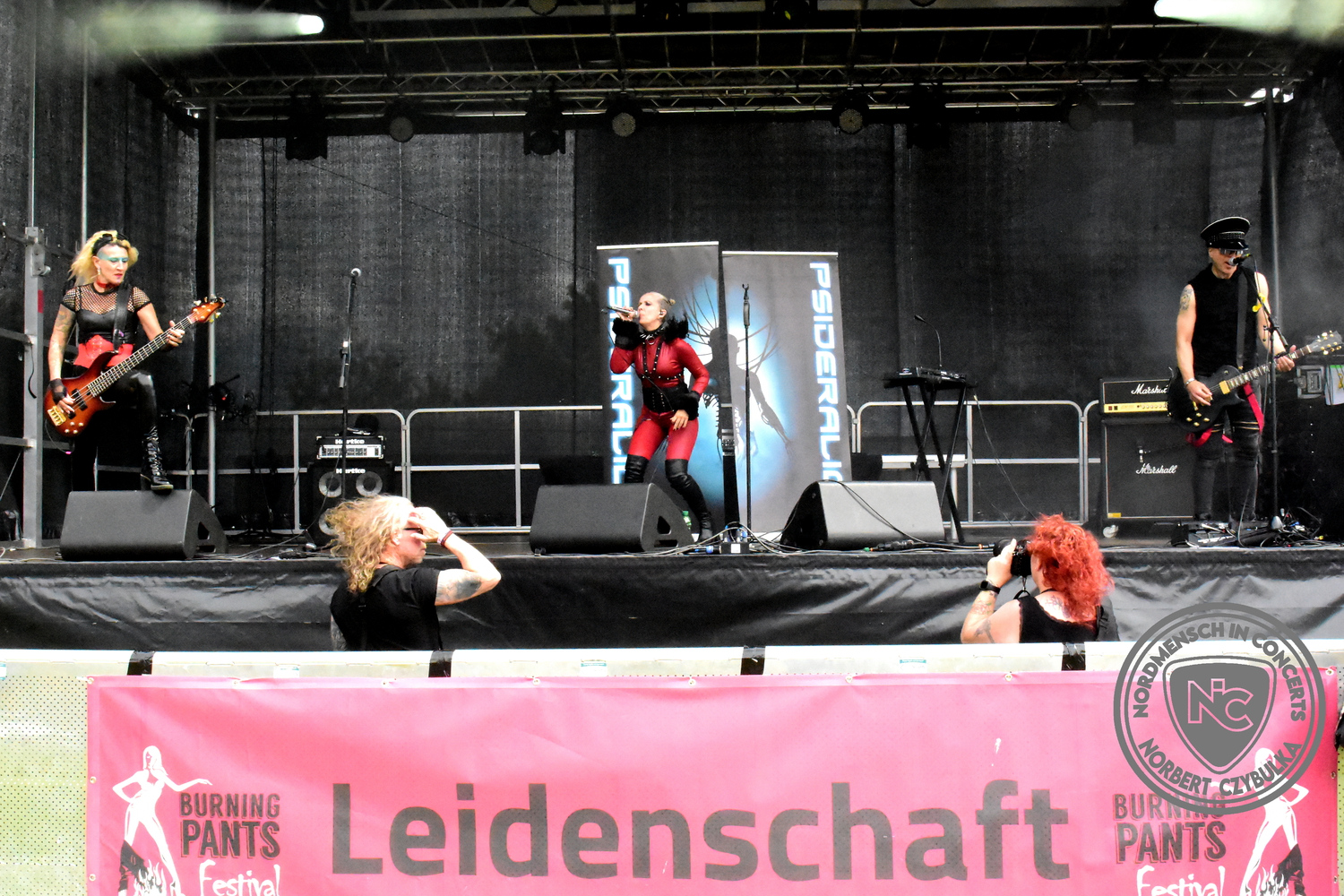 Aber wieder schnell zurück auf das Feld, denn so einen Stil wie den von Psideralica habe ich noch nicht gehört. Die drei kommen extra von der spanischen Insel Mallorca zum beschaulichen Burning Pants Festival. Sie sind in die Obergruppe Industrial einzuordnen, das war es dann aber auch schon. Rock? Pop? Metal? Da ist irgendwie alles dabei. Auch heute schwanken die Musikrichtungen gnadenlos in alle Facetten aus.