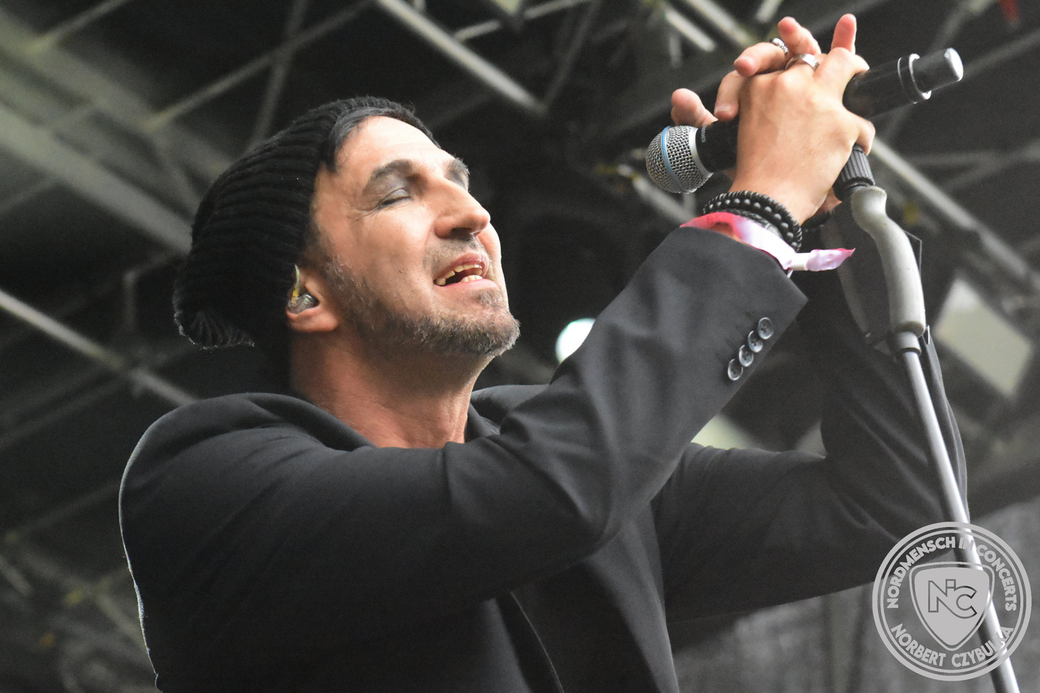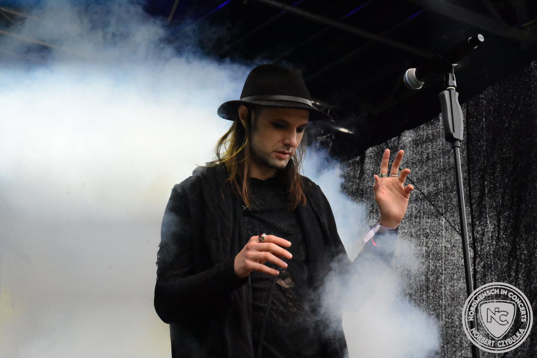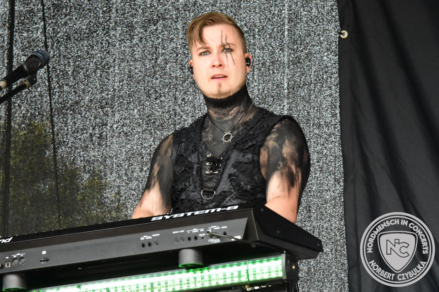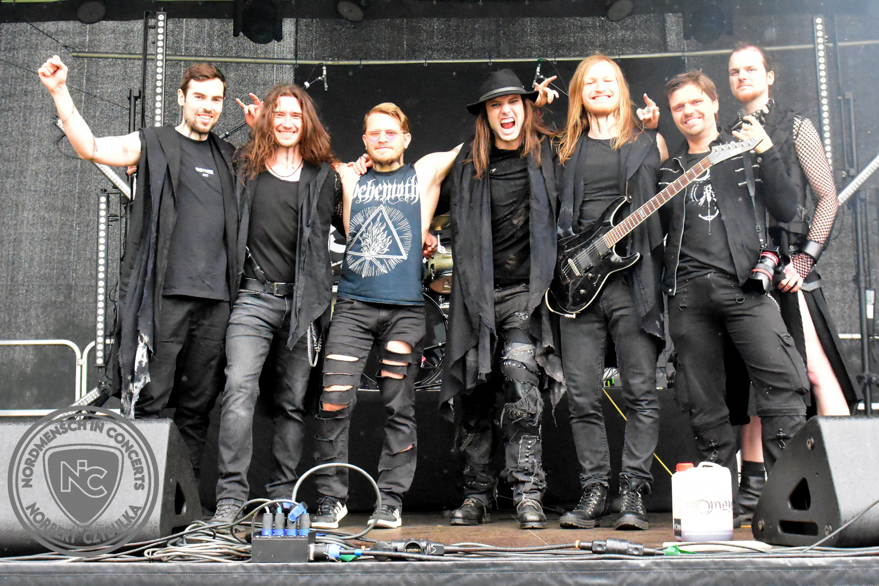 Mit System Noire stehen wieder alte Bekannte auf der Bühne. Die Hannoveraner spielen einen Sound, mit dem ich wieder nicht warm werde. Alternative Elektro mischt sich mit Future-Pop. Das ganze ziemlich düster abgemischt. Obwohl Toxi Gouhl, der Sänger von Motel Transilvania bei einem Song vorgesehen ist, verzichte ich auf das Konzert und drehe stattdessen eine Runde über das Festivalgelände. Pünktlich zu Storm Seeker, einer Pirate-Folk Metal Band aus Düsseldorf, bin ich wieder vor Ort. Die Stimmung vor dem Wellenbrecher ist ordentlich. Da ist wieder eine Band bisher an mir vorbei gegangen. Aber auch dazu sind Festivals ja da, um neue Bands und Stile kennenzulernen. Das Festival biegt damit auf die Zielgerade ein.