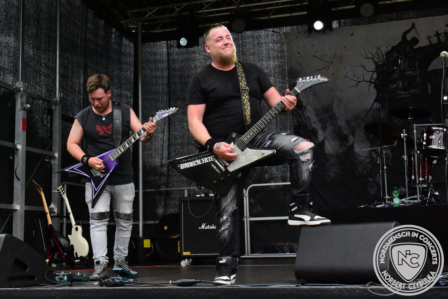 Samstag Mittag, 12:10 Uhr. Die Kopfschmerzen klingen nur langsam ab. Dafür steht schon die erste Band auf der Bühne. Valid blU ist eine fünfköpfige Artrock-/Progressive Rock-Band aus Wolfsburg. Ihre Spielzeit endet jedoch bereits nach 35 Minuten. Sie machen Platz für zwei befreundete Bands aus der Schweiz. Den Anfang macht Broken Fate aus Zürich. Ihr Melodic Death Metal kommt bei den Fans an, ihr Merch-Stand ist nach dem Gig reichlich umlagert. Die nachfolgenden Sickret sind eine Nu-Metal-Band aus Sursee. Da die Jungs ein elektronisches In-Ear-System verwenden, bekomme ich ihre Setlist nach dem Gig am Merchstand aufgeschrieben. Nochmals vielen Dank dafür!