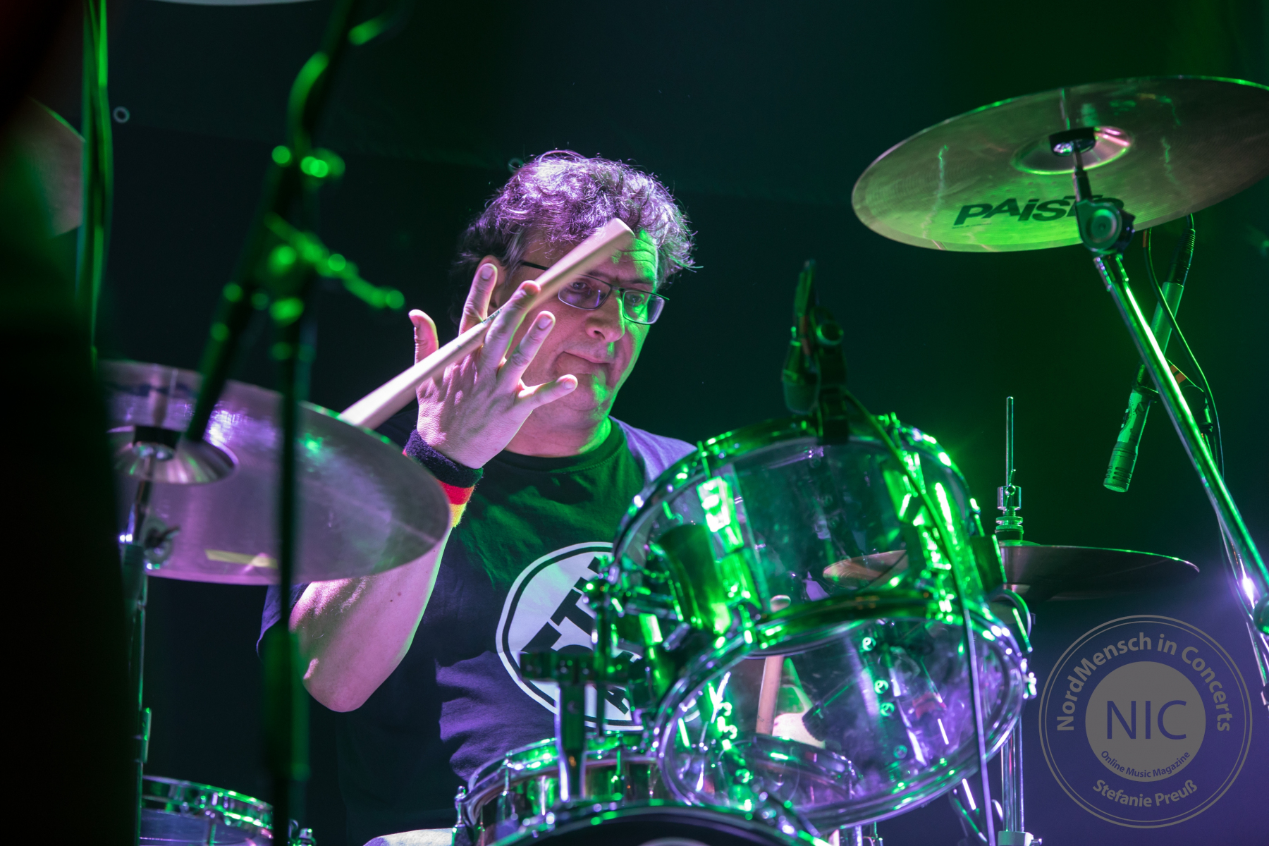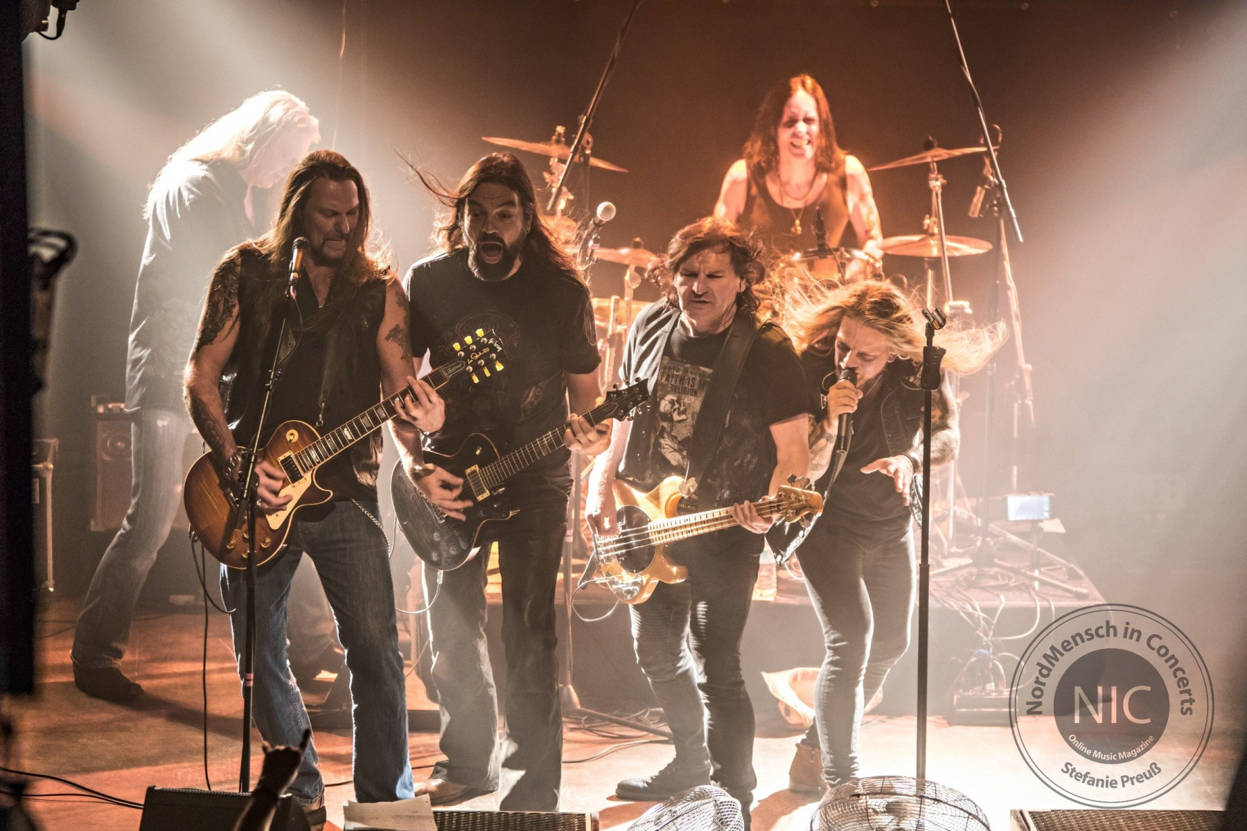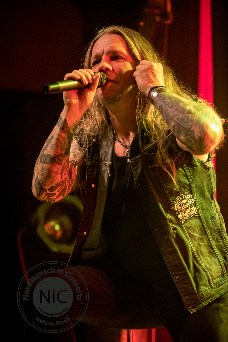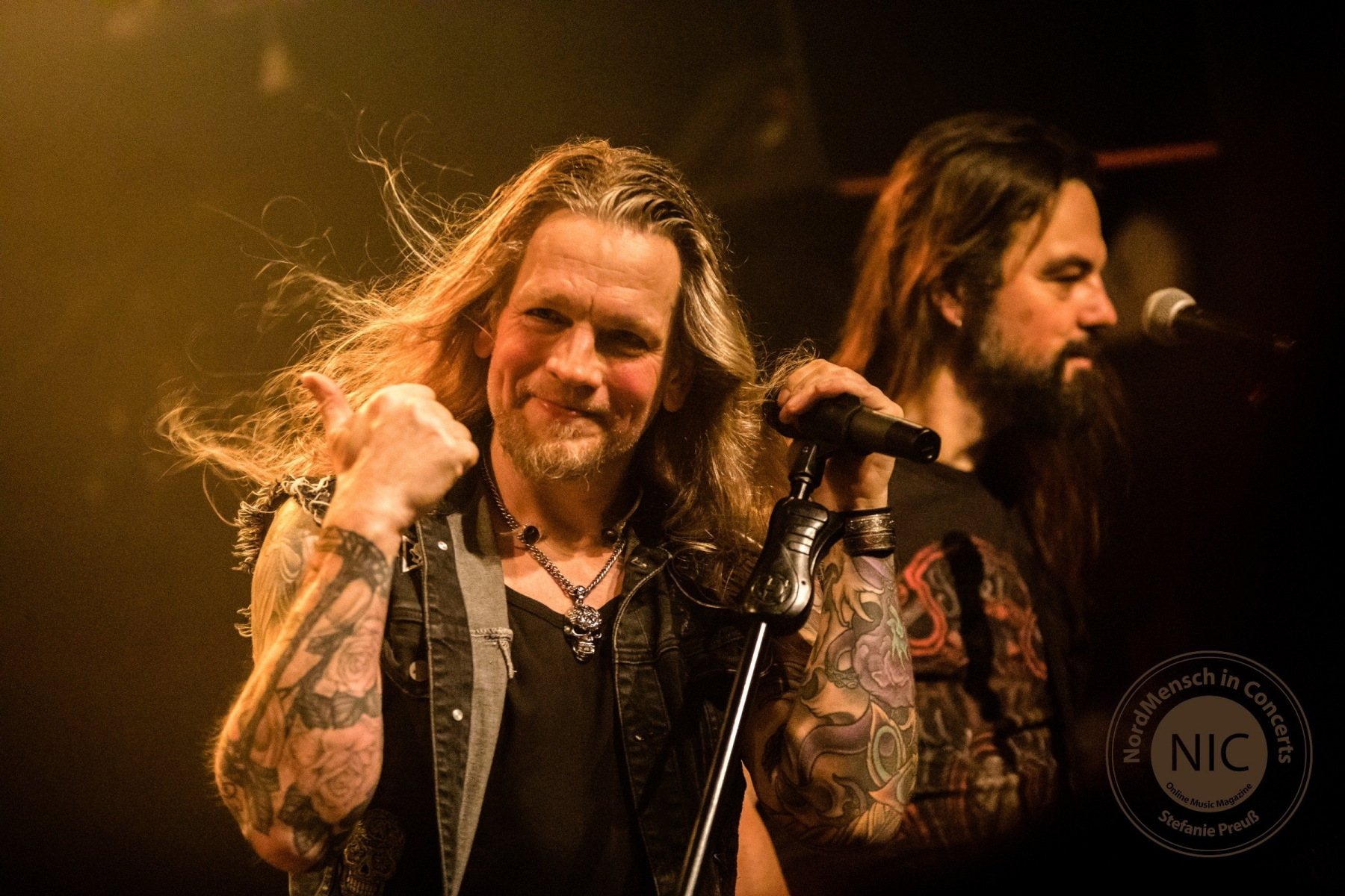 Schon vor der Tür wartend auf den Einlass, spürte man gleich, dass dieser Abend einen sehr familiären bzw. freundschaftlichen Rahmen haben würde. Viele langjährige Fans fanden sich vor der Eingangstür des Hamburger Knust ein und man plauderte schon angeregt bei einem Glas Bier oder einem Pott Glühwein (sozusagen das Warm-Up bei Minustemperaturen outside). Aber das war egal. Es herrschte eine schöne Stimmung und man freute sich auf diesen tollen Geburtstags-Gig der jung gebliebenen Wacken-Pioniere.