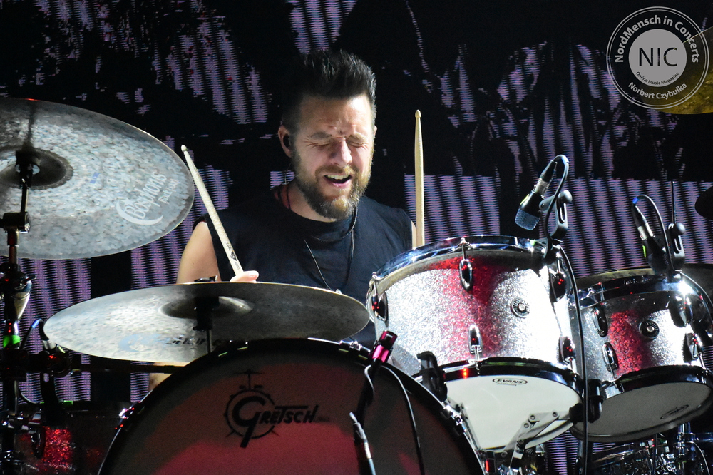 Standen früher die Metallica-Songs von Apocalyptica im Vordergrund, hat sich dies spätestens mit dem letzten Album „Cell-O“ aus dem Jahre 2020 wieder geändert. Strotzend vor barocker Energie finden die Finnen darauf zu ihren expressiven instrumentalen Wurzeln zurück. Dies bringen sie eindrucksvoll auf die Bühne. Der Opener des Albums „Ashes Of The Modern World“ weist gleich zu Beginn den Weg und beweist eindrücklich, dass Cello und Metal vortrefflich zueinanderpassen. Mitten in der strukturierten Setlist steht zu „I’m Not Jesus“ dann Franky Perez auf der Bühne. Der amerikanische Sänger von Scars On Broadway nahm mit den Finnen einige Titel auf und war eigentlich nur für die Nordamerikatour angesagt. Nun steht er für drei Songs auf der Bühne. Es folgen noch „Shadowmaker“ und „I Don’t Care“ vom aktuellen Album. Das Apocalyptica covern können, haben sie schon hinlänglich bewiesen. Bevor der Kracher „Nothing Else Matters“ von Metallica ertönt, mischen sie aber auch fremde Songs in ihre eigenen. So endet „Shadowmaker“ mit einem Part aus „Killin In The Name“ und Metallicas Cover  „Seek & Destroy“ mit Riffs aus AC-DCs „Thunderstruck“. Den Schlußpunkt setzten sie dann mit „In the Hall of the Mountain King“, einem Cover von Edvard Grieg.