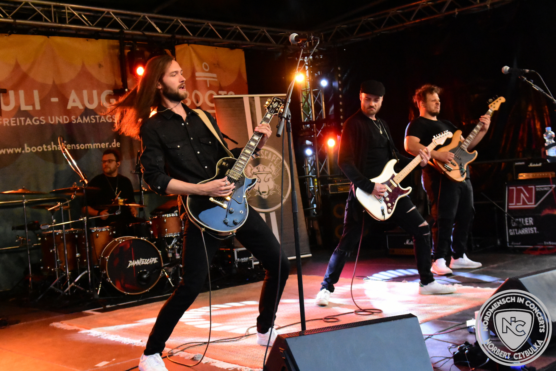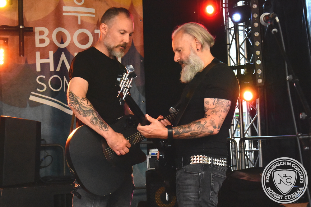 Das dritte Wochenende startet wieder mit einem Knallertag. Am Freitag 02.08.2024 startet der über die Grenzen hinaus bekannte Singer-/Songwriter Brendan Lewes. Er wird abgelöst von Insomniac Territory, einer jungen Kieler Band, deren Spielart sich zwischen Grunge, Alternative Rock, Punk und Acoustic Rock bewegt. Einfacher Alternative/Independent Rock kommt danach von Baltic Volt aus Lübeck, bevor die mit Newcomerpreisen dekorierte Band Grell aus Neumünster auf der Bühne steht. Alternative Rock bis Poprock würde ich ihren Auftritt kategorisieren, obwohl das nicht einfach ist. Den Fans war es egal, die Tribüne am Bootshafen platzte aus allen Nähten. Da haben es dann Tilt! danach richtig schwer. Die Goslarer promoten nicht nur ihr Debütalbum „TILT!“, machen mit ihrem Alternative Rock auch richtig Dampf. Ihre brandneue EP „Lit Up“ hatten sie nicht im Gepäck, empfahlen sich aber für ihren Supportauftritt bei The BossHoss in Bad Harzburg am Folgetag.