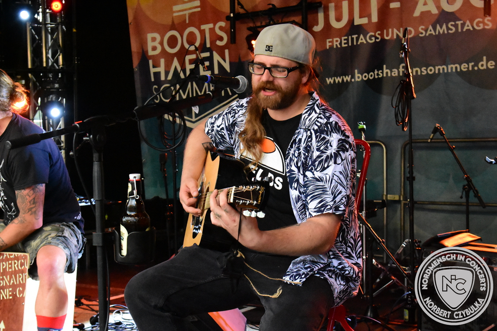 Als musikinteressierter Kieler kann man gar nicht anders, als sich an diesem fünften Wochenende wieder zum Bootshafen zu bewegen. Nach ihrem begeisternden Auftritt im letzten Jahr steht die Singer-/Songwriterin Evely auch in diesem Jahr auf der Bühne. Gut besucht ist es dann schon bei der Kieler Alternative Pop/Rock-Band Colour Gray. Auch sie haben sich auf der Kieler Woche und hier am Bootshafen schon einen Namen gemacht. Es folgt das Rapduo Mob & Djo. Französischen Hip-Hop muss man mögen. Das Programm passt irgendwie nicht in das heutige LineUp, denn mit So Long Ivy aus Hamburg (Glam Folk Punk) und den Kielern von Plastic Skanksters (Ska) stehen noch andere Kaliber auf der Bühne. Bei dem einzigen diesjährigen Konzert in ihrer Heimatstadt ist es bei den Skansters rappelvoll.