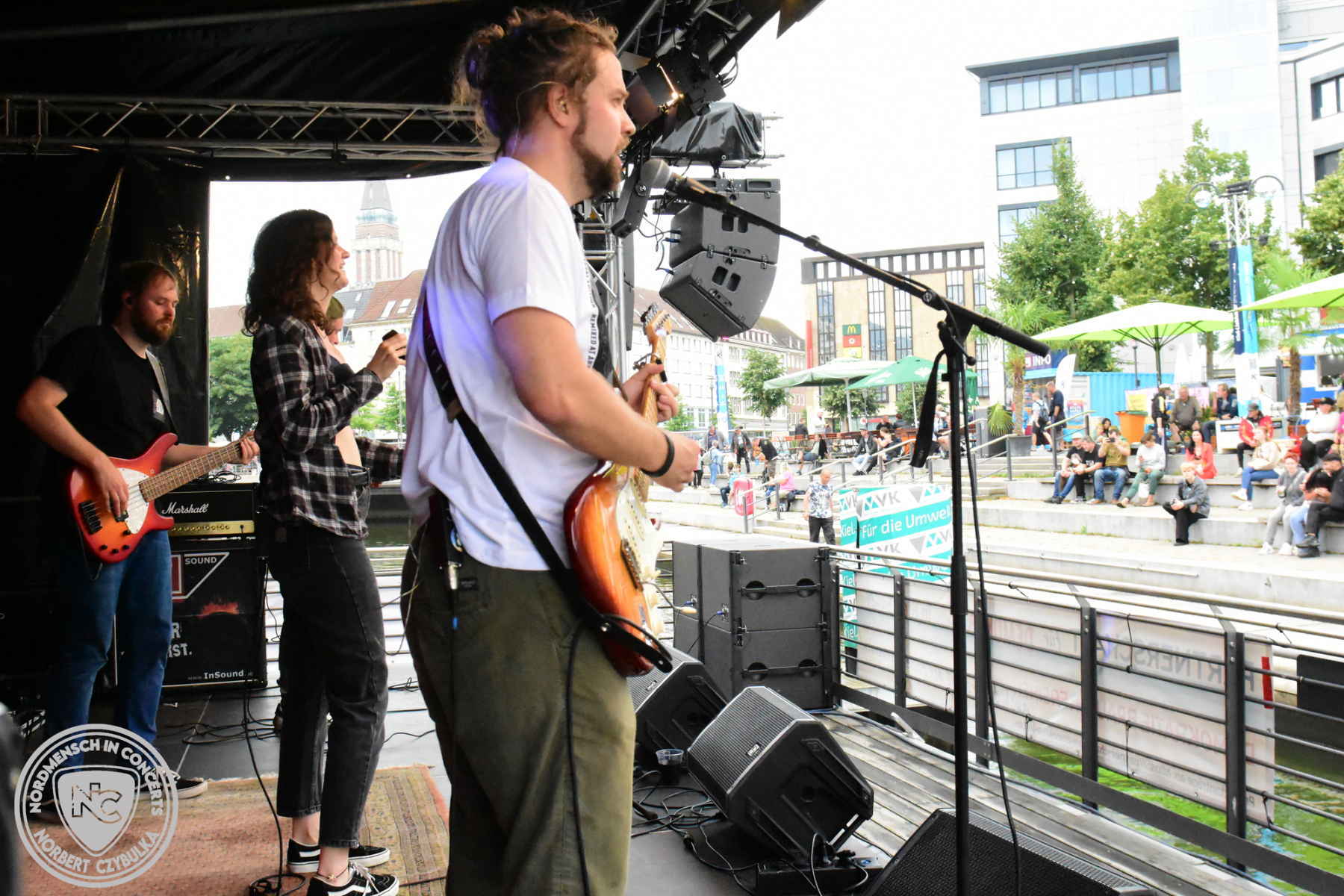 Das zweite Wochenende gehört am Freitag (26.07.) erst einmal dem Musico e.V.. Dessen geförderte Künstler können sich heute präsentieren. Den Anfang macht um 15 Uhr die Singer-/Songwriterin Jane Doe. Die Kielerin Gitarristin spielt eigene Songs mit einem Stil zwischen Indie und Pop. Danach wird es rockig. Monocaro sind vom Stil her ähnlich, bringen aber natürlich eine ganz andere Performance auf die Bühne. Auch sie spielen Indie Pop/Rock und kommen natürlich aus Kiel, aber auch Hamburg.