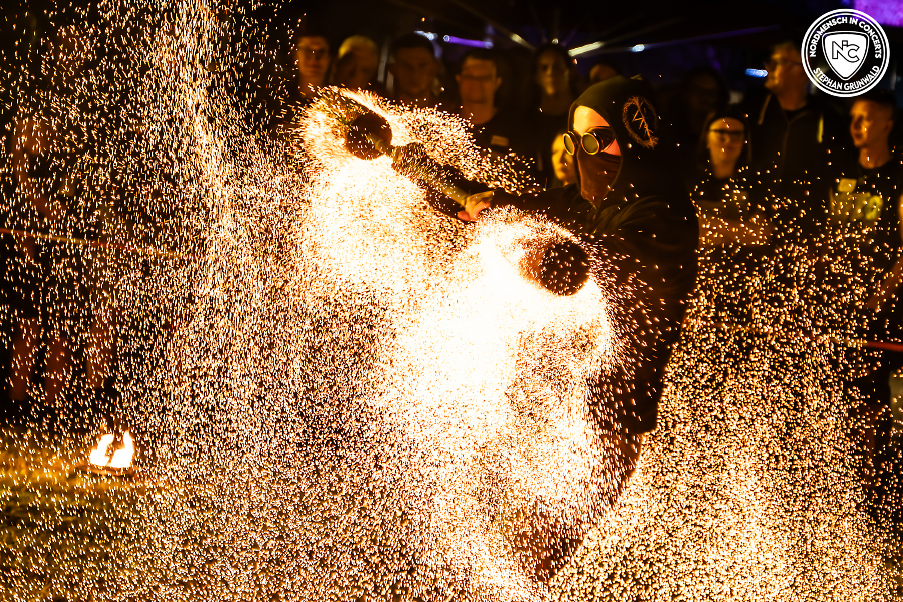 Und dann: FREIES FEUER. Eine Feuershow, die ihresgleichen sucht. Fliegende Funken, wirbelnde Fackeln, sengende Hitze in den ersten Reihen. Das riesige, brennende Q am Ende des Abends sagt unmissverständlich: Wieder ist ein Burning Q Festival in die Geschichte eingegangen.