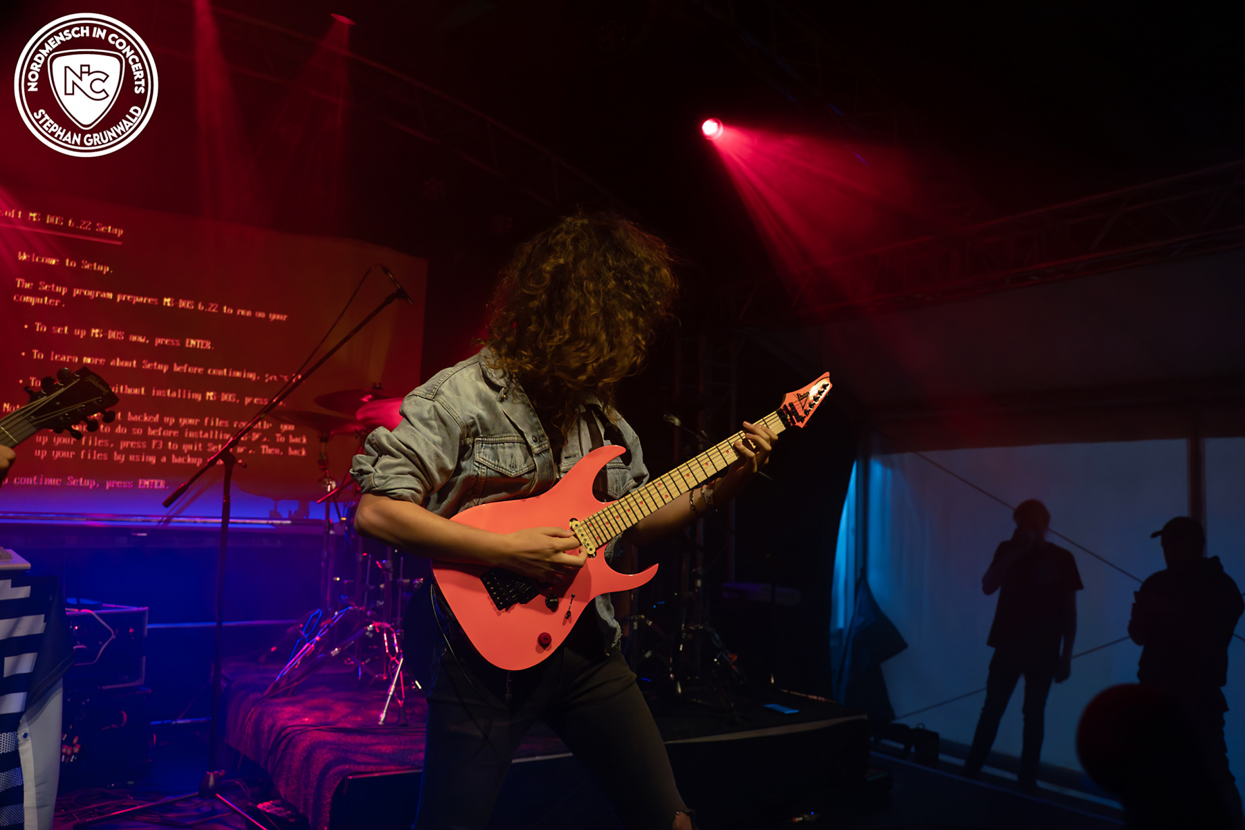 Doch nach Mitternacht ist noch nicht Schluss: MASTER BOOT RECORD übernehmen das Zelt und liefern eine Mischung aus elektronischen Beats, Metal-Riffs und einer psychedelischen Lichtshow, die fremdartig, futuristisch und hypnotisch wirkt. Ein krasser Kontrast zum bisherigen Tag – und ein Beweis dafür, dass das Burning Q keine Angst vor Experimenten hat. Frei Schnauze und mit Augenzwinkern kann man sagen, diese Band ist was für absolute Technik-Nerds. Der Musikstil vereint Elemente aus der Computer-Demoszene der 80er Jahre, elektronische Einflüsse, Metal und schräge Performance. Vor allem die Festivalbesucher, die diese Zeit der technischen Revolution miterlebt haben, waren hellauf begeistert. Was viele nicht wissen: Schon der Bandname stammt eigentlich aus dem IT-Bereich und bezeichnet eine Methode zur Partitionierung von Festplatten. Klingt komisch? Ist aber so! Ein neu gewonnener Fan erzählte uns hinterher völlig geflasht, dass (Vorsicht, es wird technisch) genau diese Partitionierung „Master Boot Record“ während der gesamten Show im Hintergrund lief und in dem Moment endete, als der Gig vorbei war. Wir lieben sowas!