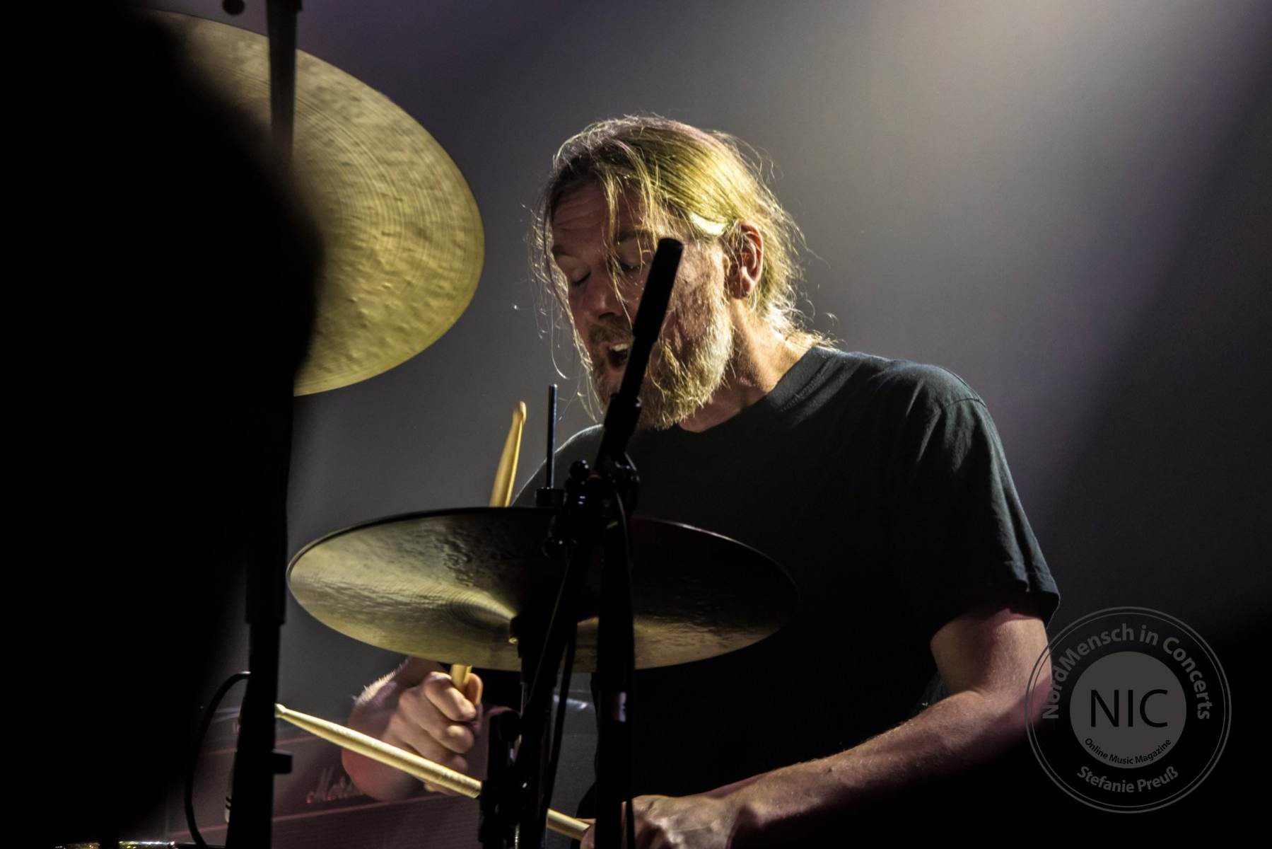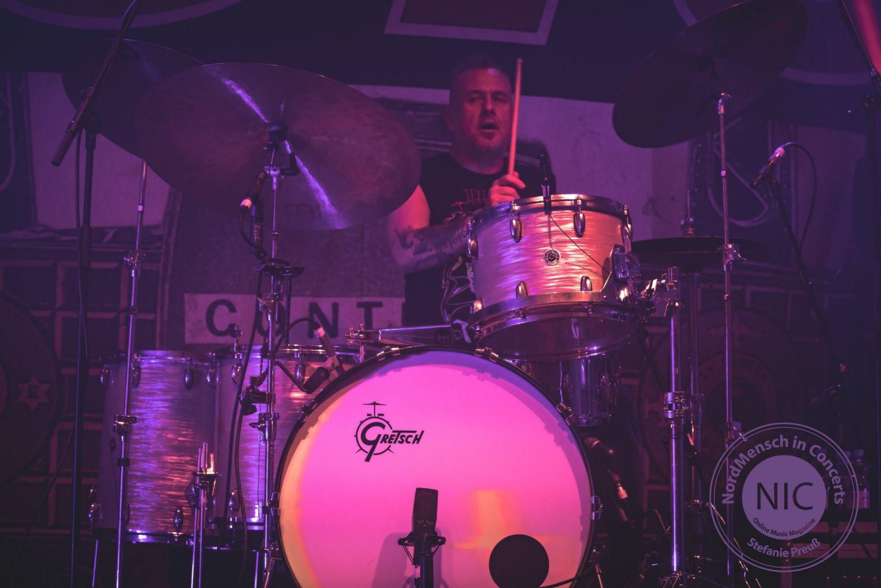 Nach einer Fahrt von Schleswig-Holstein aus, mit kurzen Stop in Hamburg, waren wir zeitig in Bremen und konnten die Location in Bremen-Hemelingen gleich von der Autobahn abfahrend, problemlos erreichen. Ein Parkplatz war auch schnell gefunden und mit einem kurzen Fußweg von gut drei Minuten, erreichten wir die Venue. Von außen eher unscheinbar, aber von innen wirklich genial. 1920 wurden diese Räumlichkeiten als Kino genutzt, heutzutage größtenteils als Diskothek oder eben ab und zu für Konzerte. Alles wirklich sehr gemütlich dort, Servicepersonal und Security hilfsbereit und freundlich. Wir fühlten uns sauwohl, der Abend konnte starten!