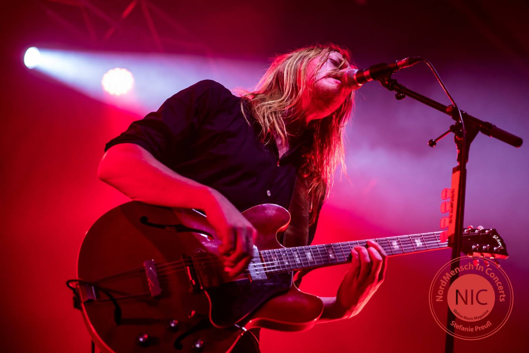 Stage-Time für die zweite Band aus Schweden. Auf die Ohren gab es nun Hardrock und Psychedelic von GRAVEYARD. Kollege Christian hatte die Band bereits live gesehen (oftmals frage ich mich ehrlich gesagt, welche Band er noch nicht live gesehen hat), ich zuvor noch nicht. Auch hier war rot die prägende Bühnenfarbe und auch genebelt wurde wieder ordentlich. Erstaunlich war der Altersdurchschnitt an diesem Abend, der deutlich zwischen 20-30 Jahren lag. Nun gut, wir fanden das erfreulich, so ist in diesem Genre für Nachwuchs gesorgt. GRAVEYARD präsentierten uns Songs, wie z.B. „The Siren“, „Thin Line“, „Uncomfortably Numb“ oder aber „Satan’s Finest“, wobei die beiden letzten Nummern die Highlights des Abends aus unserer Sicht darstellten. Stimmlich begeisterte an diesem Abend, Sänger Joakim Nillson, unwahrscheinlich. Was er zum Ende hin noch aus seiner Stimme herausholte, war der Wahnsinn. Stellenweise erinnerte es an Robert Plant (zu seinen besseren Zeiten). GRAVEYARD waren wirklich beeindruckend und für mich persönlich gerne noch einmal – irgendwann, irgendwo.