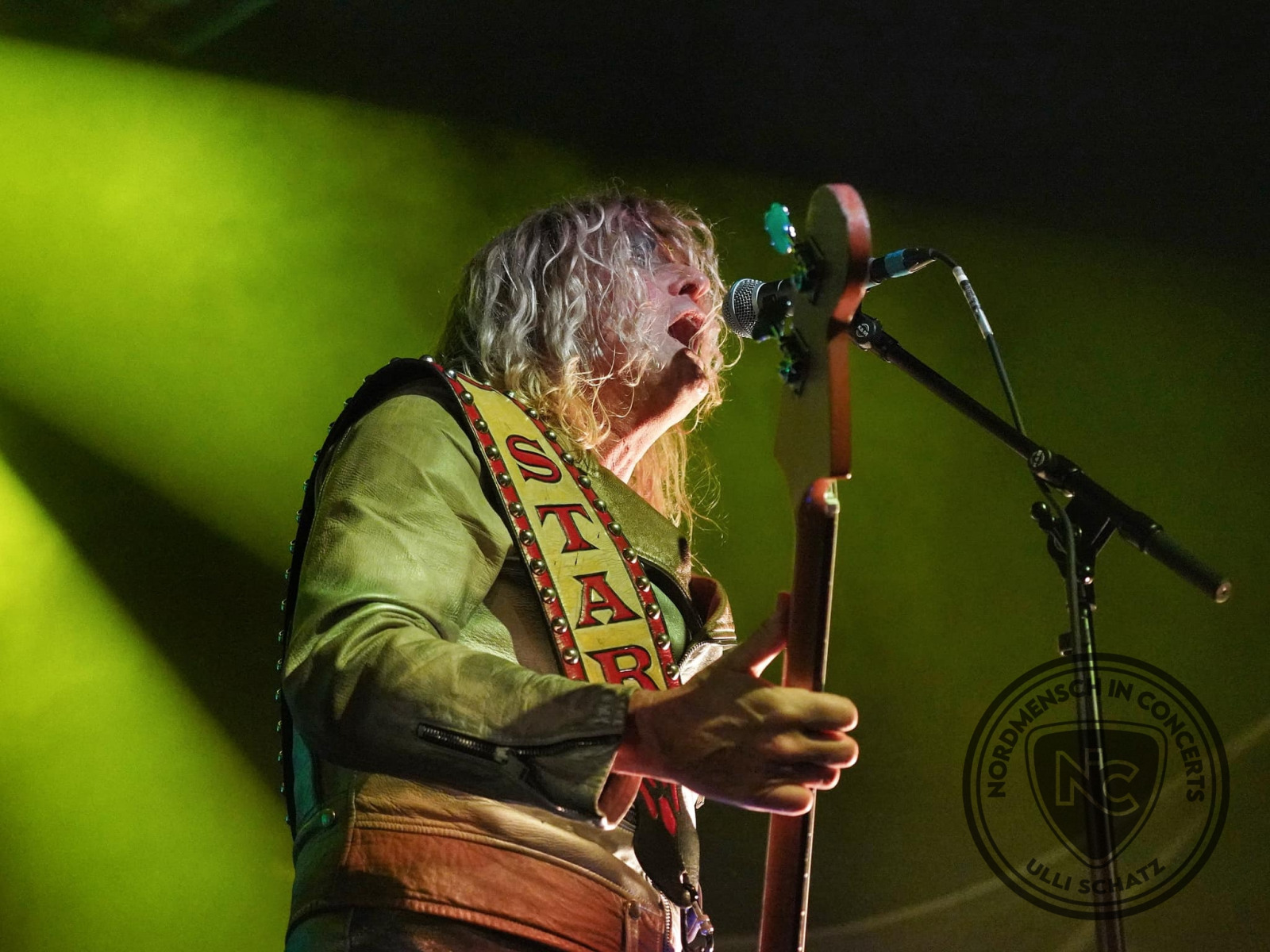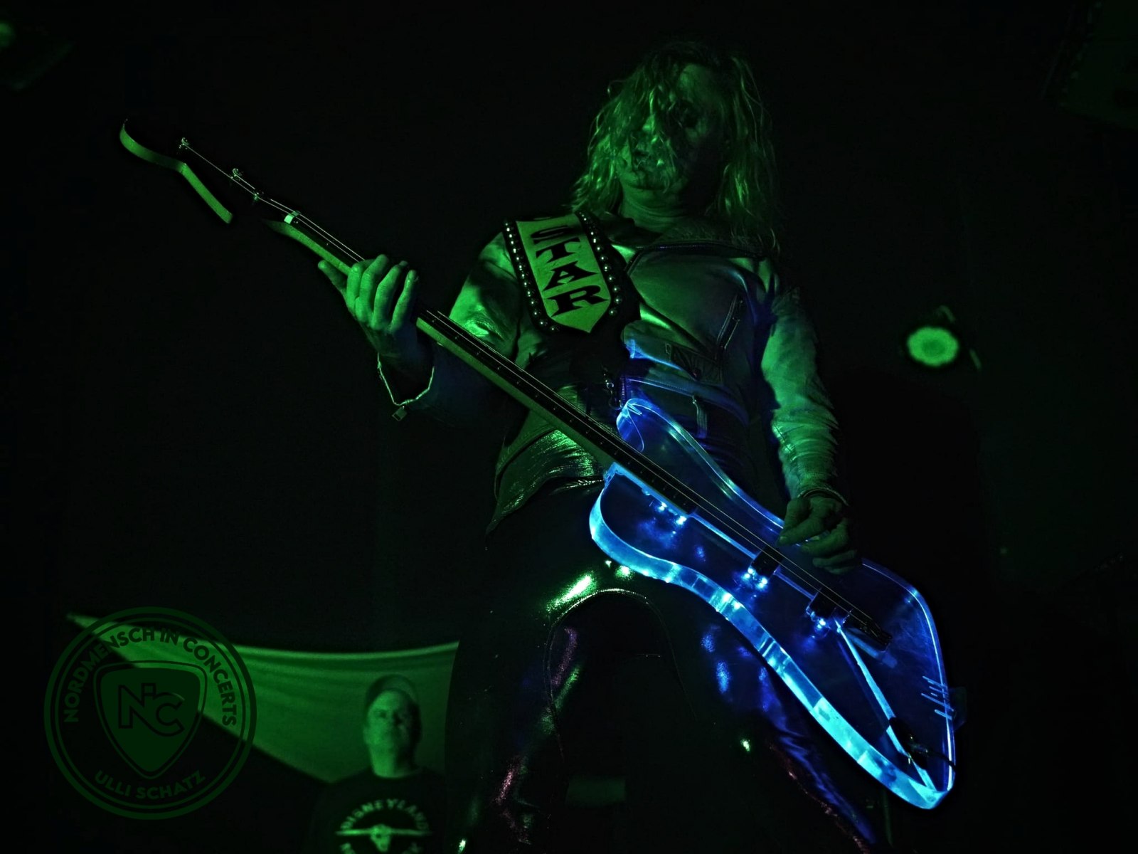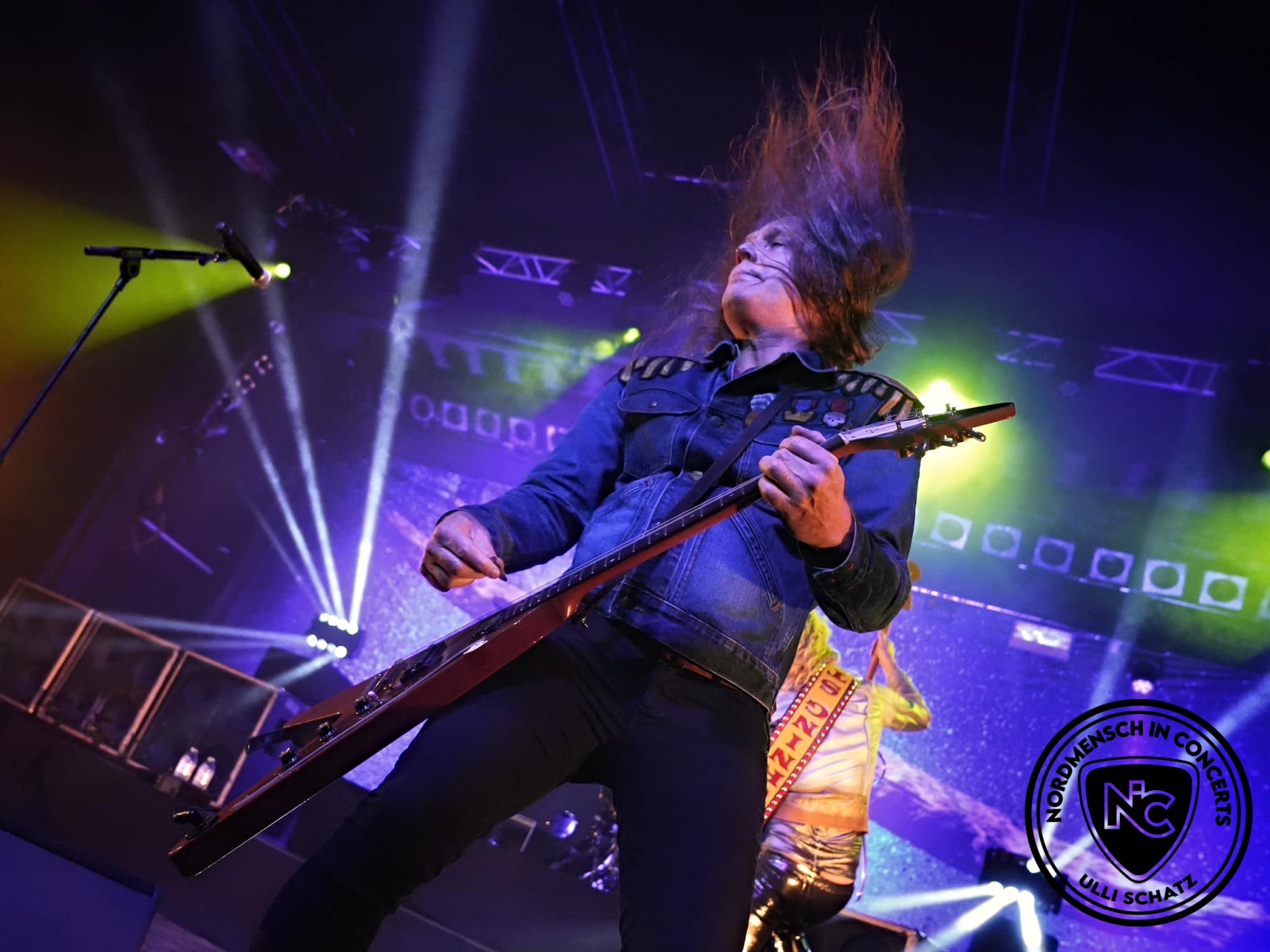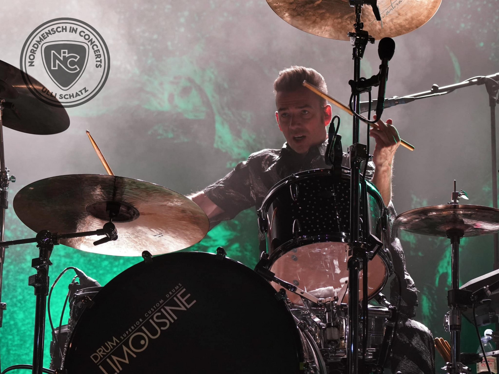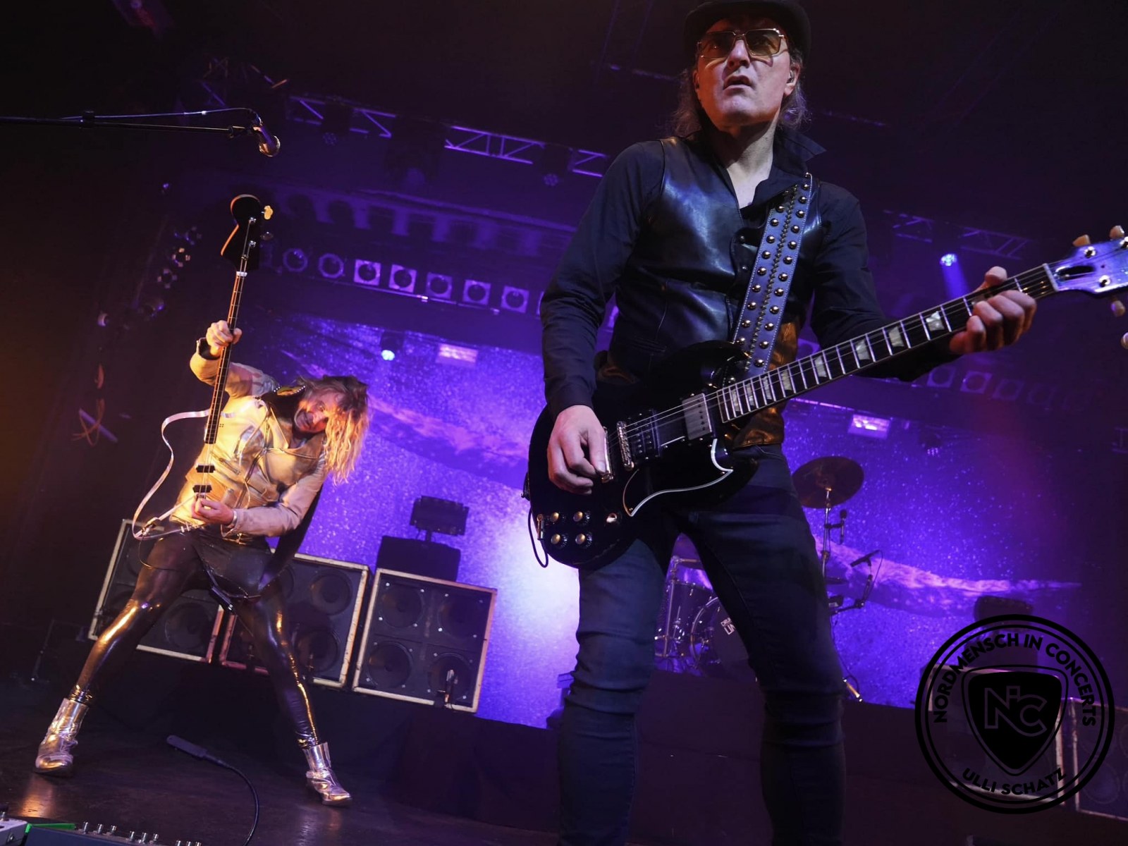 Um 21 Uhr beginnt der Auftritt von D-A-D. Die Venue ist bis zum Anschlag voll, denn ein Sold Out war zu verzeichnen. Wer ausverkaufte Konzertabende im Docks kennt, weiß sehr wohl, wie „gefüllt“ es dann ist. Umfallen kannste auf jeden Fall schon einmal nicht. Das erwartungsgemäß altehrwürdige Rockpublikum, massenweise in Band-Merchandise gehüllt, geht von Anfang an mit der Band zusammen ab. Über die Setlist muss man bei D-A-D nicht viel sagen. Alle Klassiker, gespickt mit Songs des neuen Albums, werden in den zur Verfügung stehenden zwei Stunden in amtlicher Lautstärke und Dynamik ins feiernde Publikum geballert. Das hält Frontmann und Ulknudel Jesper Binzer jedoch nicht davon ab, die durchgeschwitzte Besucher-Menge doch tatsächlich als „Dienstags-Publikum“ zu bezeichnen, wo er doch lieber ein „Samstags-Publikum“ gehabt hätte. Das Hamburger Publikum lacht sich schlapp über diesen Gag. Genau diese Zwischenmomente und kleinen Kalauer machen Konzerte von D-A-D im Zusammenspiel mi geilstem Rocksound so besonders. Was der gemeine Besucher an diesem Abend ebenfalls erfuhr, war, dass Schlagzeugmaschine Laust Sonne nur von LIEBE angetrieben spielen kann! Also wurde ihm extra ein kleiner Song gewidmet, der ihn regelrecht mit Hamburger Liebe zu erdrücken schien, was sich aber durchaus positiv auf sein weiteres Spiel auswirkte. Klappt also: Immer Liebe für den Laust!Nach einer Spielzeit von zwei Stunden mit 19 Songs inklusive vierer Zugaben, beenden die rockenden „danske naboer“ ihren letzten Tourabend in der Hansestadt.