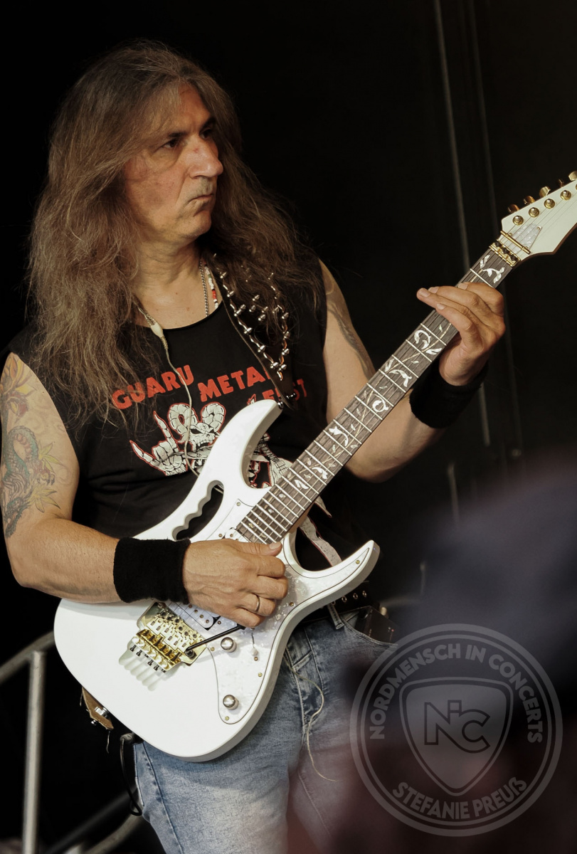 Im Jahre 1990 von Gitarrist Martin Christian Wöbcke gegründet, zieren 12 Alben die Diskografie der Hamburger Power Metal Band und im kommenden Jahr schreibt man bereits 35 Jahre Bandgeschichte. Die Felle bearbeitet nun Jason Wöbcke und an der zweiten Gitarre haben wir aktuell Jan Bertram. Alte Bekannte sind dann wiederum Andreas Babuschkin am Mikrofon, Jan Bünning am Bass und Martin Christian Wöbcke (ebenfalls Gitarre). Auch im PARAGON-Hauptquartier steht bereits Album Nr. 13 in den Startlöchern und wird voraussichtlich im späten Herbst diesen Jahres erscheinen. Das heutige Set startet mit „The Legacy“ und endet nach 9 Songs mit „Thunderstorm“. Aber auch des Thrasher´s Lieblingsnummer „Impaler“ findet Platz in der heutigen Setlist.
