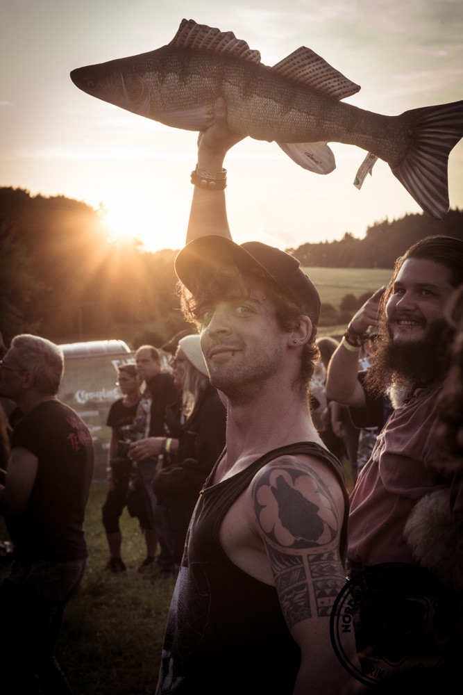 Schon die Anreise mit dem Motorrad gestaltete sich höchst erfreulich, angenehm sommerliche Temperaturen und die wunderbar weite Westerwälder Landschaft lassen’s dann auch gar nicht so schlimm sein, wenn man sich mal ein bisschen verfährt. Auch wenn das Festival mit einer Warm-Up-Party schon am Donnerstagabend begann, schaffte ich es wegen leidlicher Dinge wie Broterwerb leider erst am Freitagabend nach Urbach, und bis das Zelt stand, hatte ich dann auch grade Soulshifter verpasst – was ich vom Zeltplatz aus mitbekommen habe, klang aber schon recht mächtig! Bis die nächste Band anfängt, schlenderte ich ein wenig über das Festivalgelände: Neben „Rolfs Biergarten“ und dem Essensstand nebenan, dem obligatorischen Bierstand, einem Stand für Schnaps, Cocktails und Pälzer Weinschorle(!) und einem Badezuber gab es in diesem Jahr erstmals eine echte Dusche und ein Spielzelt mit Lego Duplo für kleine und große Kinder – Haupsach, Schuh aus!