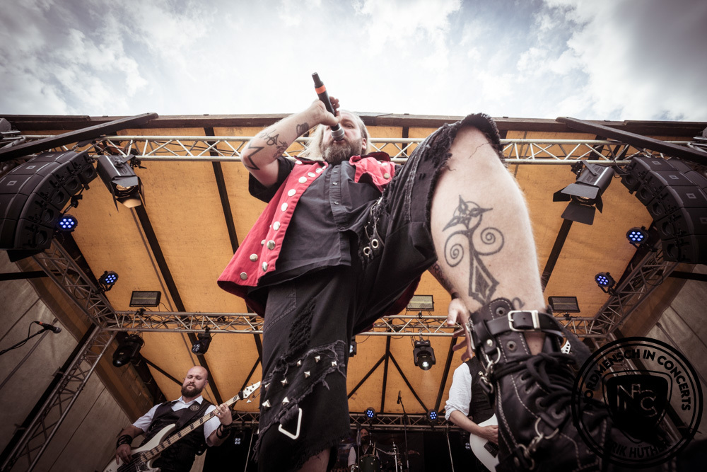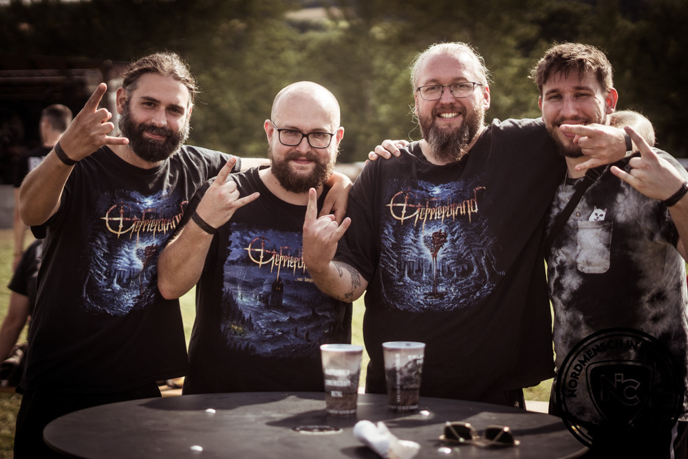 Großes Rätselraten im Vorfeld über die musikalische Ausrichtung der nächsten Band: Machen Gefrierbrand Punk, Neue Deutsche Härte oder doch was ganz anderes? Während ich mein Geld auf „Rammstein für Arme“ gesetzt hätte, gewonnen hätte keiner: Positiv überraschend fabrizierten die Mannen aus dem Schwarzwald ein ziemlich ordentliches Black Metal-Brett ab, das ich irgendwo zwischen Finntroll, frühen Dimmu Borgir und Immortal verorten würde. Thematisch geht es im weiteren Sinne um Märchen, was auch die Aufmachung mit altertümlichen Westen, Hosenträgern und Hemden erklären dürfte.