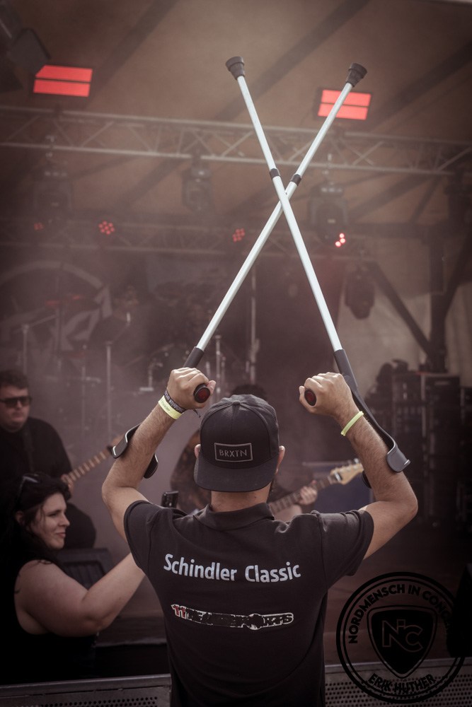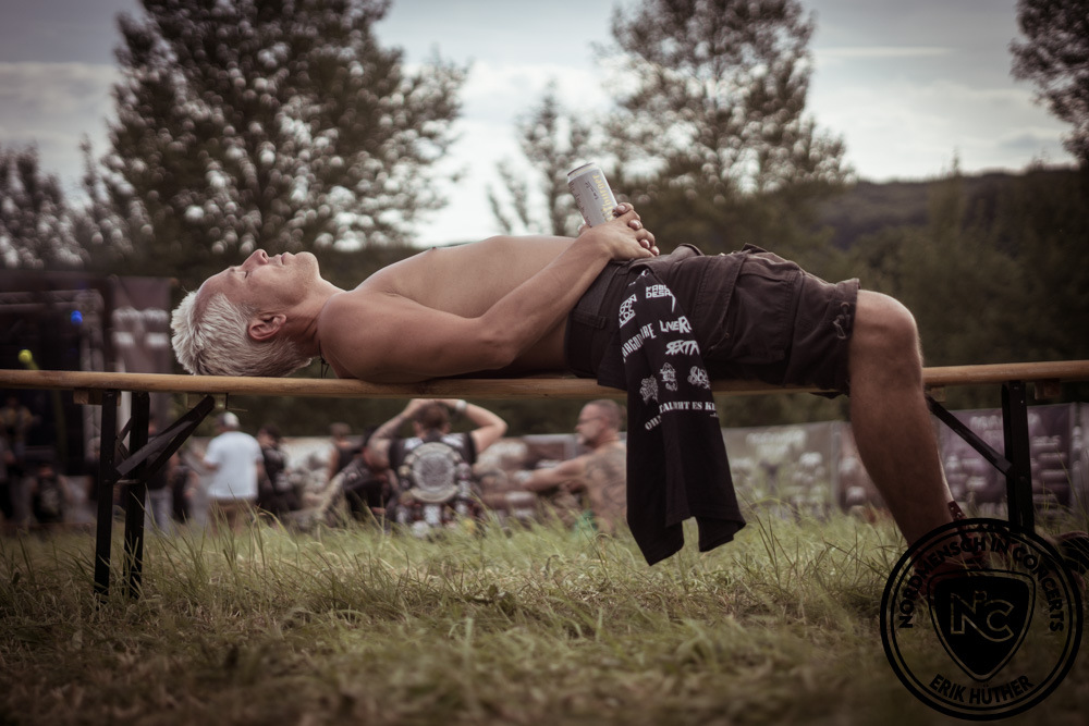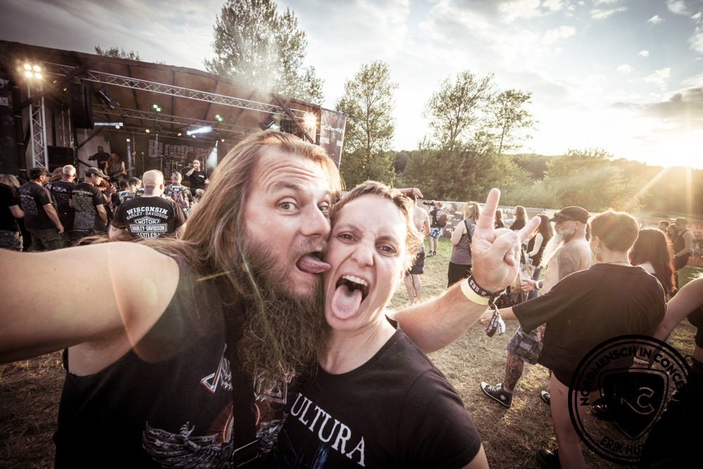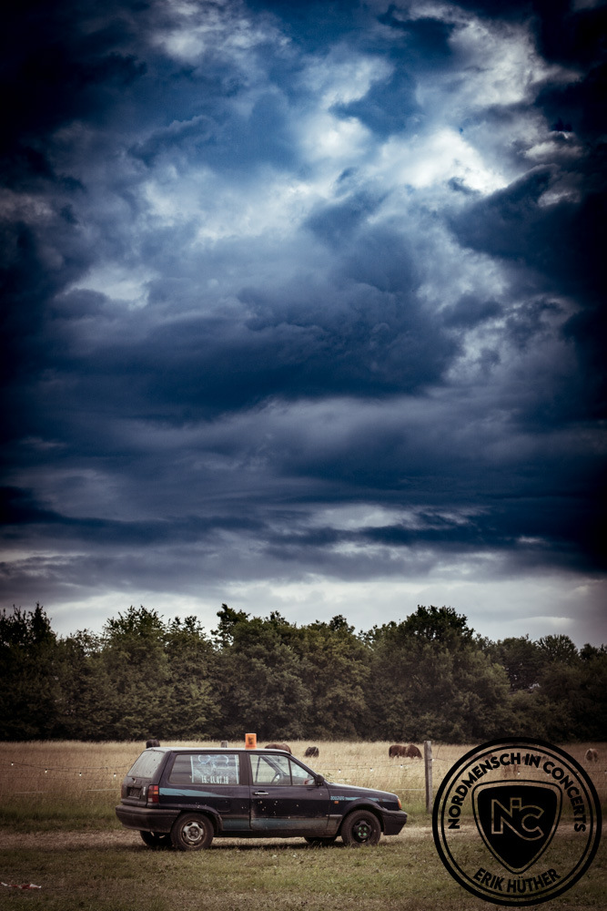 Gut erholt und nach einer erstaunlich ruhigen Nacht ausgeschlafen ging es erstmal Duschen, doch statt ins nahegelegene Schwimmbad (Eintritt: 2 Euro) zu gehen, nahm ich das Angebot einer Freundin an, bei ihr zuhause zu duschen. Dass im Westerwald „ich wohne um’s Eck“ eine halbe Stunde Autofahrt pro Richtung bedeutet, hatte ich nicht bedacht, und so kam es, dass ich die Stoner Rocker Organic Destruction ebenso verpasste wie die Hardrocker Soulstrike, hatte aber immerhin noch mit dem Bassisten der erstgenannten einen sehr netten Schnack über Photoapperate, Perfektionismus und Produktionsabläufe.