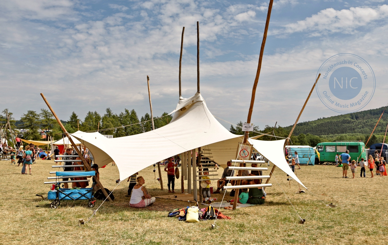 Doch kommen wir zur allgegenwärtigen Musik. Viele Besucher haben ihre Instrumente mitgebracht und so finden schon in der Neuen Heimat (Campingarea) zahlreiche kleinere Sessions statt. Auch die Freak City bietet diverse Open Stages oder spontane Konzerte wie zum Beispiel am Pizzastand.