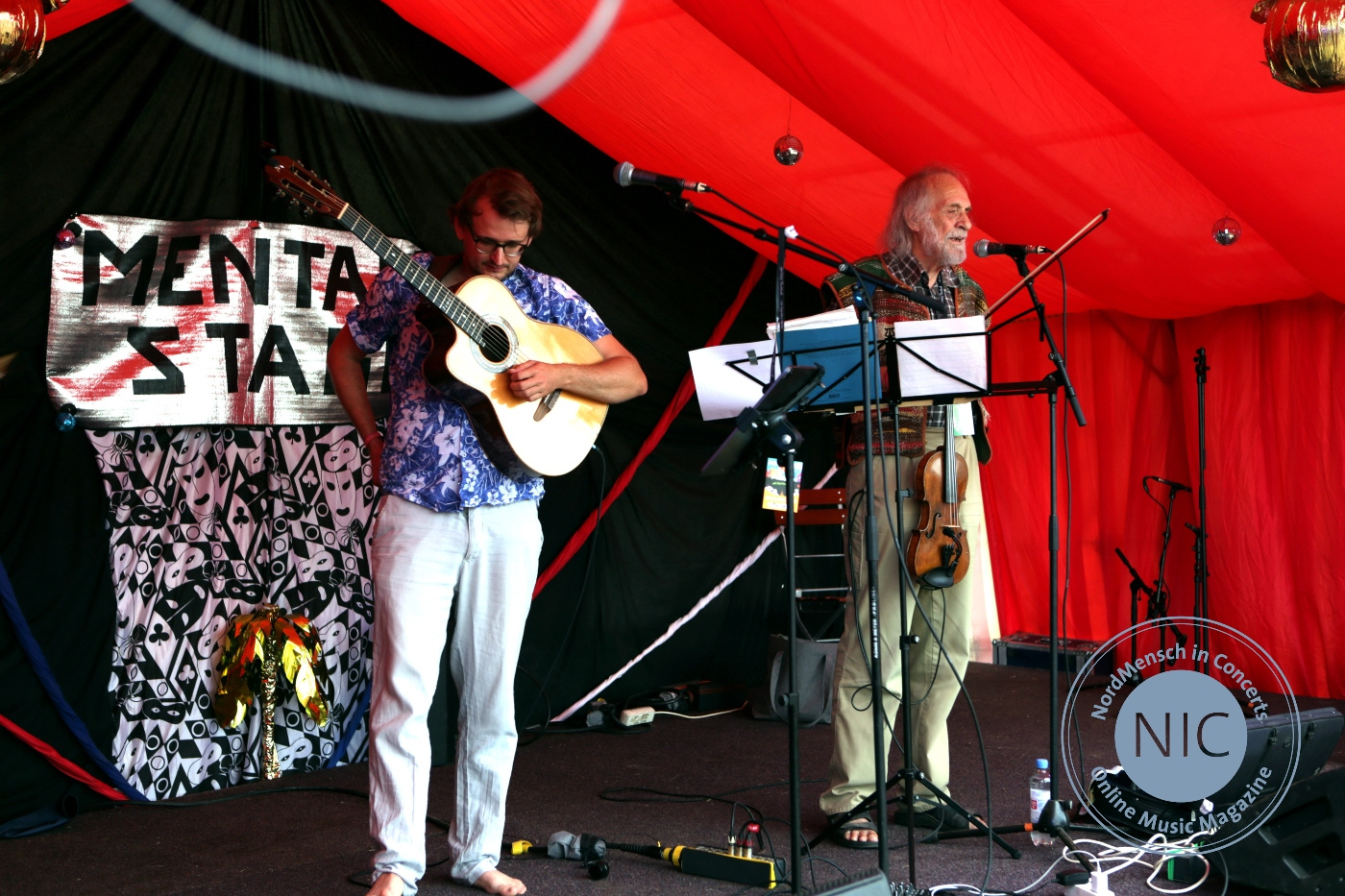 Neben dem bereits erwähnten Lesezelt befindet sich in unmittelbarer Nähe die Mental-Stage. Überwiegend spielen hier noch recht unbekannte Bands, wie z. B. die Bloodflowers, My Little White Rabbit, Romie, Bölter und viele weitere spannende Entdeckungen, aber auch ein Urgestein, der unkaputtbare Klaus der Geiger, hat hier dieses Jahr seinen Platz gefunden. Wieder einmal erweist er sich als aufmerksamer Beobachter, der besonders die Lockdownbestimmungen mit der einhergehenden Bedrohung der Kulturszene scharfzüngig musikalisch kommentiert.