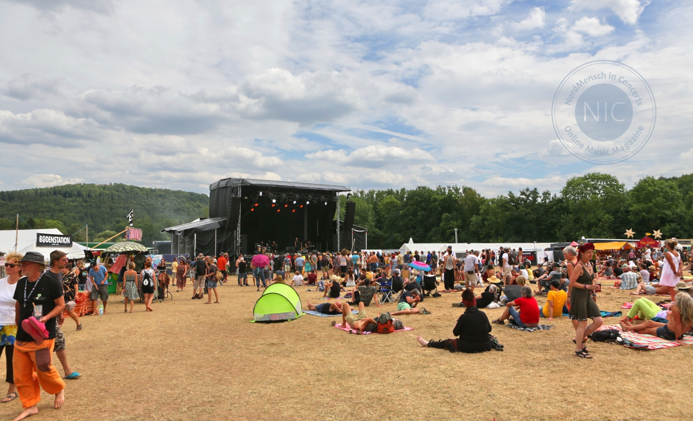 Richtig voll vor der Bühne wird es dann anschließend bei Bukahara. Sie entpuppen sich langsam als Haus- und Hofband für das Hippiefestival. Dabei repräsentieren sie besser als kaum eine andere Band die Vielfalt, für welche das Festival steht, stammen die Musiker doch aus so verschiedenen Kulturkreisen wie Palästina, Deutschland, der Schweiz und Tunesien. Zwei noch unveröffentlichte Songs werden genauso abgefeiert, wie der deren ultimativer Live-Höhepunkt „Eyes white shut“. Vor ihrer Lebensfreude hatte wohl selbst Petrus Respekt, endet doch kurz vor Bukahara´s Auftritt der dreistündige Regenschauer. Siena Root beschließen danach mit ihrem Retrosound einen tollen zweiten Festivaltag.