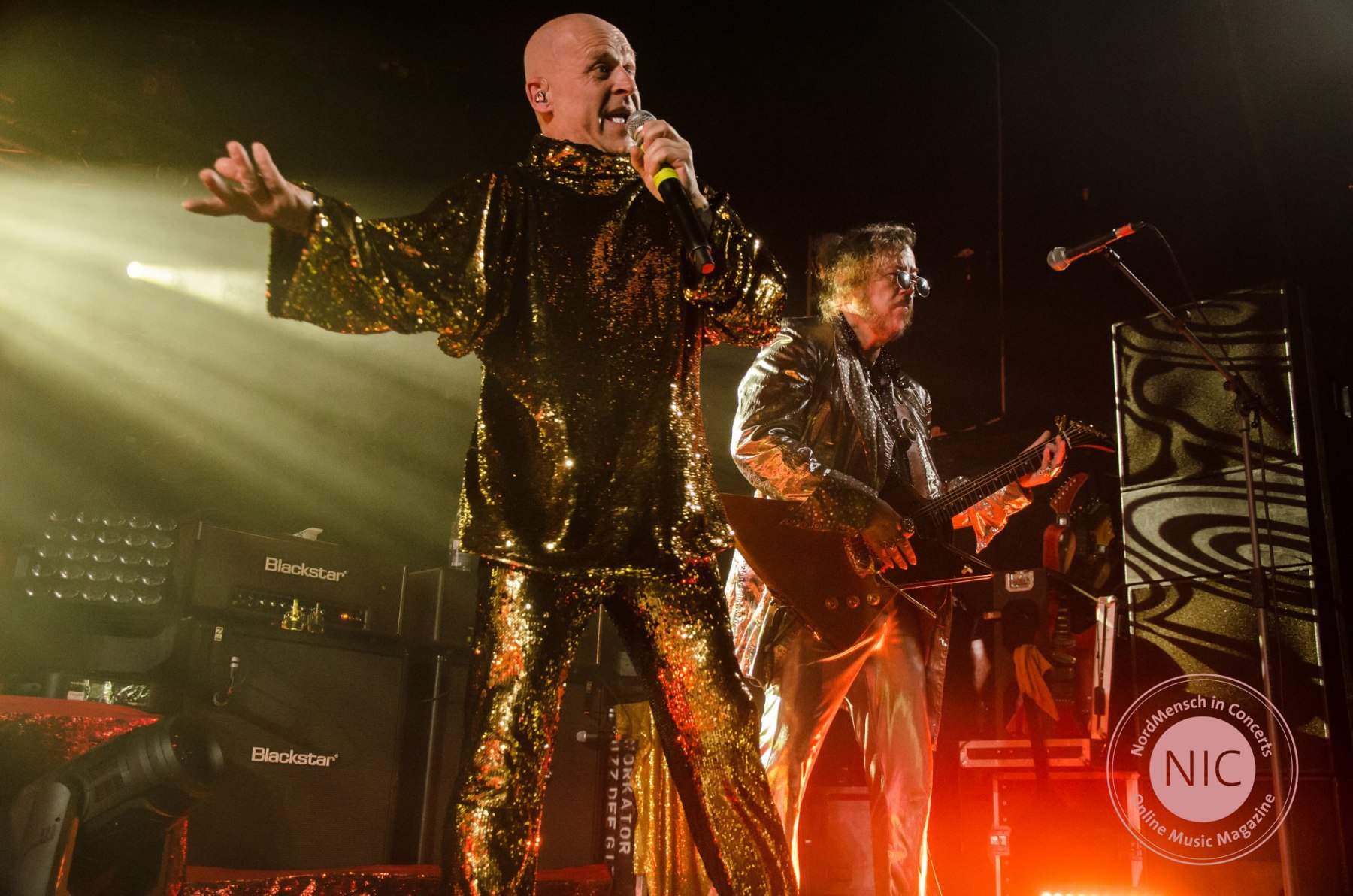 Nun kam als Nächstes aber etwas, was man sich in aller Ruhe mehrfach zu Gemüte führen könnte: Eine Coverversion des Discoklassikers “Ring my Bell‘ von ANITA WARD. Welch eine Offenbarung. Man kann von dem Discosound ja halten, was man will, aber diese Interpretation, in der Stumpen seine Stimme derartig gut präsentiert, dass man glatt denken könnte, Anita selbst stünde höchstpersönlich auf der Bühne, ist einfach großartig. Das anschließende ACE OF BASE – Cover „All that she wants“ kennt man bereits, gefällt aber von Mal zu Mal besser. Alf und Stumpen geben als Frontmaker einmal wieder alles und auch dem Rest der Band merkt man den Spaß an diesem Abend sichtlich an. Nach weiteren, sowohl neueren als auch altbekannten Stücken, wie z.B. „Hardcore“, „Krieg“ und das abschließende „Rette sich wer kann“ ist das Konzert der „Meisten Band der Welt“ so einfach zu Ende, wie es begann. Ein zufriedenes Publikum, ob nun mit Bauchschmerzen vom Lachen her oder mit Nackenschmerzen vom Headbangen, feiert die Band noch eine ganze Weile nach und hier und da hört man Stimmen, die sich auf das nächste Konzert von KNORKATOR freuen.