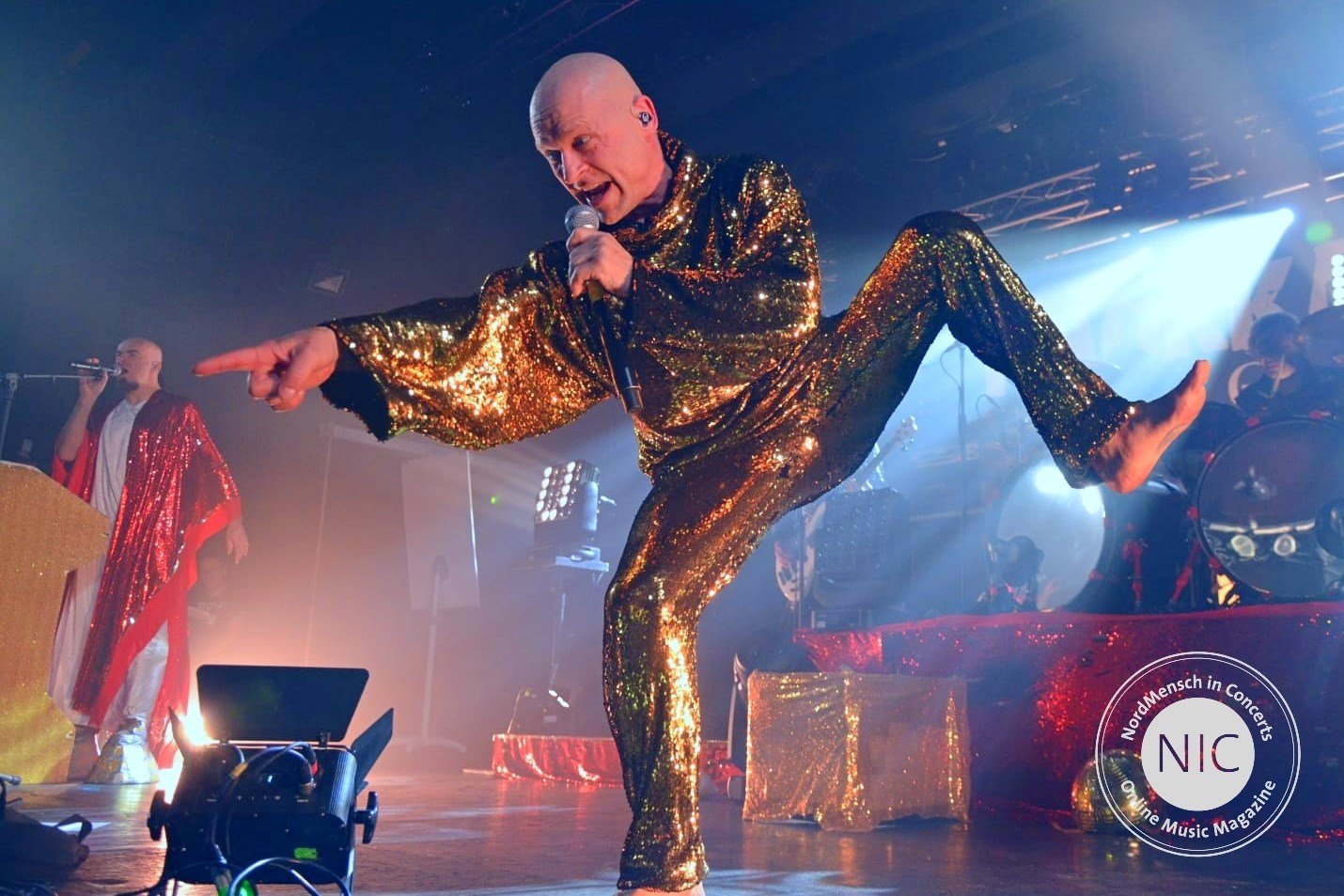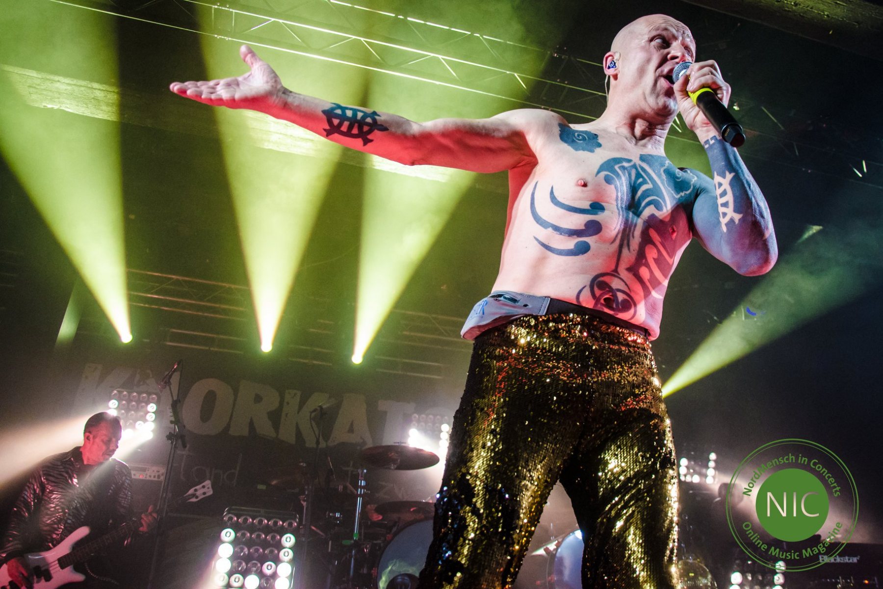 Ohne Vorband geht es sofort mit der „Absolution“ verhältnismäßig ruhig los. Der Tanzfaktor wird aber mit der folgenden Nummer „Du nich“ sofort auf Maximum gestellt. Es folgt ein Feuerwerk an Hits. Von „Am Arsch“, „Alter Mann“ und „Buchstabe“, aufgepeppt mit vielen kleinen Anekdoten zwischendurch, vielsinnigen Ansagen und Klamauk erster Güte, geht es durch das Programm. Dies alles in eine Show gepackt, das schaffen in der heutigen Musiklandschaft eigentlich nur KNORKATOR.