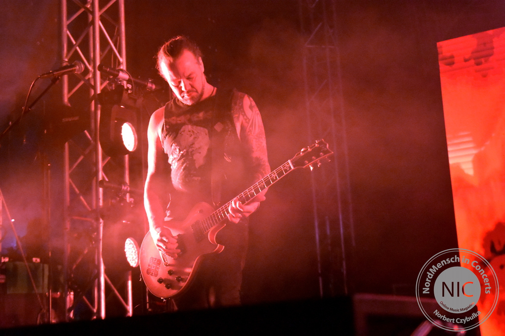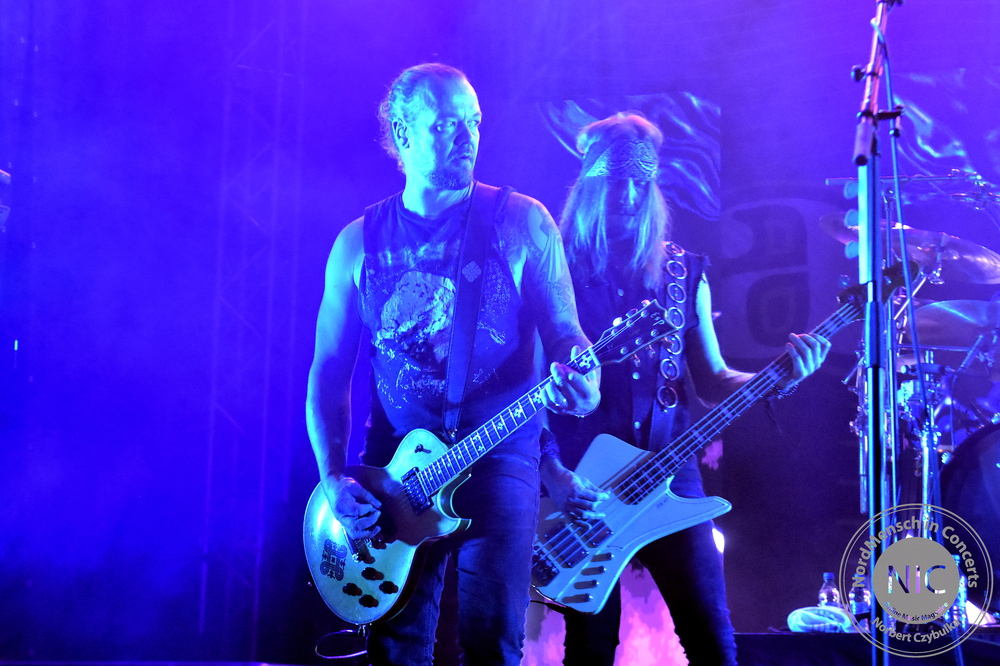 Es ist halt wie auf jedem Festival: Man kann nicht alles haben. Nächster Programmpunkt ist im Baltic Ballroom Wind Rose. Die italienische Power-Metal-Band aus Pisa verarbeitet in ihren Texten die Werke von J.R.R. Tolkien. Hört sich schräg an, ist aber wirklich gut gemacht. Es gibt Bands, die mag man oder eben nicht. Genau so ergeht es vielen bei der nächsten Band im Zelt. Phil Cambell, der Ex-Motörhead-Gitarrist, ist mit seiner Family-Band zu Gast. Heute steht jedenfalls nicht ihr eigenes Zeug aus der Setlist, sondern ein Abend voller Coversongs. Hauptanteil natürlich die Songs des verstorbenen Frontmanns Lemmy Kilmister. „The Bastard Sons play Motörhead“ stand im Programm, und das tun