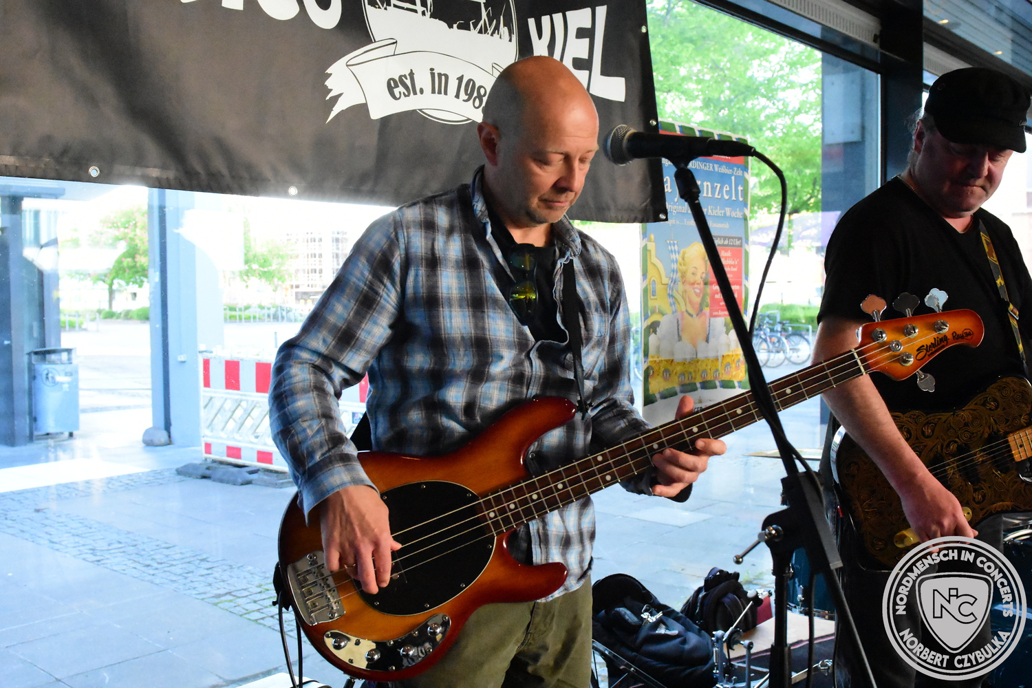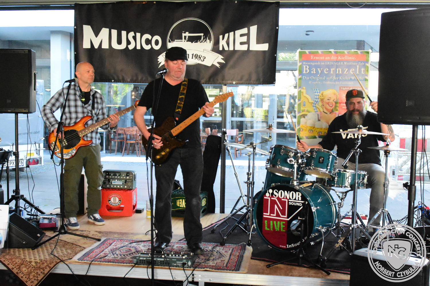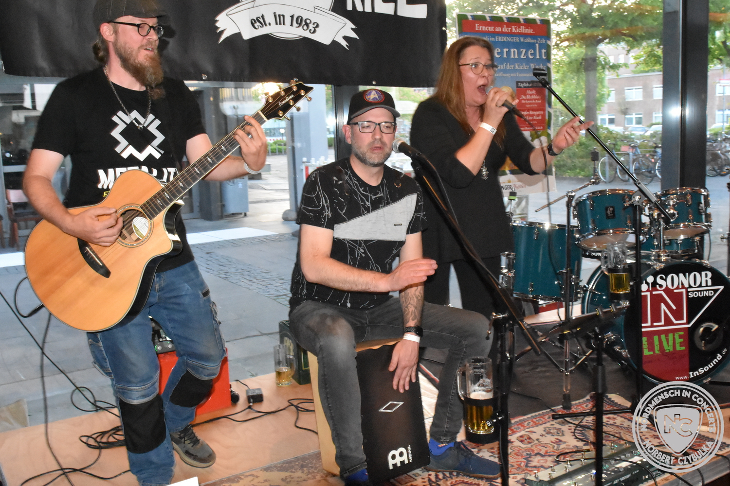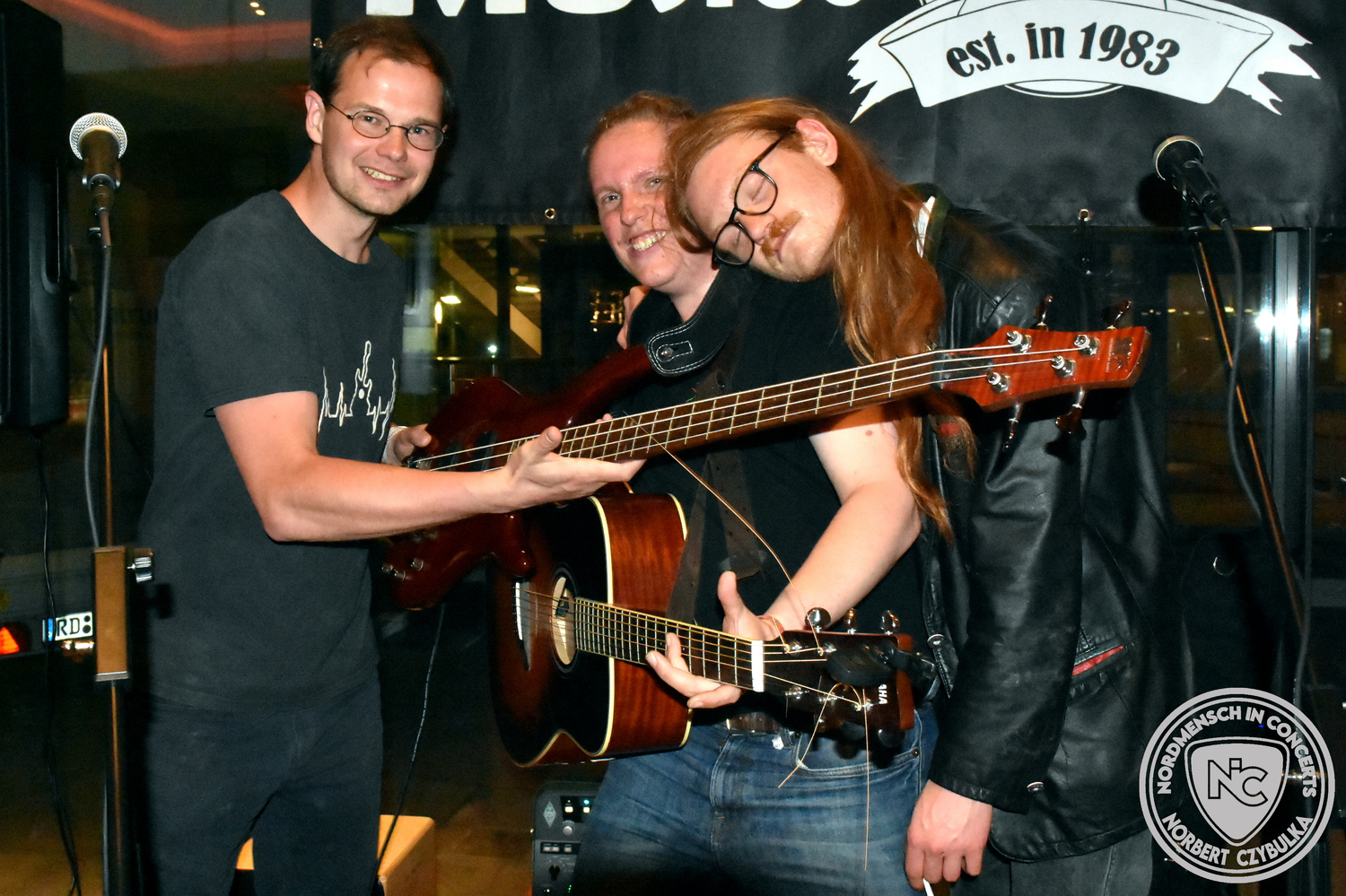 Den Anfang machten The Jones´s. Das Rock-Cover-Trio entstand vor vier Monaten aus Zufall. Bei einem Konzert der Acoustic Guerillas in der Kieler Innenstadt nutzen Ritchie und Ritchie, die als Gäste anwesend waren, die Setpause, um sich die Instrumente zu schnappen und zwei Titel zu jammen. Nick setzte sich an seine Drums und stieg mit ein. Die Band war geboren. Erst zwei Stunden vor dem heutigen Auftritt gab es die erste Bandprobe. Trotzdem rissen die drei mit ihren Covern von AC-DC (Back in Black), Temple of the Dog (Hunger Strike), Stone Temple Pilots (Plush) und den Foo Fighters (Times Like These) sofort die Gäste von den Sitzen.