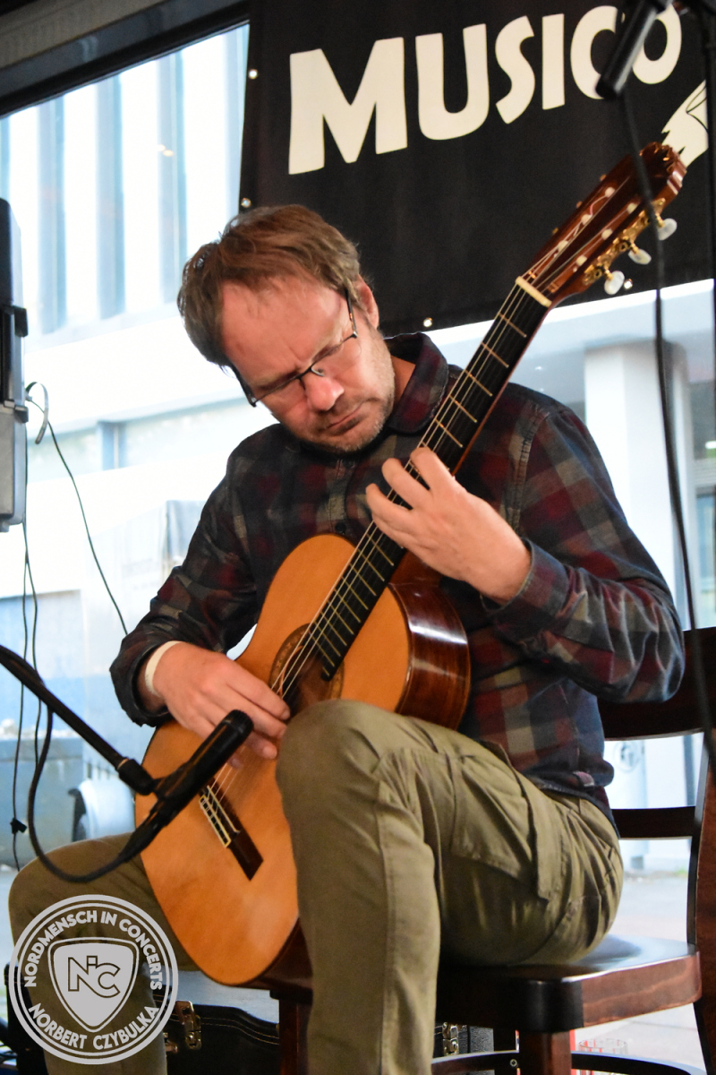 Deutlich ruhiger war der zweite Slot vom Ex-Musico Vorstandsmitglied Arne Langner. Mit seiner Acousticgitarre spielt er spanische Gitarrenmusik von Isaac Albéniz (Asturias). Sein zweiter Song ist ein Metal-Cover, das von einer Dame begleitet wird, die zum allerersten Mal auf einer Bühne steht.