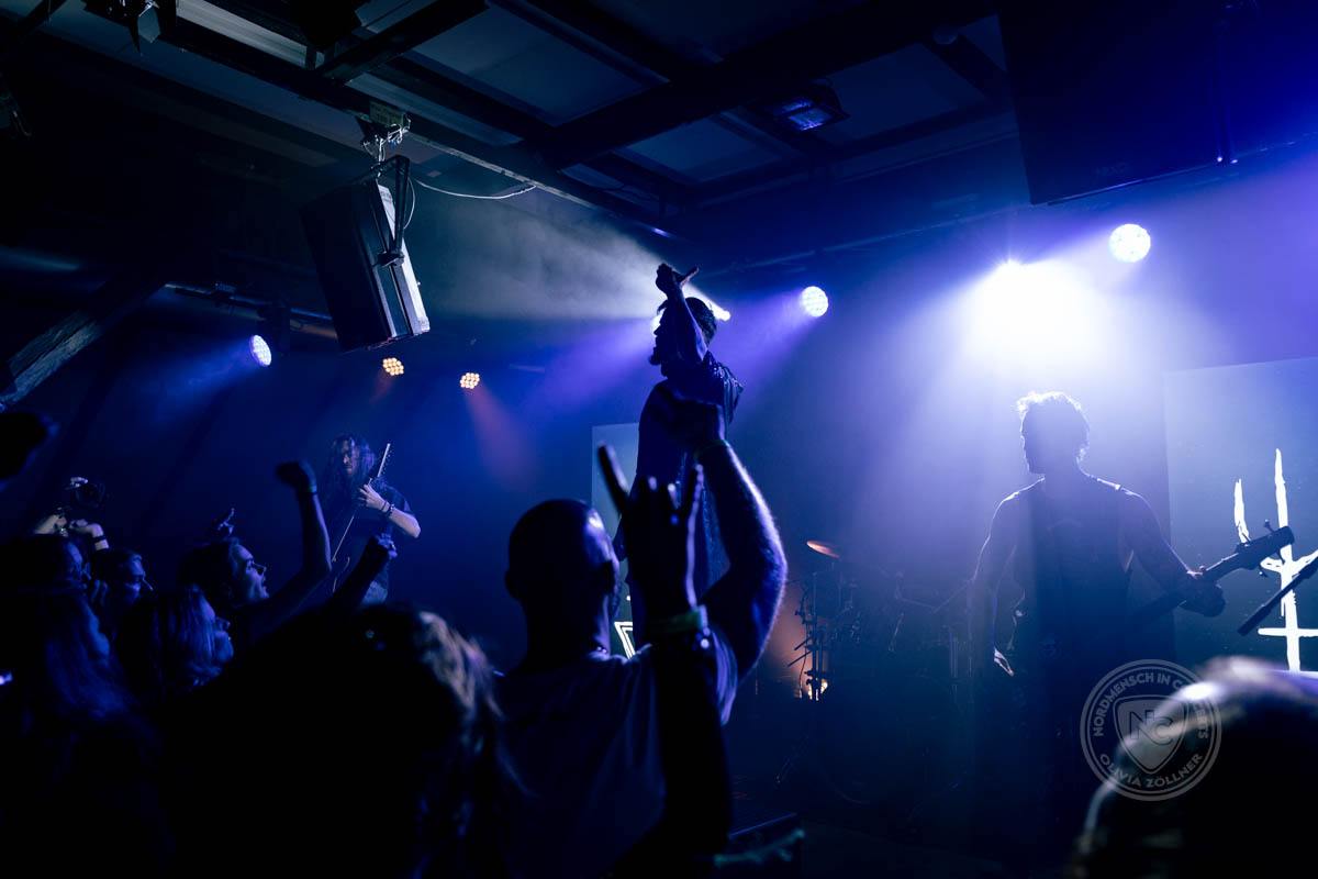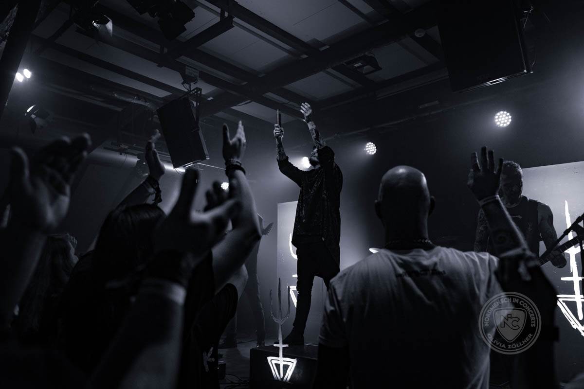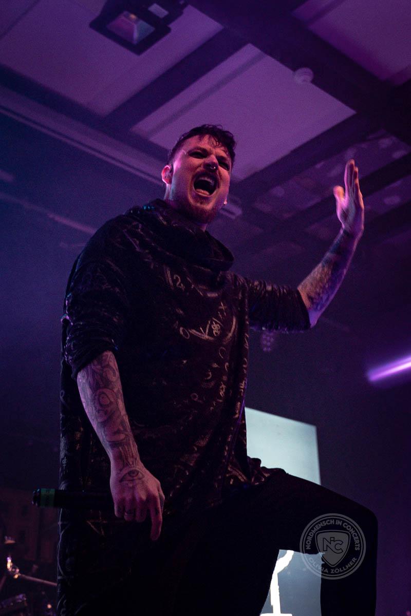 Schließlich endet auch dieser große Spaß und es folgt eine weitere kurze Umbaupause. Es ist zehn vor neun, als schließlich Oceans – der Headliner des Abends – auf die Bühne treten und mit den zwei recht kurzen Songs Parasite und Spit von ihrem aktuellsten Album Happy den Abend eröffnen. Für die Band, die ihren Sound selbst als Nu Death Metal beschreibt, ist es die erste Headline-Tour. Sänger Timo Rotten erklärt, dass die Setlänge ihnen dadurch ermöglicht, auch mal etwas tiefer in der Bandgeschichte zu graben. So finden sich mit Songs wie Into the Void, Hope und Voices etwas ältere Songs in der Setlist, die in der Vergangenheit eher keine Berücksichtigung finden konnten.