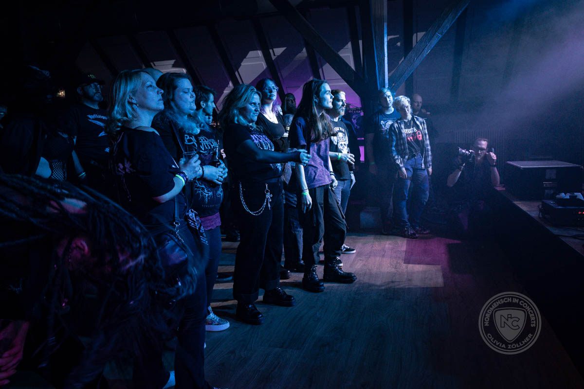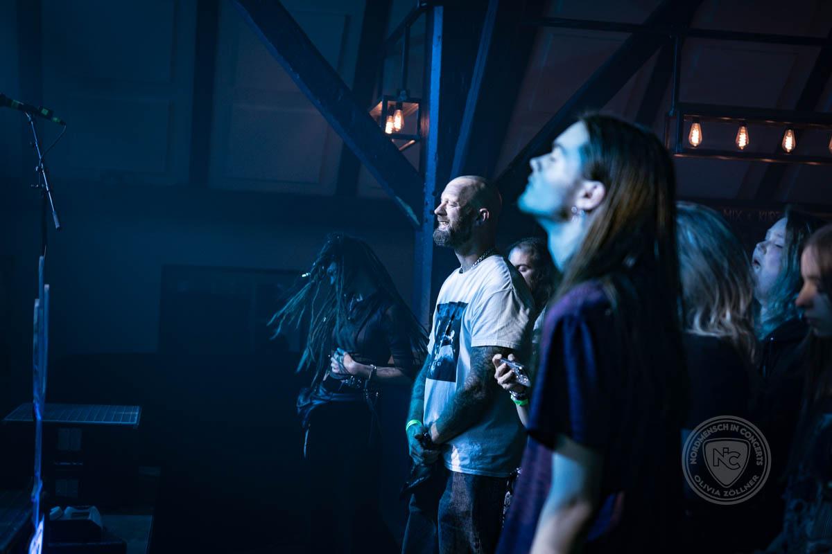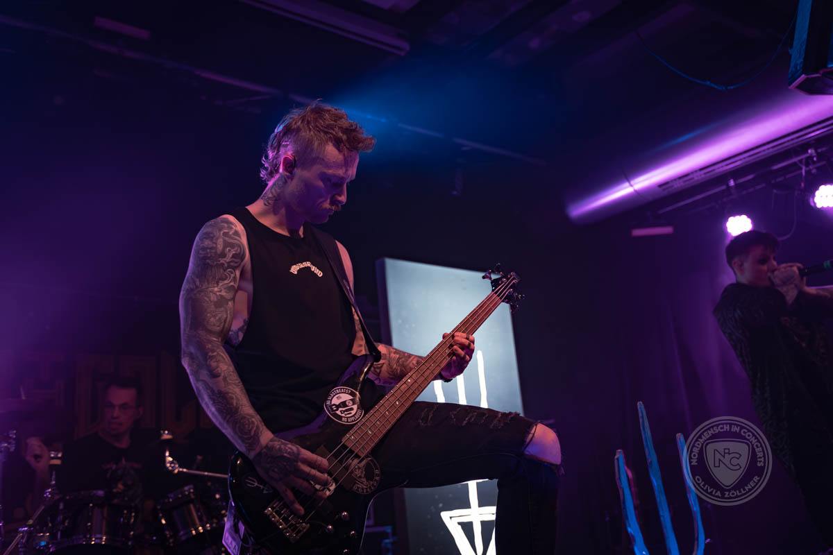 Drei Bands stehen für den Abend auf dem Plan. Den Auftakt machen Sundance, welche ziemlich pünktlich um sieben Uhr vor noch etwas zaghaftem Publikum die Bühne betreten. Die Band aus Ostfriesland ist der lokale Act im Line-Up und wurde erst 2023 gegründet. Während die Anwesenden zu Beginn noch einen höflich-zurückhaltenden Abstand zur Bühne halten, lassen Sundance sich davon nicht wirklich beirren. Von Anfang an geben sie Vollgas und so taut das Publikum mit der Zeit auch langsam aber stetig etwas auf, rückt näher und bewegt sich zur Musik. Mit dabei: der bandeigene Camcorder mit der Bitte, dass dieser doch durch das Publikum wandern möge, um ein paar Live-Eindrücke zu sammeln. Es braucht zwar wirklich einen Moment, aber als Sundance nach etwa einer halben Stunde die Bühne verlassen, sind die Leute, die ihren Weg bis dahin in den Saal gefunden haben, gut aufgewärmt.