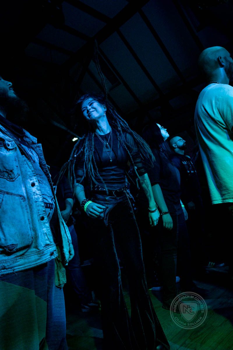 Der schon wieder existente Abstand zwischen Publikum und Bühne wird vonOceans-Vechta-173 Sänger Timo Rotten nicht geduldet und so fordert er dazu auf, den „Fotograben des Abends“ zu überwinden und lieber aufzurücken. Das Publikum kommt dieser Bitte nach und reißt damit auf eine gewisse Art und Weise auch eine imaginäre Mauer ein. Die Musik von Oceans beschäftigt sich viel mit Mental Health Themen, dem Kampf mit Depressionen und Ängsten, aber auch Gesellschaftskritik. „Für uns ist das auch immer ein bisschen Gruppentherapie“, sagt Timo Rotten auf der Bühne und es hat den Eindruck, dass das Publikum dies stellenweise auch so fühlt. Zumindest ermöglicht die Musik der Band es, für einen Abend die eigenen inneren Kämpfe heraus zu schreien und zu tanzen und am Ende irgendwie ein bisschen gereinigt nach Hause zu gehen. Wenn man in einzelne Gesichter schaut – auf und vor der Bühne – hat man den Eindruck, dass es fast jedem im Raum so ergeht. Gerade auch Dauerbrenner wie We Are Not Okay oder The Awakening und auch die neuesten Singles Ghost, Still Not Okay und Atlas passen zu diesem thematischen Rahmen.