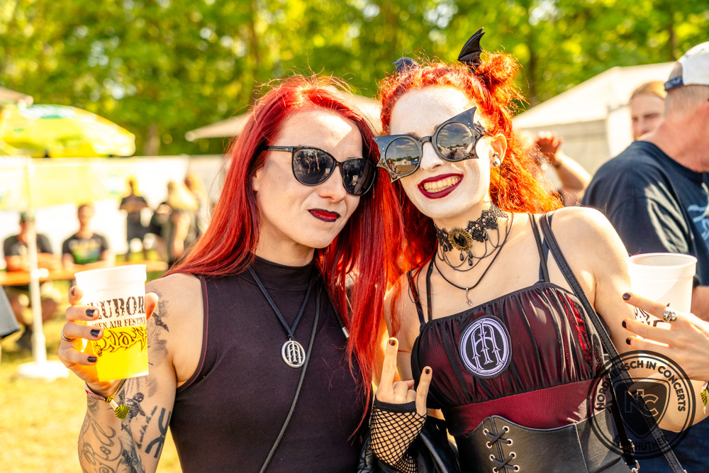 Wie in den Jahren zuvor öffnete das Festival bereits am Donnerstagmittag seine Pforten. Ebenso gibt es an diesem Tag wieder die 2022 eingeführte WarmUp Party mit zwei Coverbands. Für schlappe 10€ können sowohl Festivalbesucher als auch andere Interessierte das Infield ab 18 Uhr erkunden und einen entspannten Abend auf dem Neuborngelände genießen. Bevor es jedoch richtig losgeht, folgt für viele noch ein Abstecher zum Merch, denn dieser wartet in diesem Jahr mit zwei, jeweils auf 222 limitierten, speziell designten Shirts auf und bot den ersten 500 Käufern eine exklusive Powerwolf-Promo-CD als Bonus on top.
