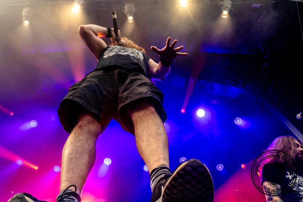 Weiter geht es mit CARCASS, den Headlinern des heutigen Tages. Sie bieten zum Abschluss einen amtlichen Death Metal-Abriss und sorgen über einen Zeitraum von 75 Minuten für fliegende Haarprachten und bangende Köpfe. Sie beschließen somit einen weiteren tollen Festivaltag und die NOAF Besucher machen sich zufrieden auf den Rückweg zum Campground.