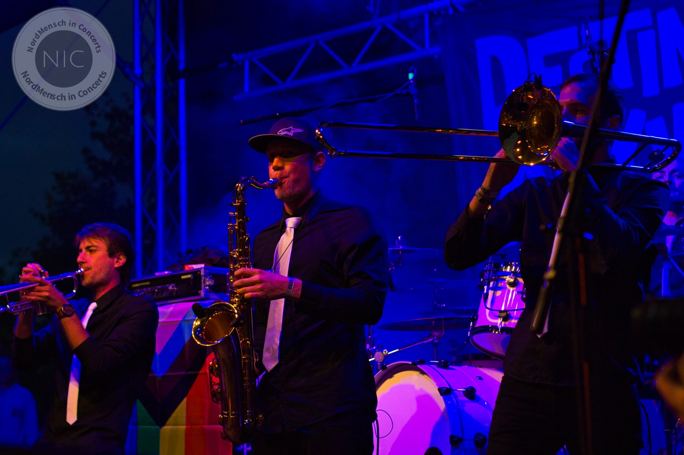 Wir schafften es dennoch rechtzeitig zu unserer ersten geplanten Band des Tages: DESTINATION ANYWHERE. Sie haben quasi schon Tradition auf dem PELL MELL Festival und so wurde in gewohnter Art und Weise wieder einmal kräftig das Tanzbein geschwungen und die Stimmung zum Kochen gebracht. Natürlich gab es auch massig Circle Pits, in denen teilweise gar die Bläser der Truppe einen Platz einnahmen und kurzerhand von hier aus weiter spielten.
