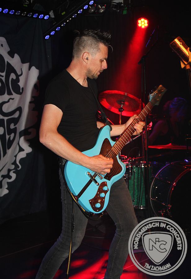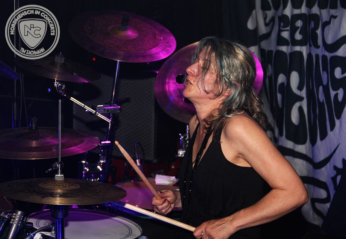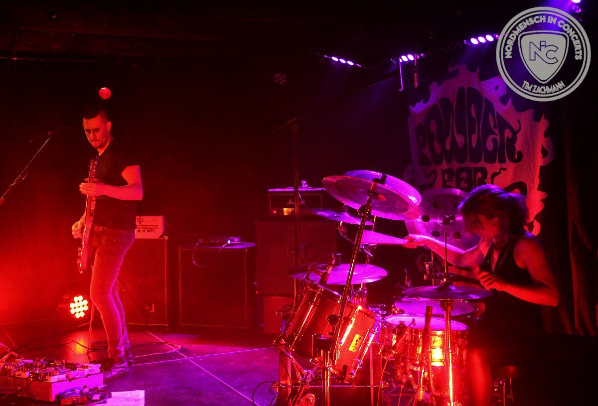 Ohne Vorband legten die beiden etwas verspätet gegen 20.50 Uhr los und hatten für das tanzwütige Publikum inklusive Zugaben 20 Songs im Koffer. Das war ein intensiver Ritt in die Welt des Stoner-, Psychedelic- und Alternative-Rocks. Zwischendurch ging es auch immer mal wieder in den Space-Rock über und Rhys und Meike hatten nebst stampfenden Metalpassagen auch wilden Hardcorepunk für die Hafenstadt dabei. Die Vollblutmusiker schafften es, den Laden zu zweit zum Kochen zu bringen, Rhys mit effektvoll-sphärischen und verspielten Riffs und einem Gesang, der Bands wie Kyuss, Red Fang oder Helmet in nichts nachsteht. Meike als Power-Drummerin ist ein absolutes Arbeitstier und transportierte eine unglaubliche Energie in die Reihen. Dieses bodenständige Duo ist ein absoluter Garant für explosive Live-Sets. Nutzt die Chance, wenn sie bei Euch in der Nähe sind!
