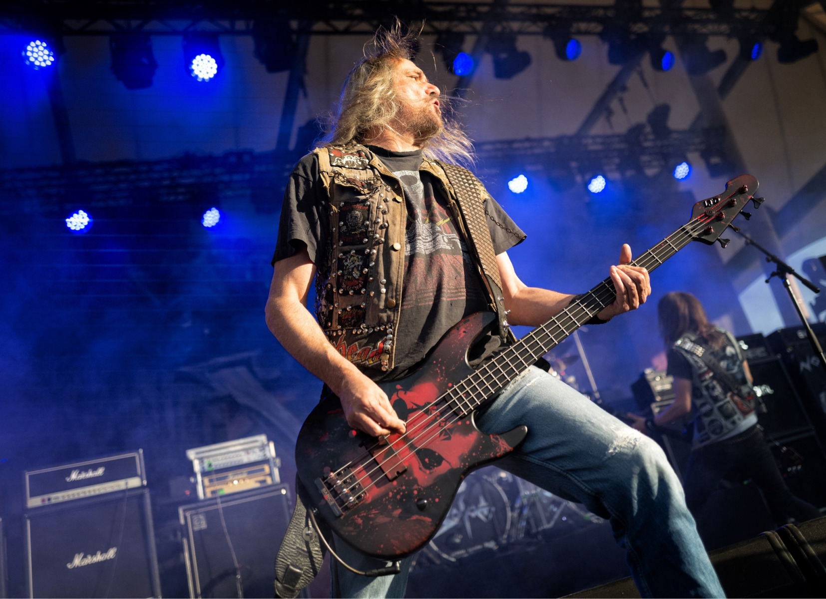 TESTAMENT stehen heute auf der Bühne als Headliner – jedoch ohne ihren Lead-Gitarristen Alex Skolnick, der aufgrund eines familiären Notfalls nicht an der aktuellen Tour teilnehmen kann. Für den Rest der Tour wurde VIO-LENCE-Gitarrist Phil Demmel als Ersatz aus den USA eingeflogen. Wie schon bei ihrem Auftritt im Jahre 2014 beim Rockhard Festival, gibt es auch bei diesem Auftritt erhebliche Soundprobleme. Anfangs war kaum etwas zu hören, die Fans schrien „lauter, lauter …“. Später waren Schlagzeug und Gitarre zu laut und übertönten alles. Erst nach dem sechsten Song bekommt man den Sound in den Griff. Die Setlist war gut gewählt, die Band in Bestform, aber was nützt es, wenn der Fan die Hits nicht hören kann oder Chuck’s Stimme nicht in die Gehörgänge kriecht. Dann „thrasht“ es halt nicht vernünftig. Schade!