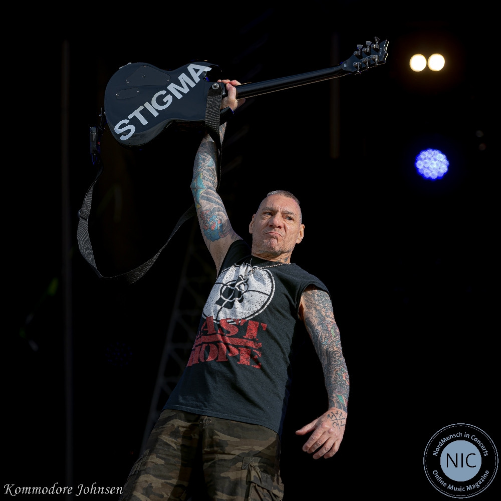 Nach der Absage von SUICIDAL TENDENCIES in Ende Mai sind nun die Hardcore-Punker AGNOSTIC FRONT neu im Billing. Seit Gründung in 1982 ist Gitarrist Vinnie Stigma dabei und auch Shouter Roger Miret brüllt, nach überstandener Krebserkrankung, wieder nach Pain und Terror. Die hämmernden Grooves und Aufforderungen von Roger zu Circle Pits bringen weiter mächtig Bewegung aufs Feld und es staubt ordentlich.