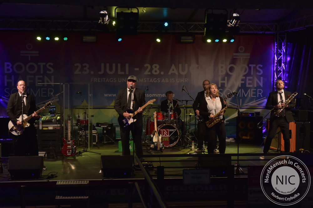 Im November 1991 beschlossen einige mutige Kieler: Wir machen Ska! Inzwischen gehören die Plastic Skanksters mit zu den ältesten, am Stück existierenden Ska-Bands in Deutschland. Pausen oder Splits gab es nicht. Die Bühne füllt sich mit neun Leuten und machen dann ordentlich Dampf. Spätestens jetzt wird klar, warum der Veranstalter immer wieder auf das Corona-Auflagen bestimmende Tanzverbot hinweist. Zu den überwiegend eigenen Werken gesellt sich auch ein Klassiker. „Buona sera“ in einer Art, wie sie noch keiner vergleichbar gebracht hat. Ihre Art Ska hat eine leichte Affinität zu Punk aber auch ein Einschlag von Schlagern ist nicht von der Hand zu weisen. Die Band spielt ein Repertoire ihrer bisherigen vier CDs. Natürlich darf aber der Song der aktuellen, gerade erschienen EP „Alt, fett und nutzlos“ nicht fehlen. Hatte die Band bisher noch kein Motto: Mit diesem Titel ist es geboren…