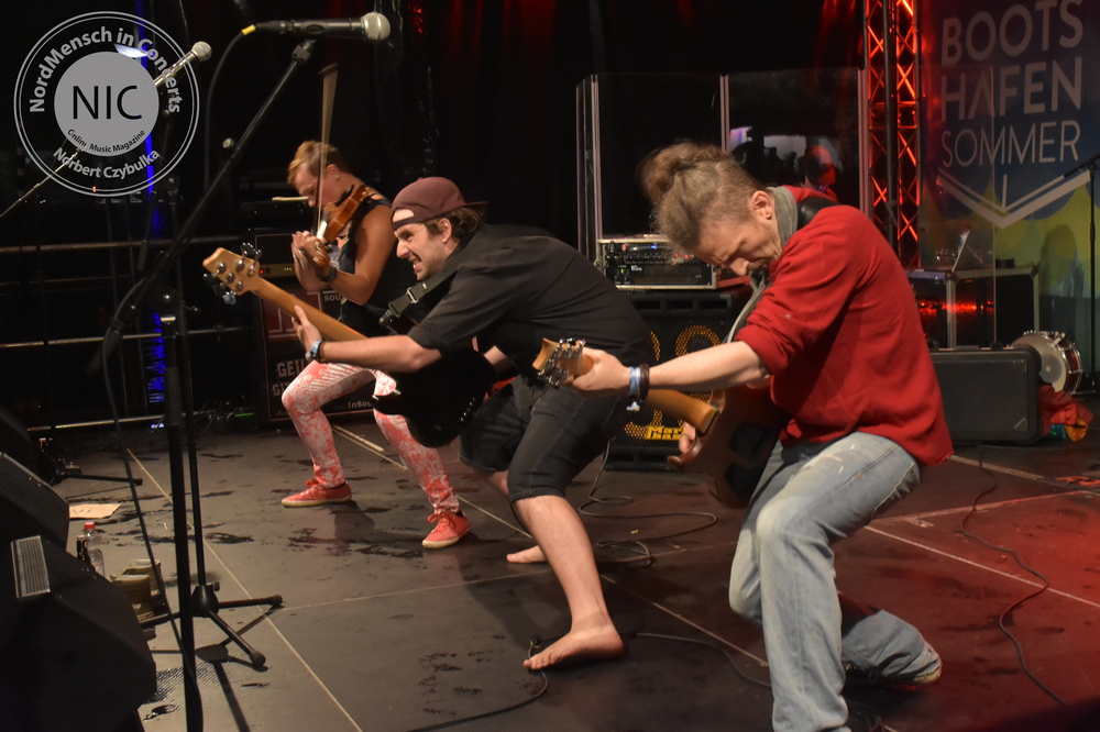 Es ist das sechste und letzte Festivalwochenende. Es ist nordisch frisch, es weht eine steife Briese und Regen ist angekündigt. Zum dritten Mal in diesem Jahr besuche ich nun den Bootshafen. Zuvor sah ich bereits Bands, wie z.B. The Pinpricks, Das Beben, Plastic Skanksters oder aber Surfits. Heute stehen jedoch ganz andere Musikrichtungen auf dem Programm. Aber das ist beim Bootshafensommer ja auch genau so gewollt. Jede Musikrichtung darf sich hier präsentieren. Wie zu erwarten war, führt wieder „Maschine Nitrox“  durch das Programm.