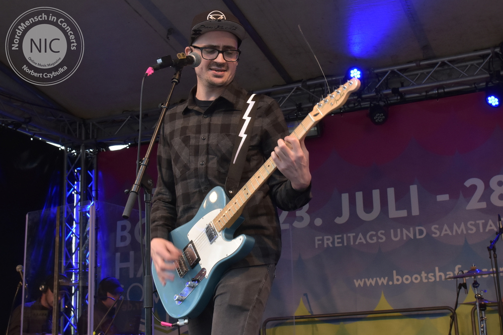 Es ist das sechste und letzte Festivalwochenende. Es ist nordisch frisch, es weht eine steife Briese und Regen ist angekündigt. Zum dritten Mal in diesem Jahr besuche ich nun den Bootshafen. Zuvor sah ich bereits Bands, wie z.B. The Pinpricks, Das Beben, Plastic Skanksters oder aber Surfits. Heute stehen jedoch ganz andere Musikrichtungen auf dem Programm. Aber das ist beim Bootshafensommer ja auch genau so gewollt. Jede Musikrichtung darf sich hier präsentieren. Wie zu erwarten war, führt wieder „Maschine Nitrox“ durch das Programm.