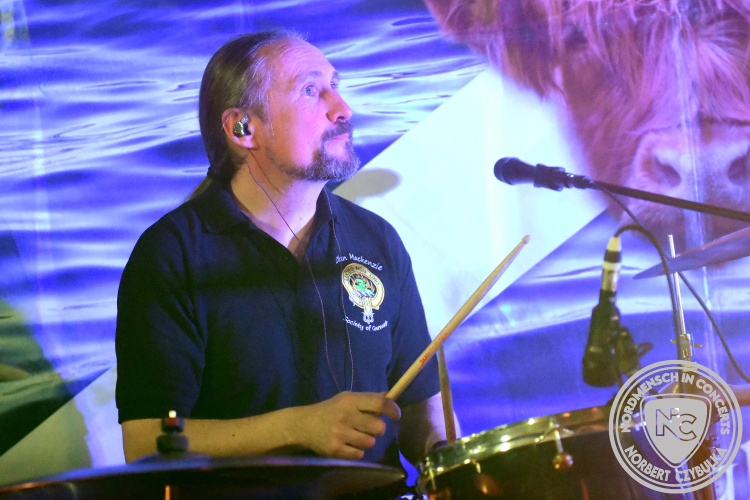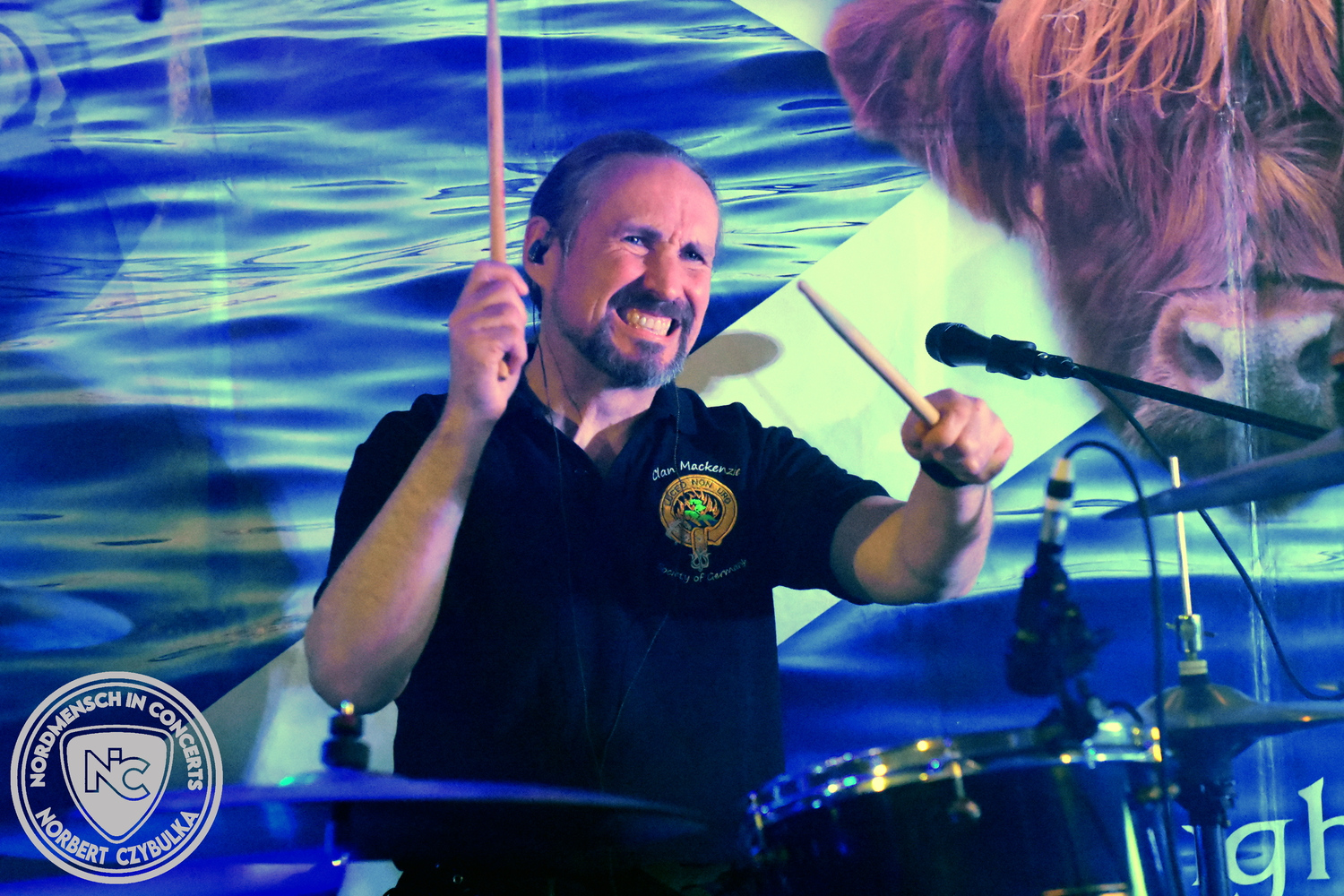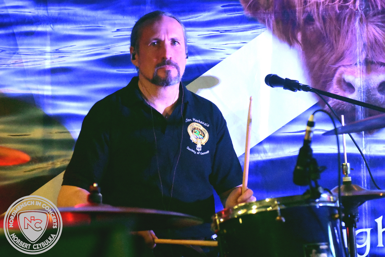 Das zweite musikalische Set nennt sich „The Post-Tscha´s“ und beinhaltet vier Tracks aus dem bis heute gewachsenen Songrepertoire der vier Musiker. Hier stehen natürlich die bekanntesten Songs auf dem Plan. Wenn der Schlagzeuger Falk „McHawk“ Langfeldt Wäscheklammern aus seiner Kilttasche zieht, wissen die Fans schon genau Bescheid. Dann wird der Text auf eine Tom geheftet und er singt zu „Pirates Of The Baltic Sea“. Die nächste Pause bestreiten zwei Herren mit drei Songs. Das Duo nennt sich „Harvey´s Wake“ und ist schon seit „Get Wet“ Zeiten mit der Band verbunden. Sie werden scherzhaft „die einzige Get Wet und Baltic Scots Coverband“ genannt. So bringen sie heute auch zwei Traditionals sowie einen alten „Get Wet“ Titel, der von Keyborder Rolf Seegen geschrieben wurde.