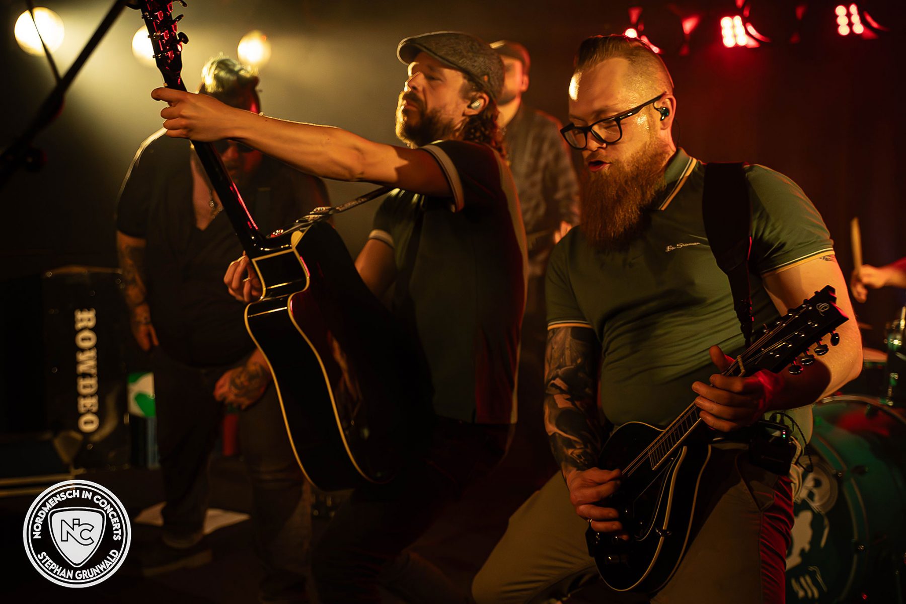 Pünktlich um 20 Uhr geht es los: Mit Coming Home holen die sieben Musiker aus Gevelsberg alle ab, die sie seit 2011 von Kneipenshows bis zu Festivalbühnen begleitet haben. Schnell wird klar, dass hier kaum jemand zufällig gelandet ist: Die Stimmung, die gleich mit dem Opener durch den Saal schwappt, ist die Energie einer eingeschworenen Fanbase. Textsicher und trinkfest wird von der ersten bis zur letzten Reihe gefeiert, eine riesige Flagge weht über die Köpfe und schon nach wenigen Minuten wird es muckelig warm in der Halle.