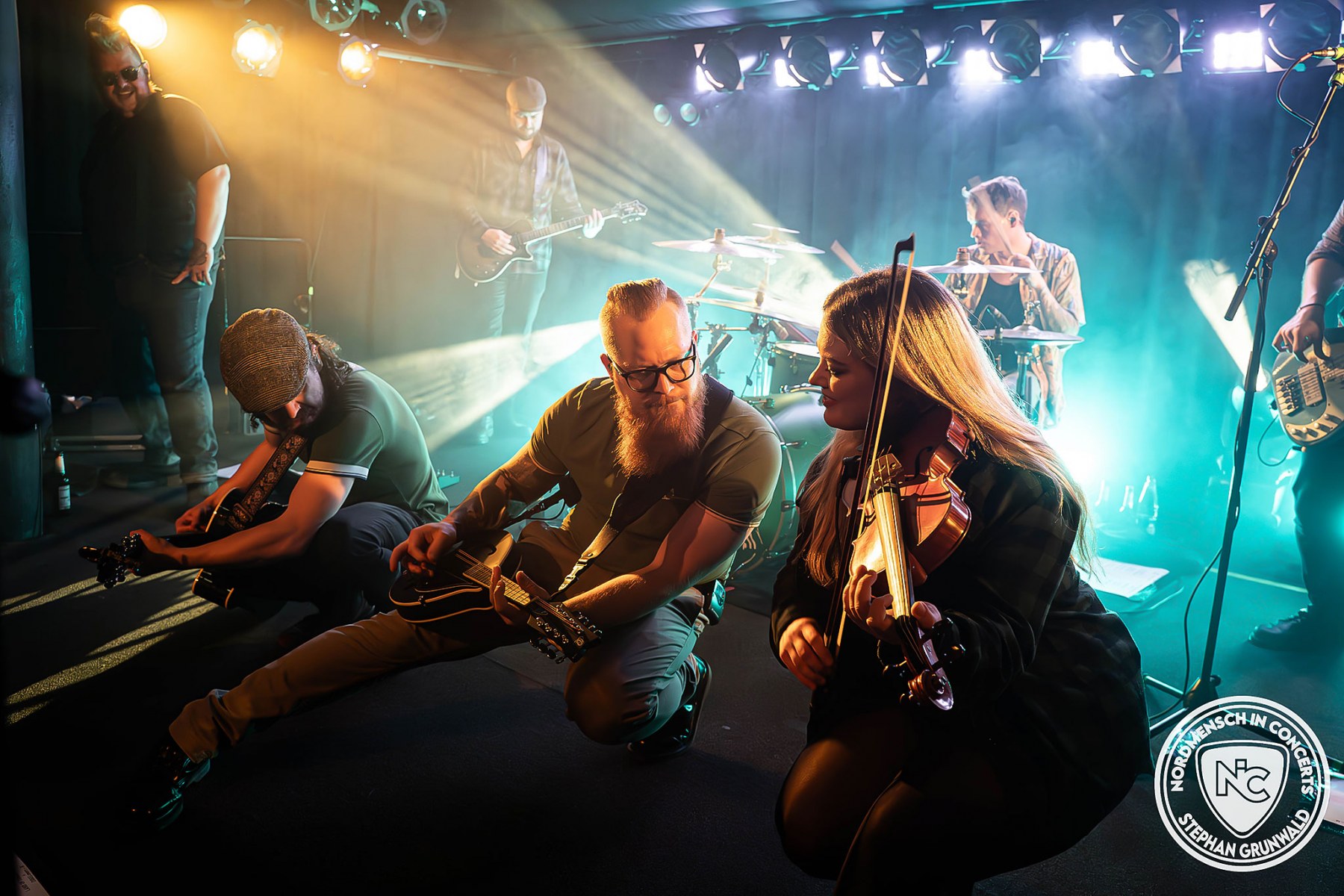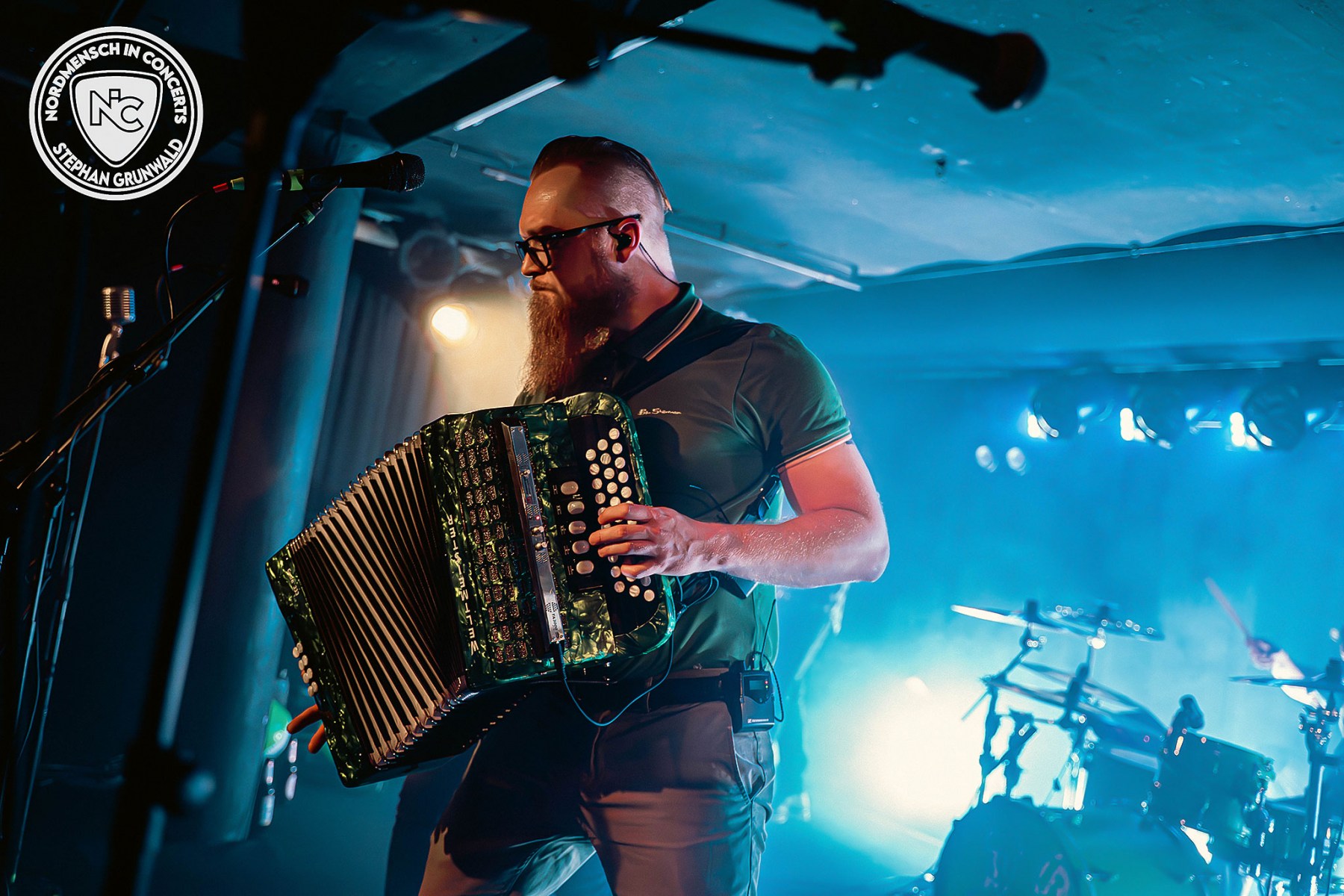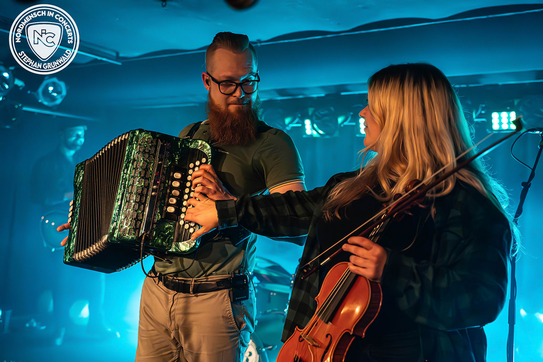 Paddy Maguire und Ian McFlannigan nehmen die Menge mit viel Haudegen- und Schlitzohr-Charme mit durch den Abend. Mia Callaghan sorgt mit ihrer Stimme, ihrer Violine und ganz viel Herz für Live-Momente, die sogar die hintersten Reihen zum Mitsingen bringen. Dwight O‘Reilly brilliert – ob Banjo, Mandoline oder Akkordeon, sein Instrumentenwechsel begeistert. Connor O‘Sullivan gibt an der Gitarre den Ruhepol, selbst wenn vor der Bühne das Chaos tobt. Auch Drummer Jones Murphy lässt sich selbst vom größten Trubel nicht aus der Ruhe bringen. Beim Tommonaise-Moment von Tom O‘Shaughnessy wird’s richtig wild: Da polonaisiert die ganze Halle. Das Lagerhaus feiert, tanzt, springt, grölt, und auch die Bar-Crew kann nicht anders, als im Takt mitzugehen.