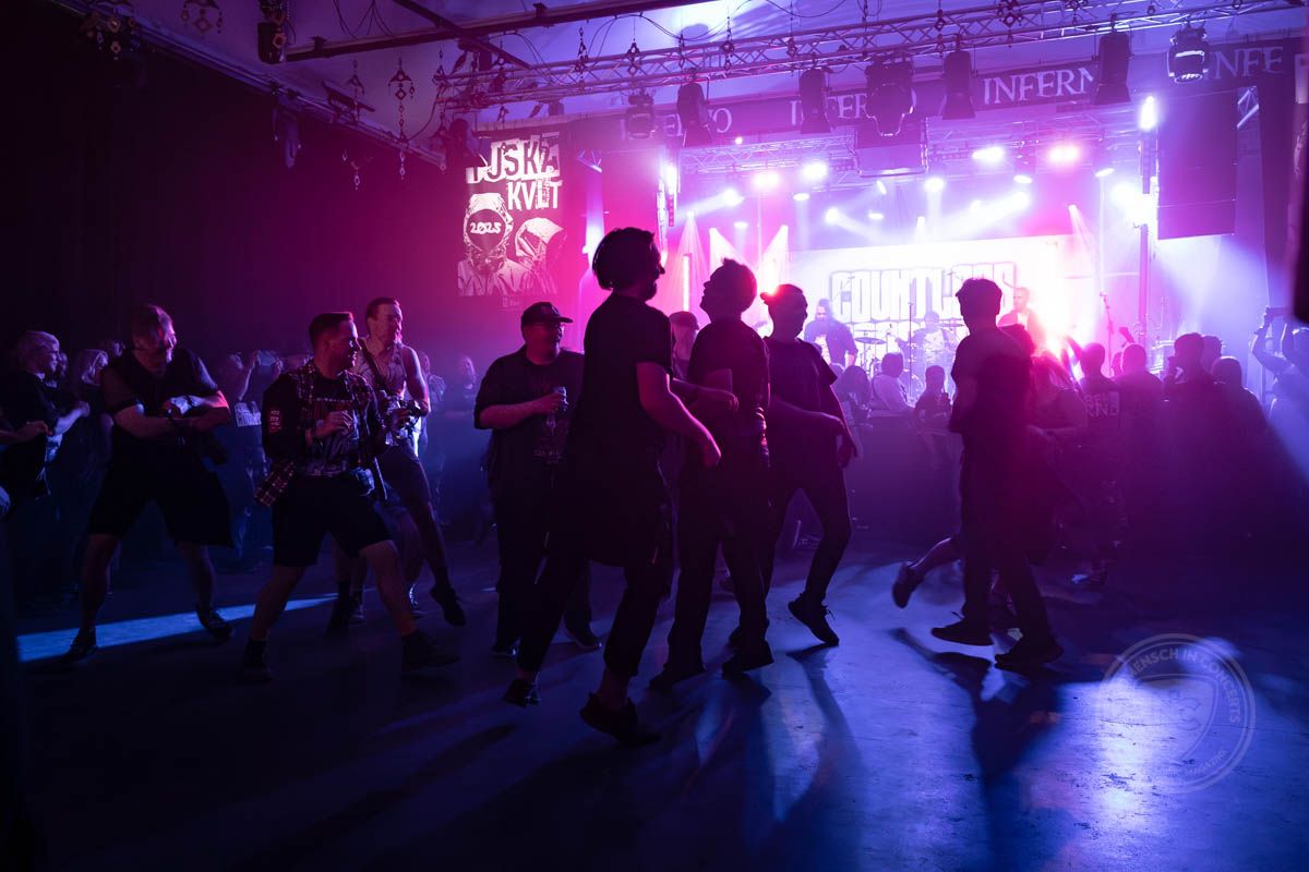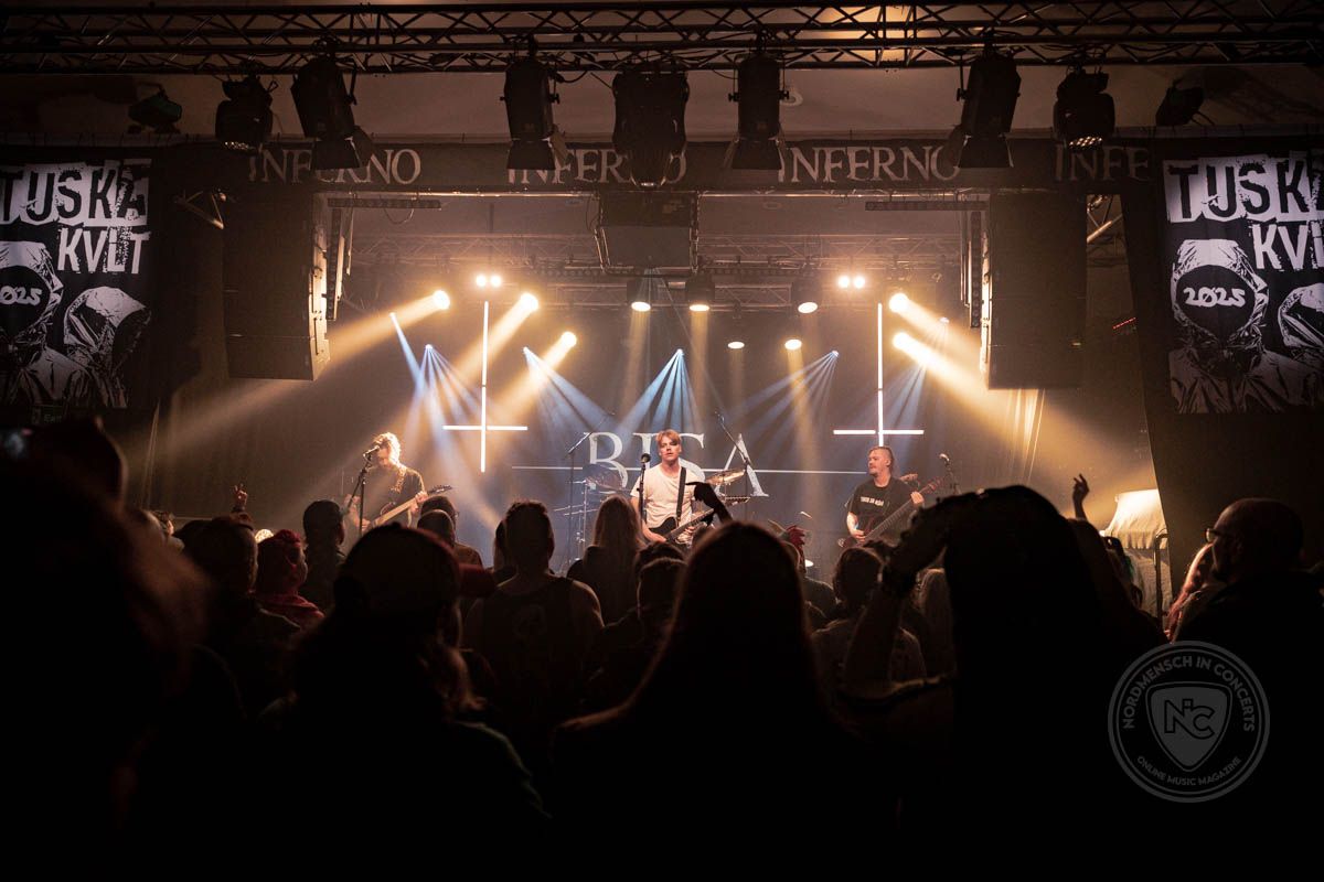 Auf dem TUSKA werden insgesamt vier Bühnen bespielt: die Karhu Main Stage wechselt sich ab mit den kleineren, parallel bespielten Nebenbühnen, der Nordic Energy Stage (Open Air) und der Radio City Stage (mit Zeltdach). Dazu kommt die TUSKA Kvlt Stage, eine Indoor Bühne mit Clubatmosphäre, die überwiegend von kleineren Bands und Newcomern mit kurzen Pausen nahezu durchgängig bespielt wird. Dorthin geht es im Anschluss, da beim Sichten der TUSKA-Playlist vorab der ein oder andere spannende Act auffiel, bei dem ein Besuch sich durchaus lohnen könnte. Nummer 1 aus dieser Liste: Call From Abyss, eine Band aus Finnland, deren Debüt EP im Februar 2024 erschienen ist. Musikalisch erinnern sie ein wenig an Children of Bodom, was ordentlich Stimmung macht. Sowohl die Atmosphäre als auch die Luft im kleinen Clubraum kochen, während Call From Abyss eine ordentliche Show hinlegen. Danach sind wir auf jeden Fall gut aufgewärmt – und brauchen erst einmal Sauerstoff, denn der war im packevollen Club etwas rar.
