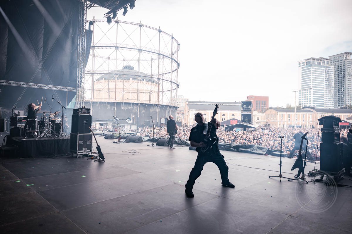 Für den Headliner der Afterparty, Balance Breach, reicht leider das Energielevel nicht mehr und so führt der Weg zurück in die Unterkunft. Vor dem Einschlafen gibt es noch eine nicht so erbauliche Meldung auf Social Media: für Sonntag sind Sturmböen gemeldet, durchaus gefährlich für ein Open Air Festival. Doch Sonntagvormittag gibt es Entwarnung vom Festivalteam: über Nacht hat man diverse Maßnahmen ergriffen, um das Festivalgelände bestmöglich abzusichern. Die Türen öffnen wie geplant um 14 Uhr. Zäune wurden gesichert, windanfällige Dekorationen abgenommen oder zusätzlich befestigt. Leider mussten auch die großen Bildschirme an den Bühnenseiten sicherheitshalber weichen. Die Nordic Energy Stage hat keine Rückwand mehr, Bandbanner bleiben aus Sicherheitsgründen ebenfalls weg und die meisten Acts des Tages müssen auf Pyrotechnik verzichten. Ein bisschen reduziert, aber alles ist bereit für den letzten Festivaltag.