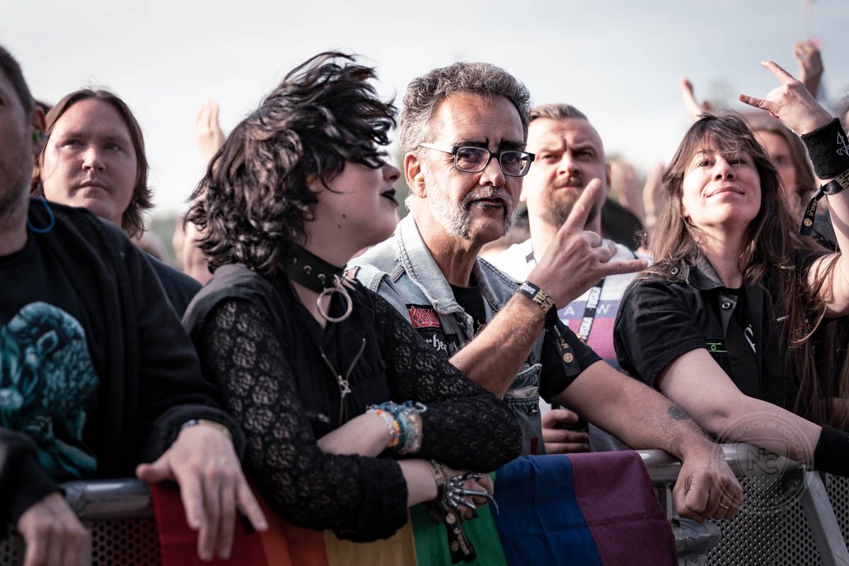 Der zweite Tag beginnt früher. Bereits um 13:00 Uhr öffnet das TUSKA seine Tore. Morgens ist es noch wolkig, bei Einlass regnet es, aber mit Beginn der Acts stabilisiert sich das Wetter. An diesem Samstag ist in Helsinki nicht nur jenes riesige Metalfestival, sondern auch Helsinki Pride. Das spiegelt sich auch den ganzen Tag über auf dem Festival wieder, wo eine ganze Menge Pride-Fahnen zu sehen sind. Zu den Werten des Festivals gehören Offenheit und Toleranz. Der deutliche Wunsch der Betreiber*innen lautet: Sei wer du bist, sei stolz darauf – und akzeptiere andere genau so. Es gibt eine Safer Space Policy auf dem Festival und in der Praxis lässt sich sagen, dass das TUSKA sich auch genau danach anfühlt. Es ist ein Safer Space, wo Mensch einfach Mensch sein kann.