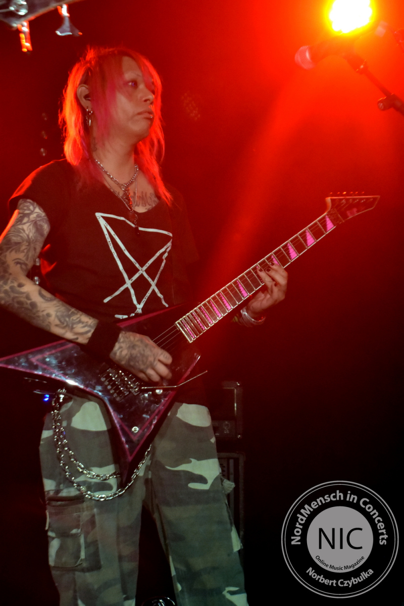 Zusammen mit sechs Wasteland Warriors als Leibwächter betritt sie unter Beifall das Zelt. Sieben Songs bekommen wir auf die Ohren. Sie posted gekonnt in jede Kamera, die sie erblicken kann und gibt Infos zur neuen Platte preis. Ich verpasse meinen Fotograbeneinsatz bei Amaranthe und höre mir das Konzert aus der Entfernung an.